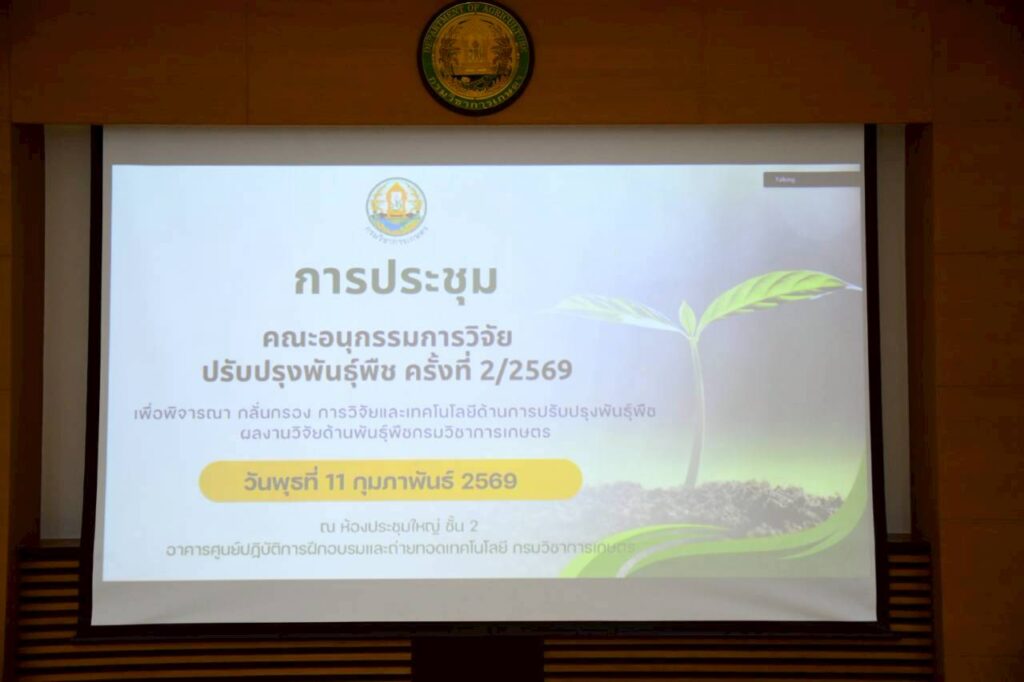 วันที่ 19 กุมภาพันธ์ 2569 นายรพีภัทร์ จันทรศรีวงศ์ อธิบดีกรมวิชาการเกษตร ได้มอบหมาย นางสาวเชาวนาถ พฤทธิเทพ ผู้เชี่ยวชาญด้านพืชไร่ตระกูลถั่ว ผู้อำนวยการกองวิจัยพัฒนาพืชเศรษฐกิจใหม่และการจัดการก๊าซเรือนกระจกสำหรับภาคเกษตร รักษาการในตำแหน่ง ผู้อำนวยการสำนักผู้เชี่ยวชาญ เป็นประธานการประชุมคณะกรรมการที่ปรึกษาด้านวิชาการกรมวิชาการเกษตร ครั้งที่ 2/2569 ณ ห้องประชุมใหญ่ ชั้น 2 อาคารศูนย์ปฏิบัติการฝึกอบรมและถ่ายทอดเทคโนโลยี กรมวิชาการเกษตร ร่วมกับ คณะผู้เชี่ยวชาญด้านพืชไร่ พืชสวน สาขาวิชา และการจัดการผลิตพืชที่เหมาะสมกับสภาพพื้นที่ โดยได้รับเกียรติจากที่ปรึกษากรมวิชาการเกษตรด้านนโยบายพัฒนางานวิจัยและด้านการอารักขาพืชร่วมการประชุม เพื่อรับทราบรายงานผลการดำเนินงานสืบเนื่องมติการประชุมคณะกรรมการที่ปรึกษาด้านวิชาการกรมวิชาการเกษตร ครั้งที่ 2/2569 และพิจารณาให้ความเห็นชอบ Road Map ภาพรวมกระบวนการขับเคลื่อนระบบวิจัยและพัฒนากรมวิชาการเกษตร ประจำปี 2569 ครอบคลุม 3 กิจกรรมหลัก ได้แก่