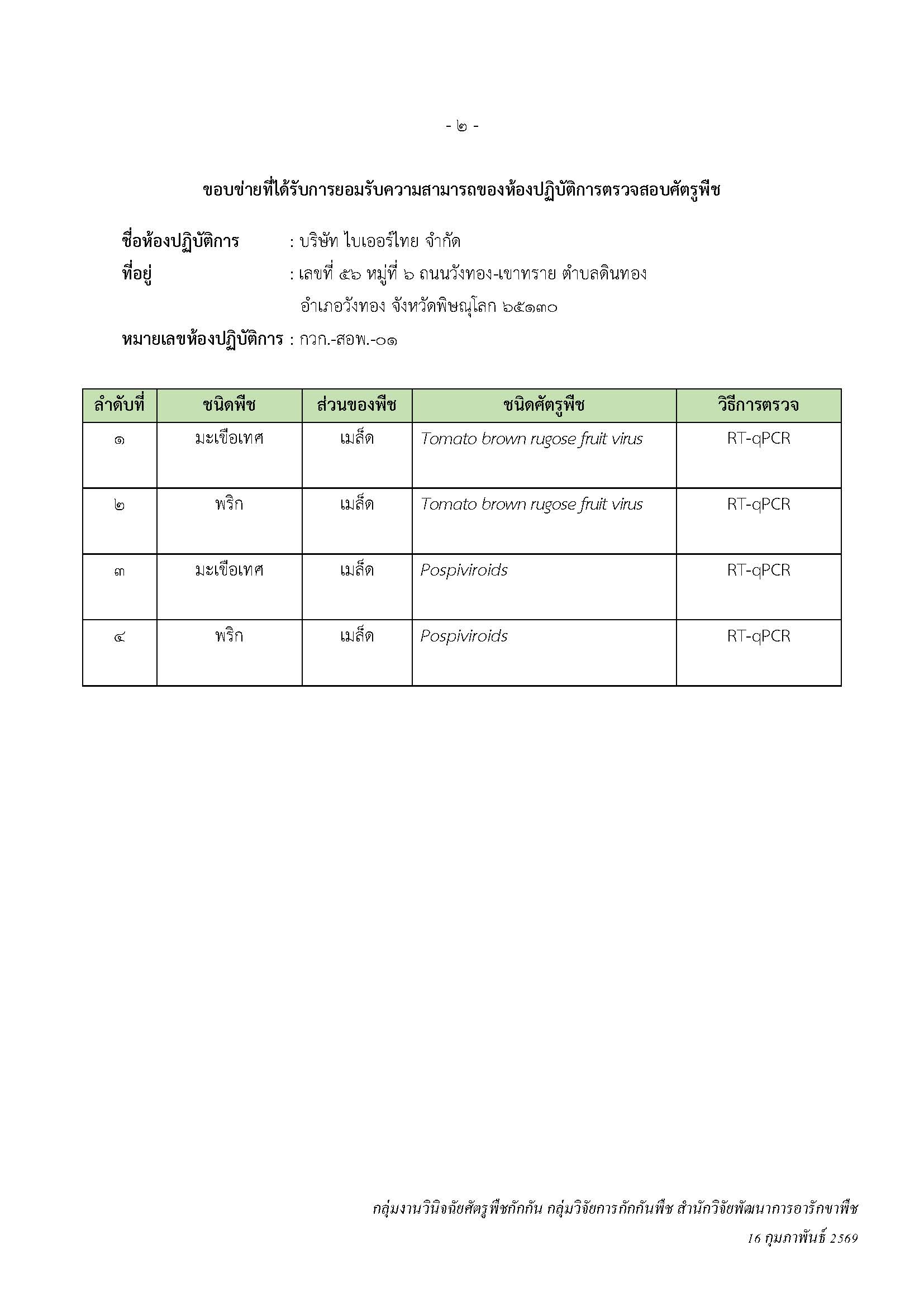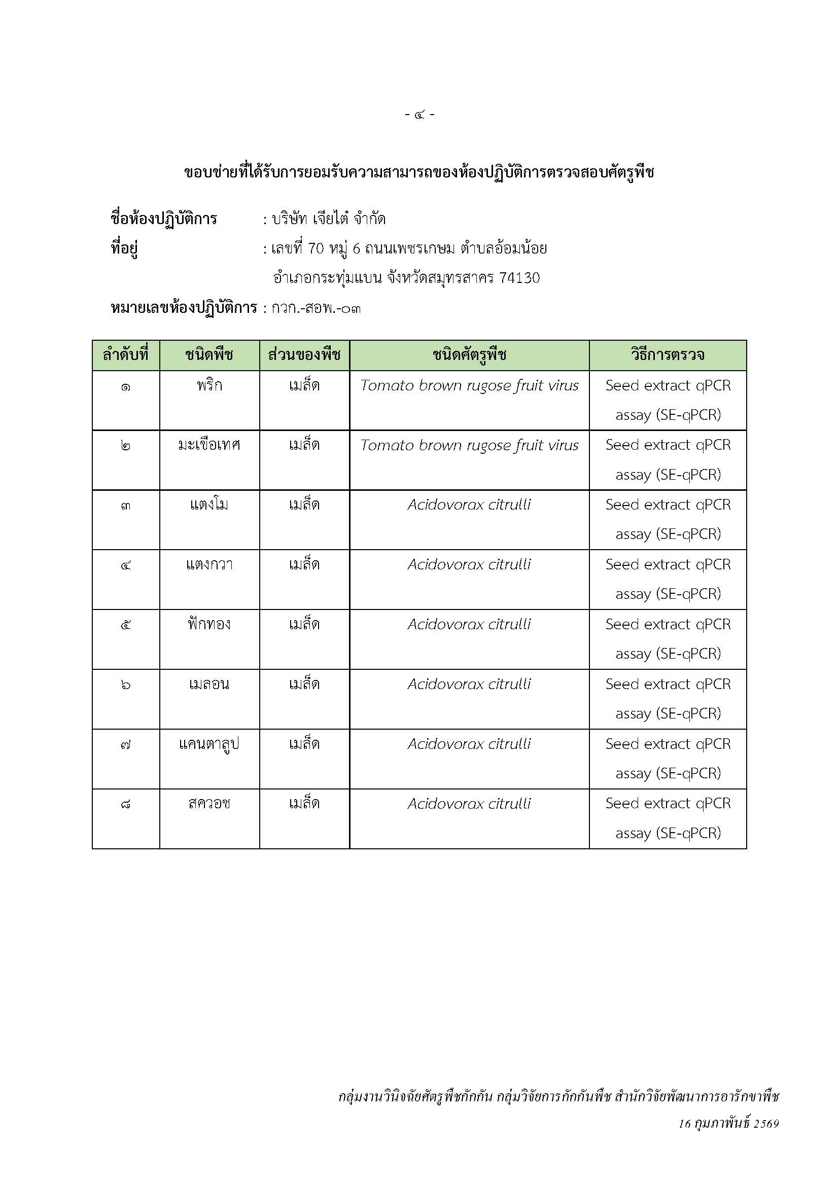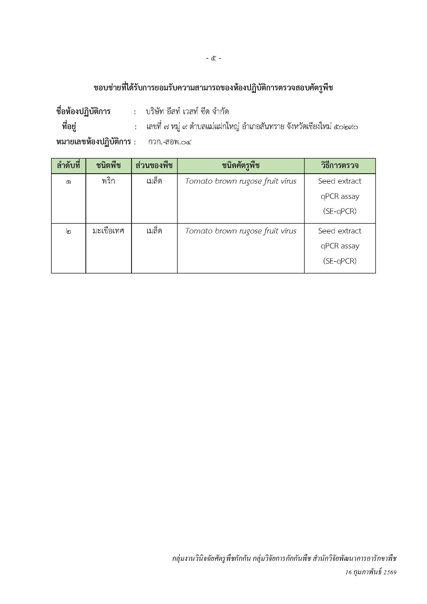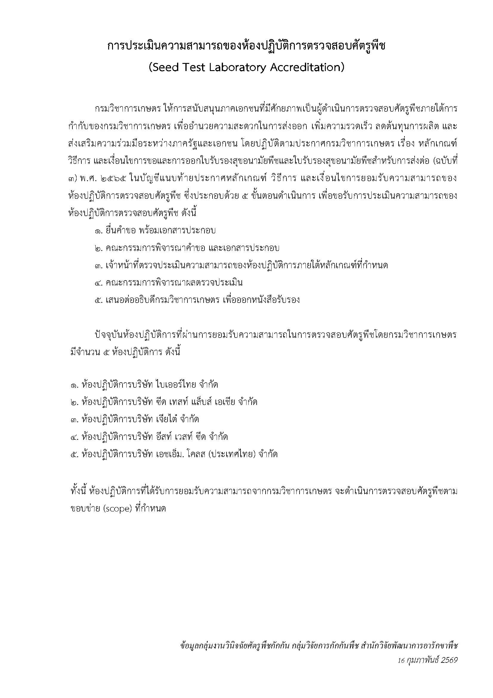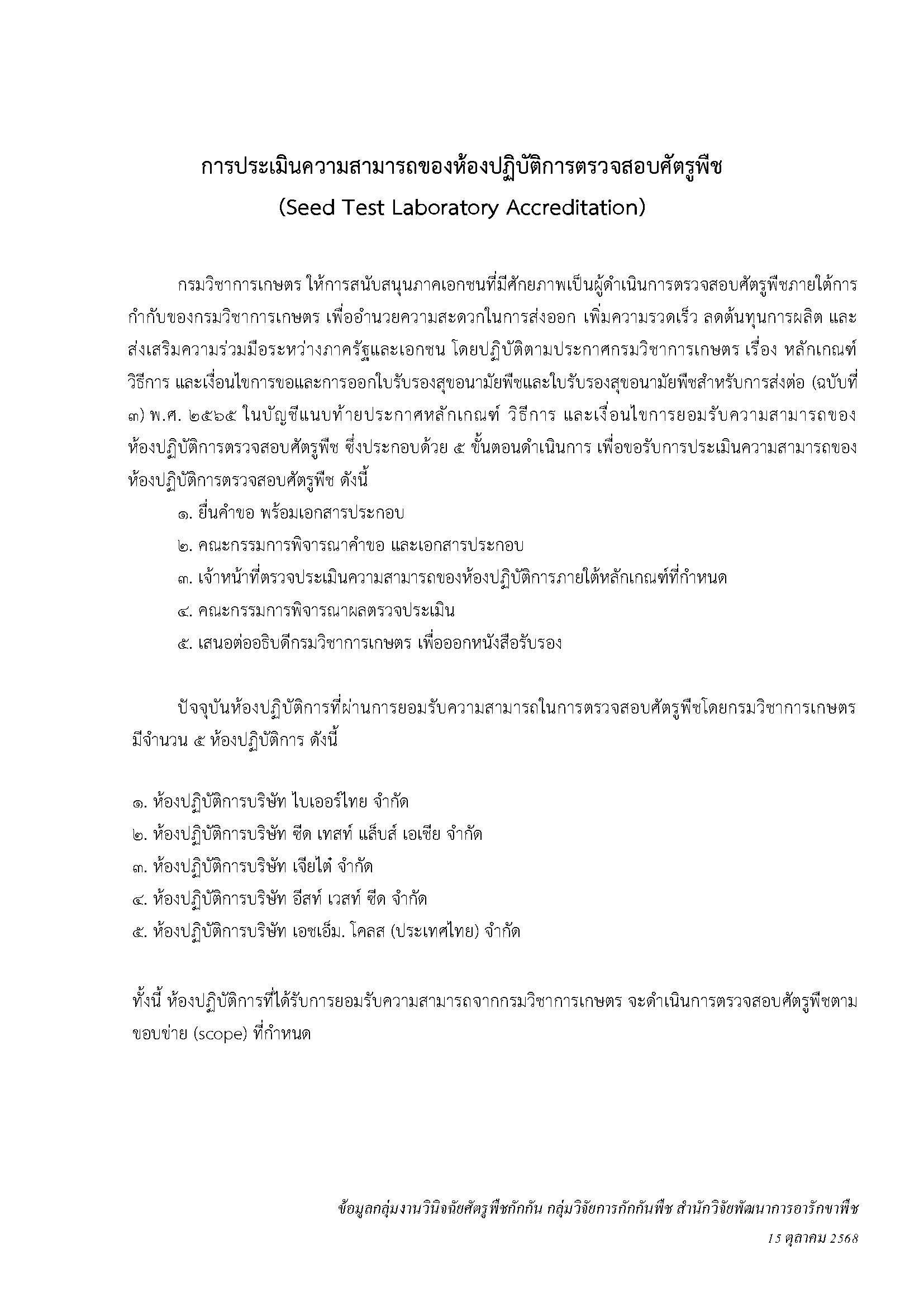 การประเมินความสามารถของห้องปฏิบัติการตรวจสอบศัตรูพืช (Seed Test Laboratory Accreditation) ดาวน์โหลด