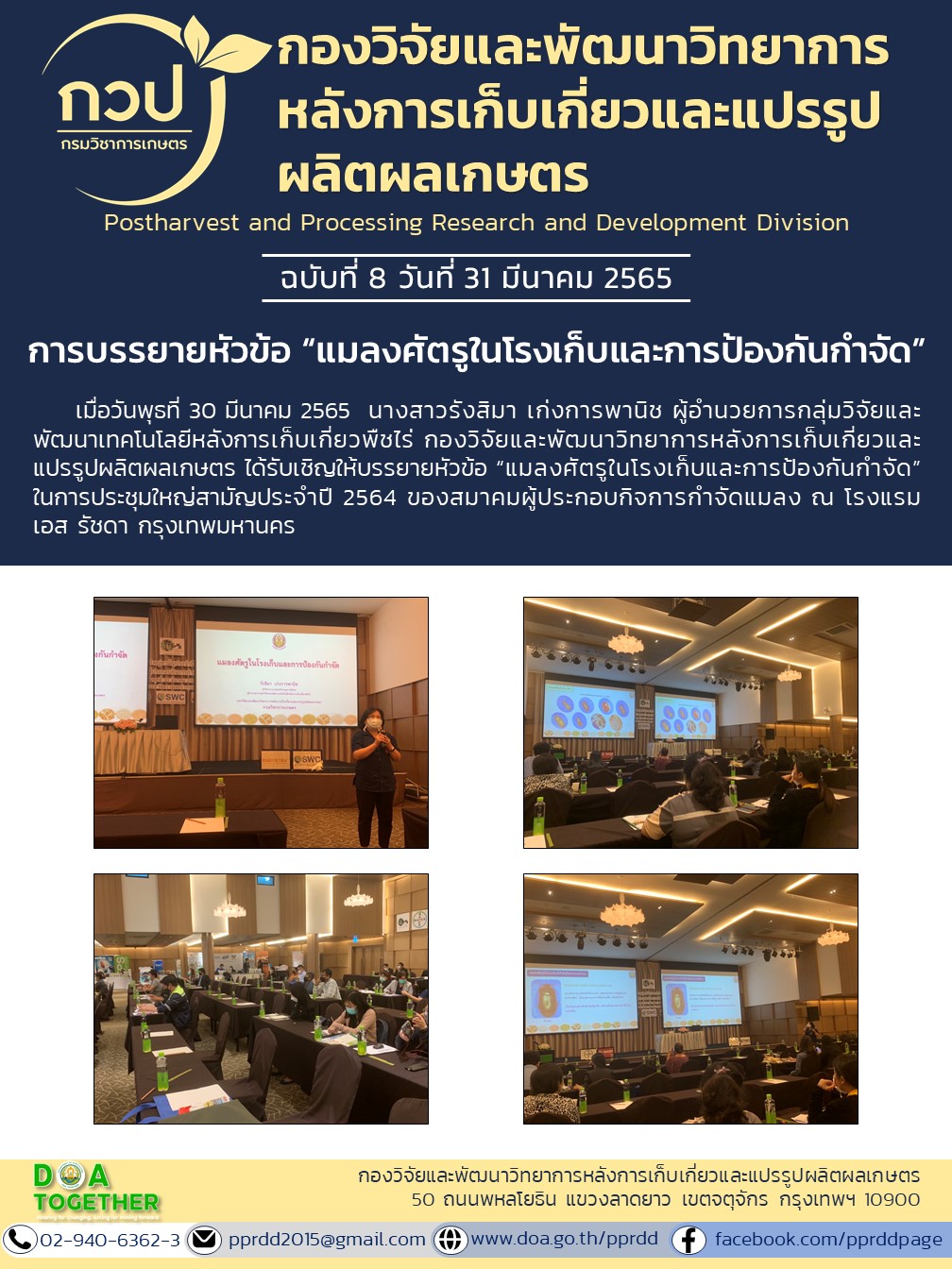 การบรรยายหัวข้อ “แมลงศัตรูในโรงเก็บและการป้องกันกำจัด”