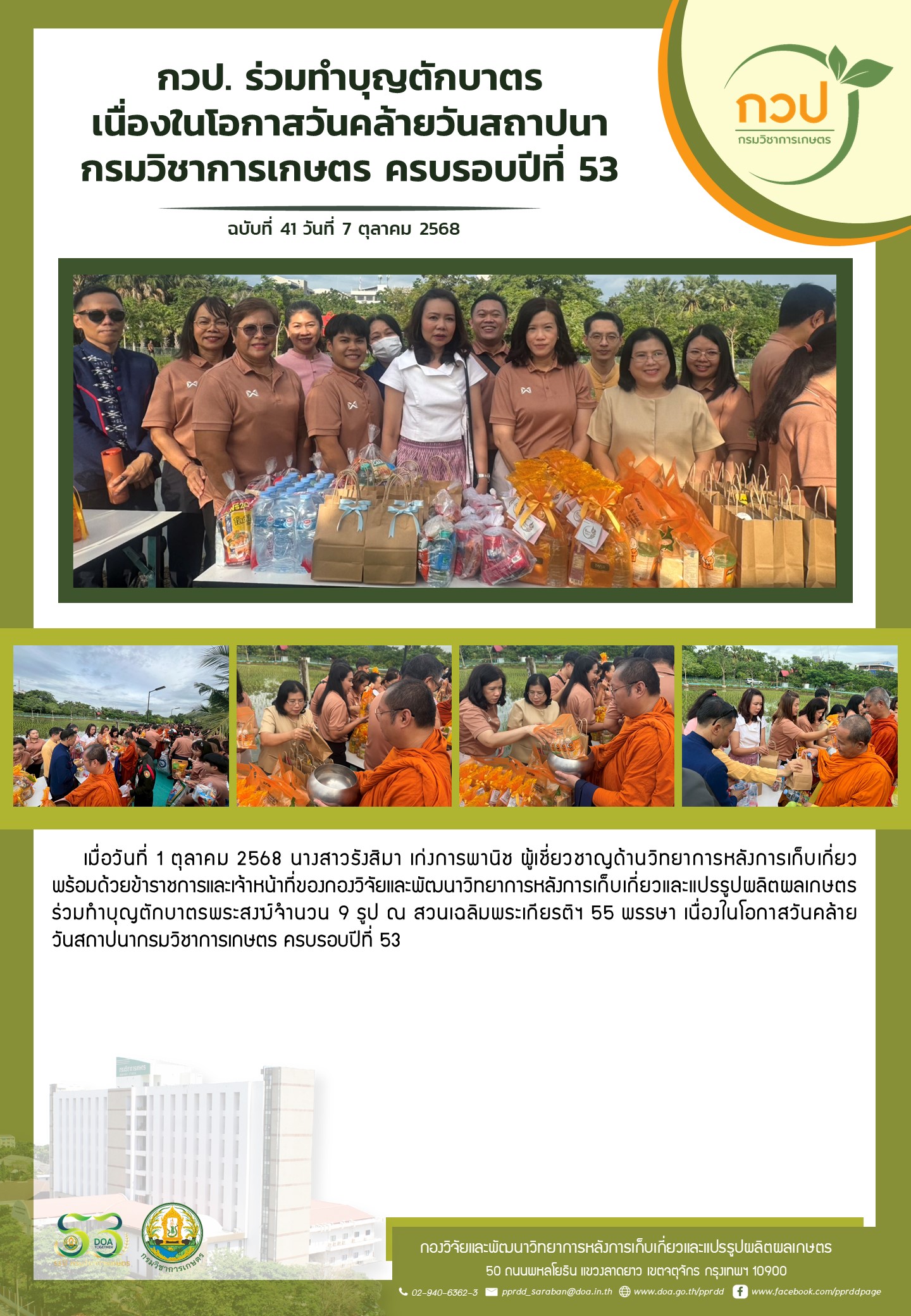 กิจกรรม กวป. กวป. ร่วมทำบุญตักบาตร เนื่องในโอกาสวันคล้ายวันสถาปนากรมวิชาการเกษตร ครบรอบปีที่ 53 7 ตุลาคม 2568 pprddadmin