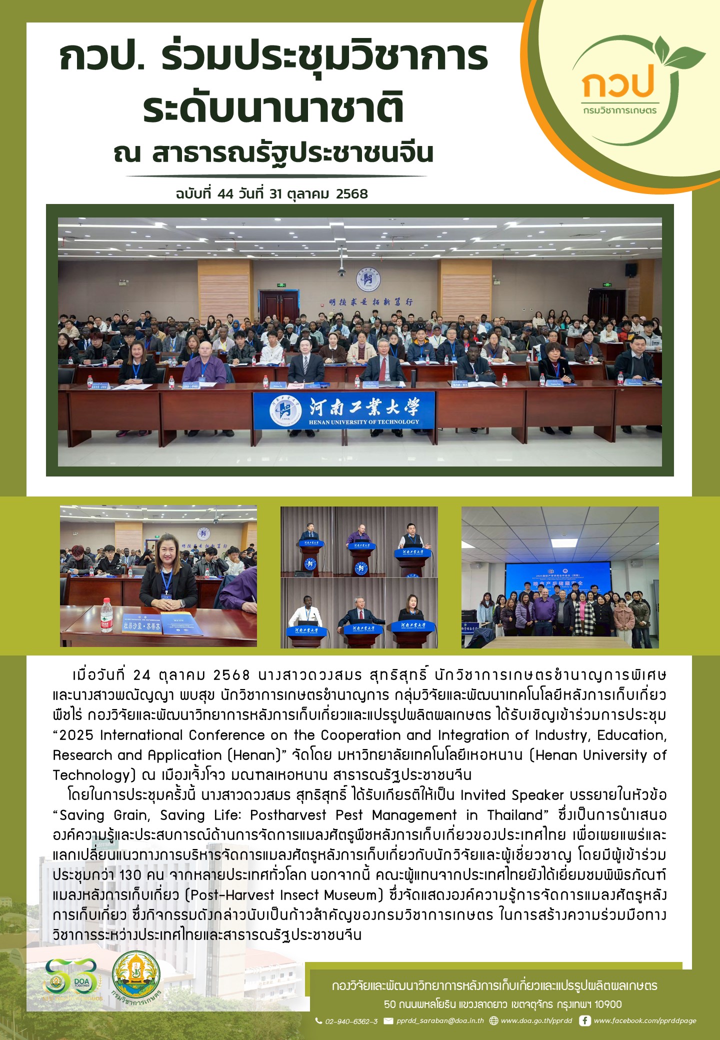 กวป. ร่วมประชุมวิชาการระดับนานาชาติ ณ สาธารณรัฐประชาชนจีน