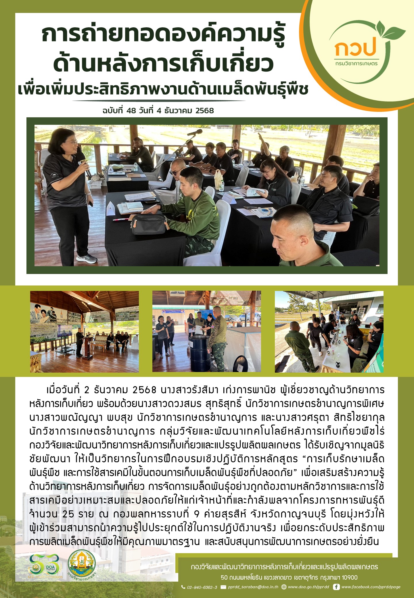 กิจกรรม กวป. การถ่ายทอดองค์ความรู้ด้านหลังการเก็บเกี่ยว เพื่อเพิ่มประสิทธิภาพงานด้านเมล็ดพันธุ์พืช 4 ธันวาคม 2568 pprddadmin