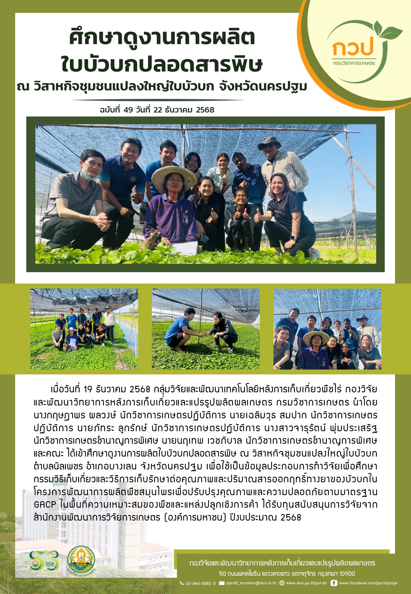 กิจกรรม กวป. ศึกษาดูงานการผลิตใบบัวบกปลอดสารพิษ ณ วิสาหกิจชุมชนแปลงใหญ่ใบบัวบก จังหวัดนครปฐม 22 ธันวาคม 2568 pprddadmin