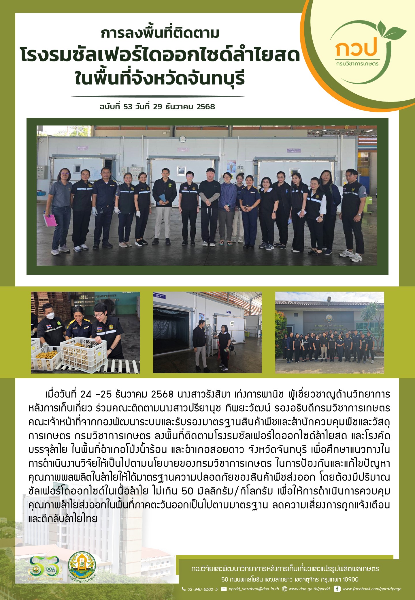 กิจกรรม กวป. การลงพื้นที่ติดตามโรงรมซัลเฟอร์ไดออกไซด์ลำไยสด ในพื้นที่จังหวัดจันทบุรี 29 ธันวาคม 2568 pprddadmin