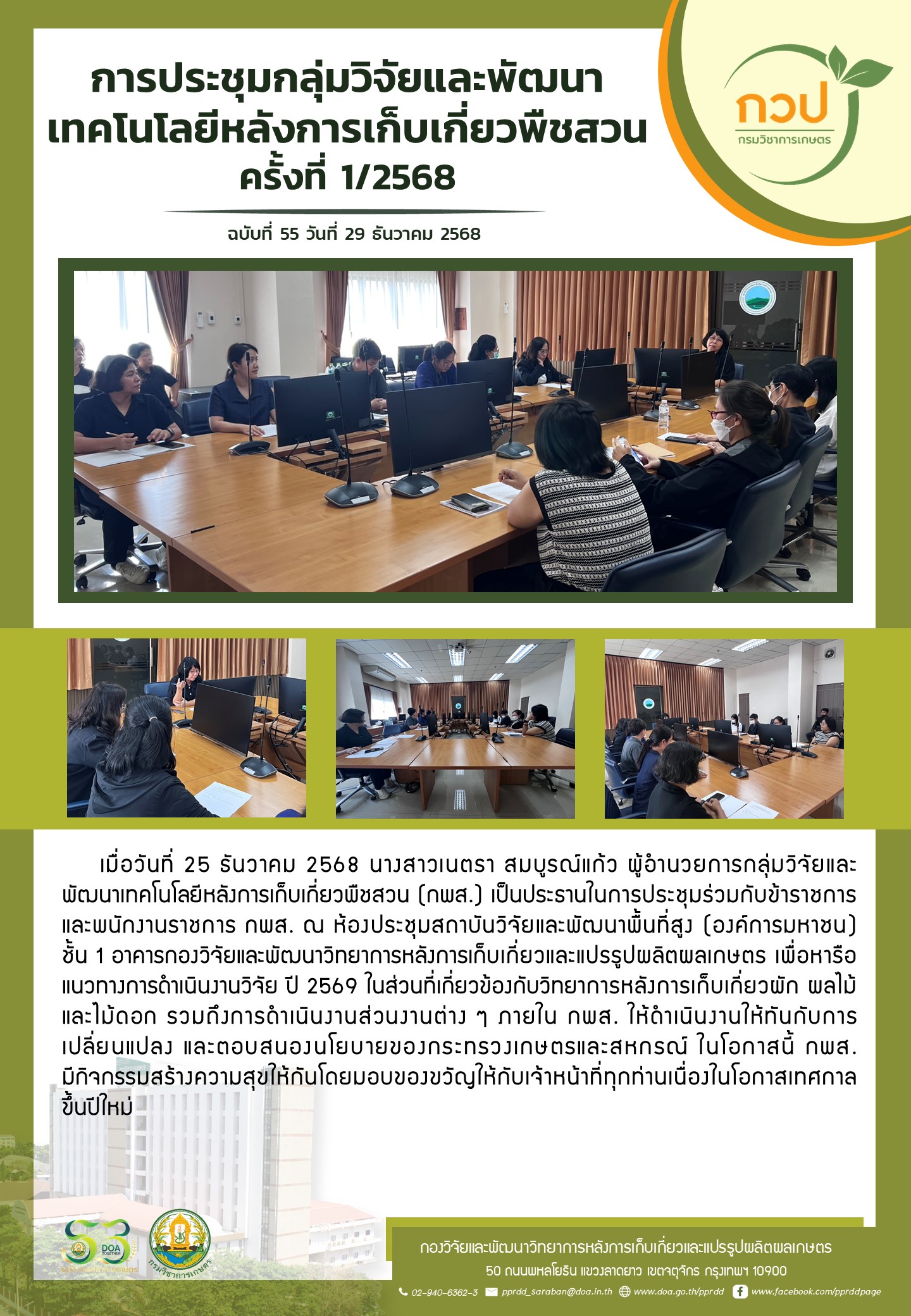 กิจกรรม กวป. การประชุมกลุ่มวิจัยและพัฒนาเทคโนโลยีหลังการเก็บเกี่ยวพืชสวน ครั้งที่ 1/2568 29 ธันวาคม 2568 pprddadmin