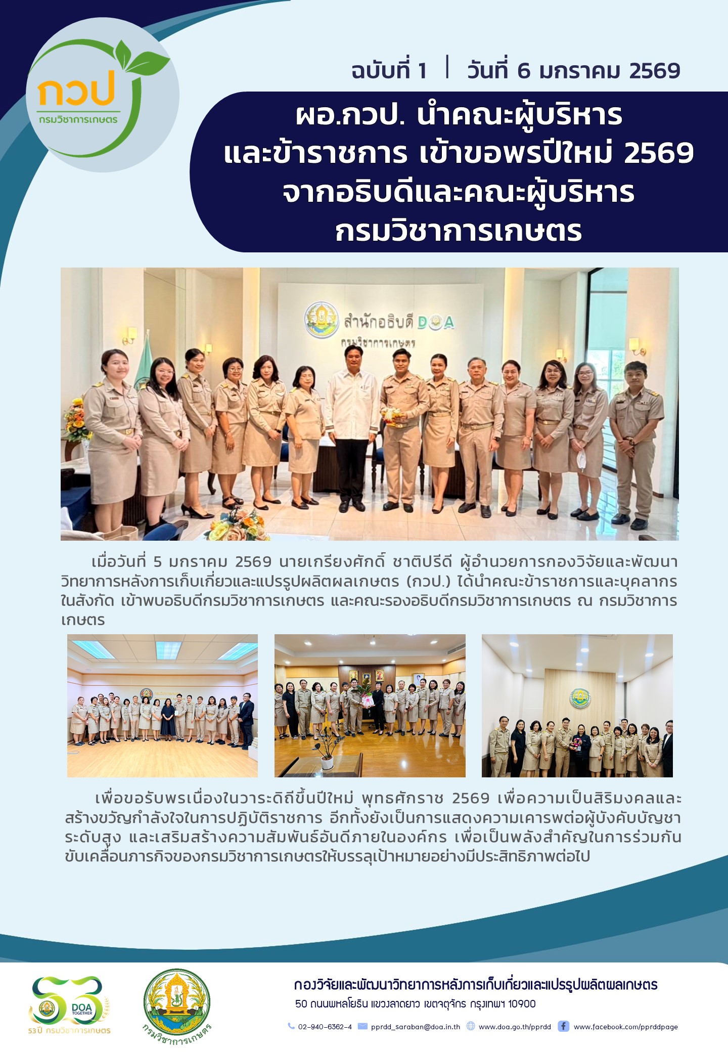 กิจกรรม กวป. ผอ.กวป. นำคณะผู้บริหารและข้าราชการ เข้าขอพรปีใหม่ 2569 จากอธิบดีและคณะผู้บริหารกรมวิชาการเกษตร 6 มกราคม 2569 pprddadmin