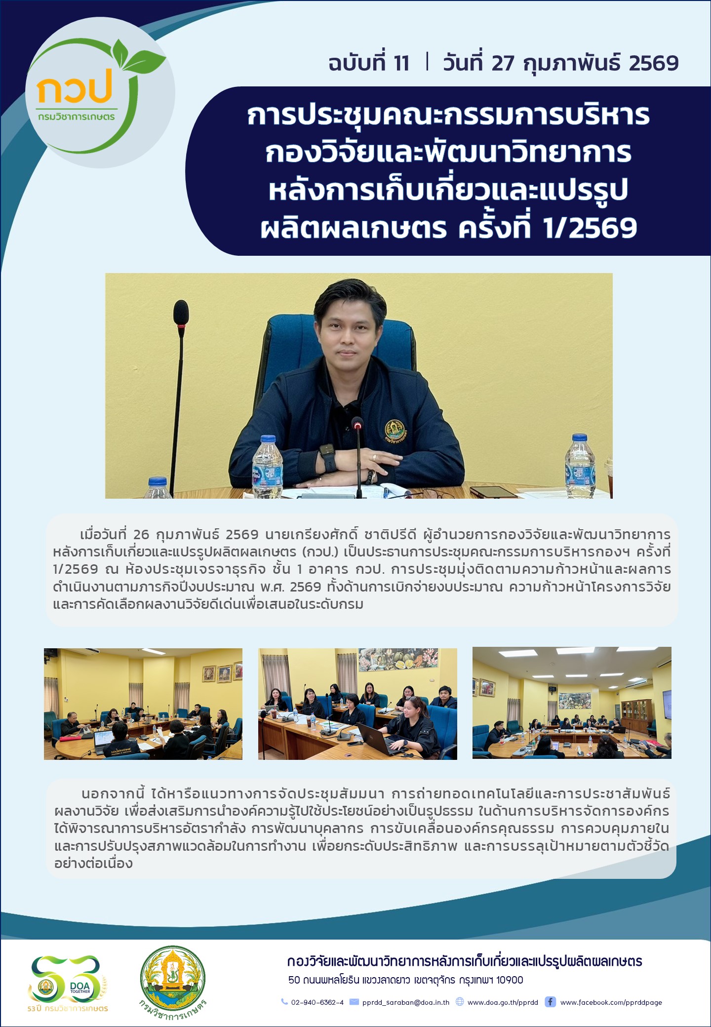กิจกรรม กวป. การประชุมคณะกรรมการบริหารกองวิจัยและพัฒนาวิทยาการหลังการเก็บเกี่ยวและแปรรูปผลิตผลเกษตร ครั้งที่ 1/2569 27 กุมภาพันธ์ 2569 pprddadmin