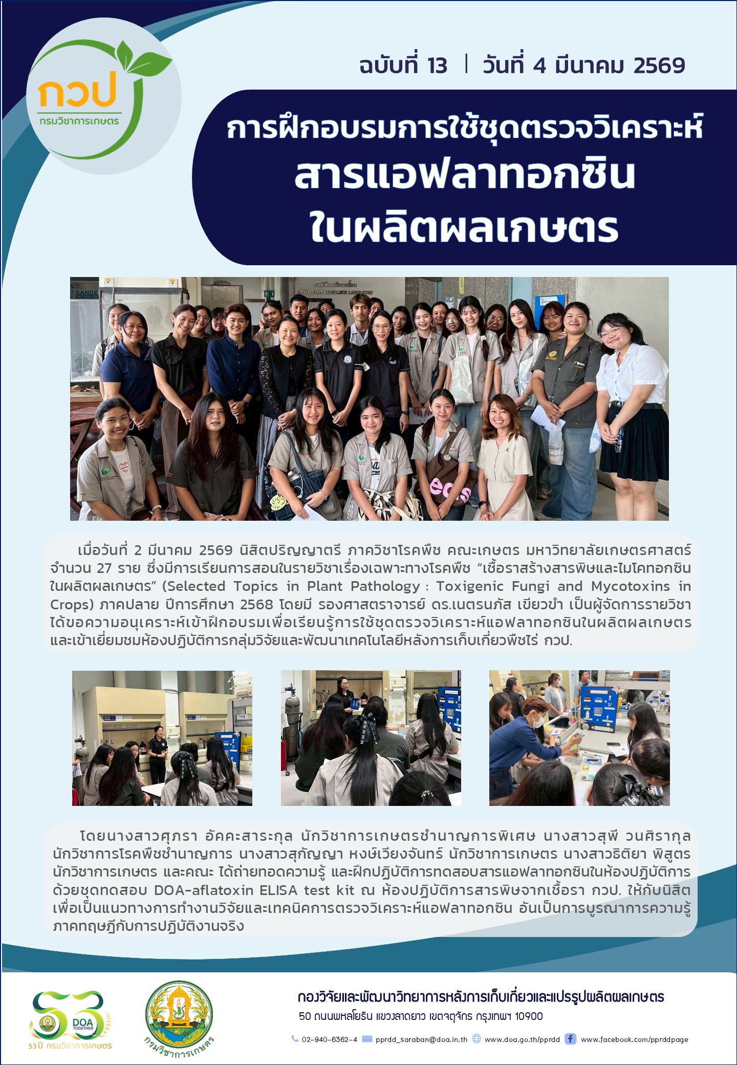 การฝึกอบรมการใช้ชุดตรวจวิเคราะห์สารแอฟลาทอกซินในผลิตผลเกษตร