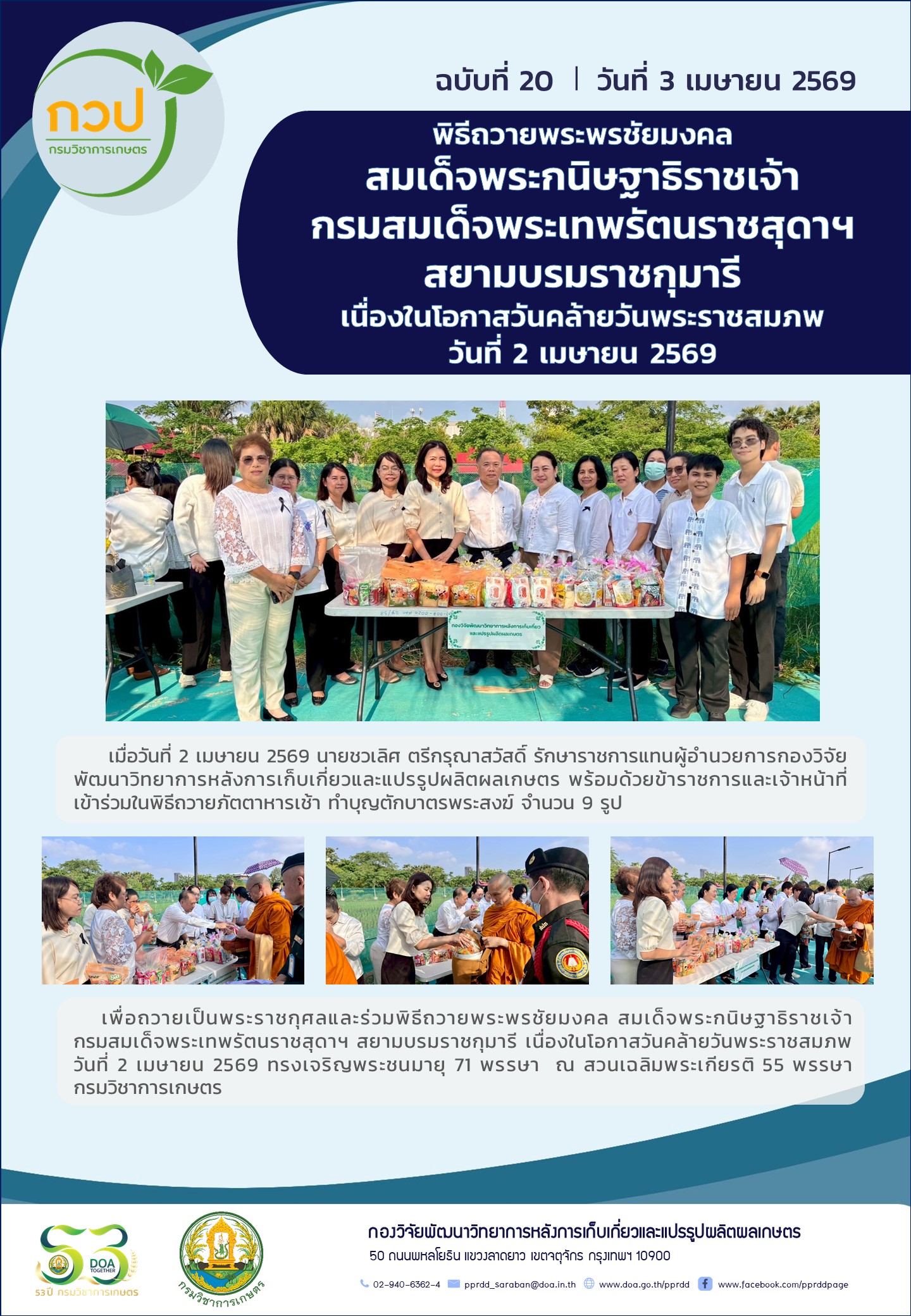 กิจกรรม กวป. พิธีถวายพระพรชัยมงคล สมเด็จพระกนิษฐาธิราชเจ้า กรมสมเด็จพระเทพรัตนราชสุดาฯ สยามบรมราชกุมารี เนื่องในโอกาสวันคล้ายวันพระราชสมภพ วันที่ 2 เมษายน 2569 3 เมษายน 2569 pprddadmin