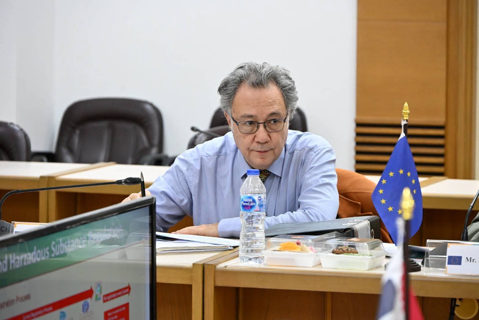 During the meeting, DOA representatives presented the structure and overview of the DOA as the Thai competent authority for the official control system for pesticide residues in plant products exported to the European Union (EU), including relevant regulations and the DOA’s implementation process. The meeting was attended by Mr. Michael Bucki and Mr. Dusit Meksingvee from the Delegation of the European Union to Thailand, along with Mr. Sarute Sudhi-Aromna, Adviser to the Department of Agriculture on Research and Development Policy, and representatives from relevant DOA offices. The session was held in the Meeting Room, 2nd Floor, Center for Training and Technology Transfer Building, Department of Agriculture.
