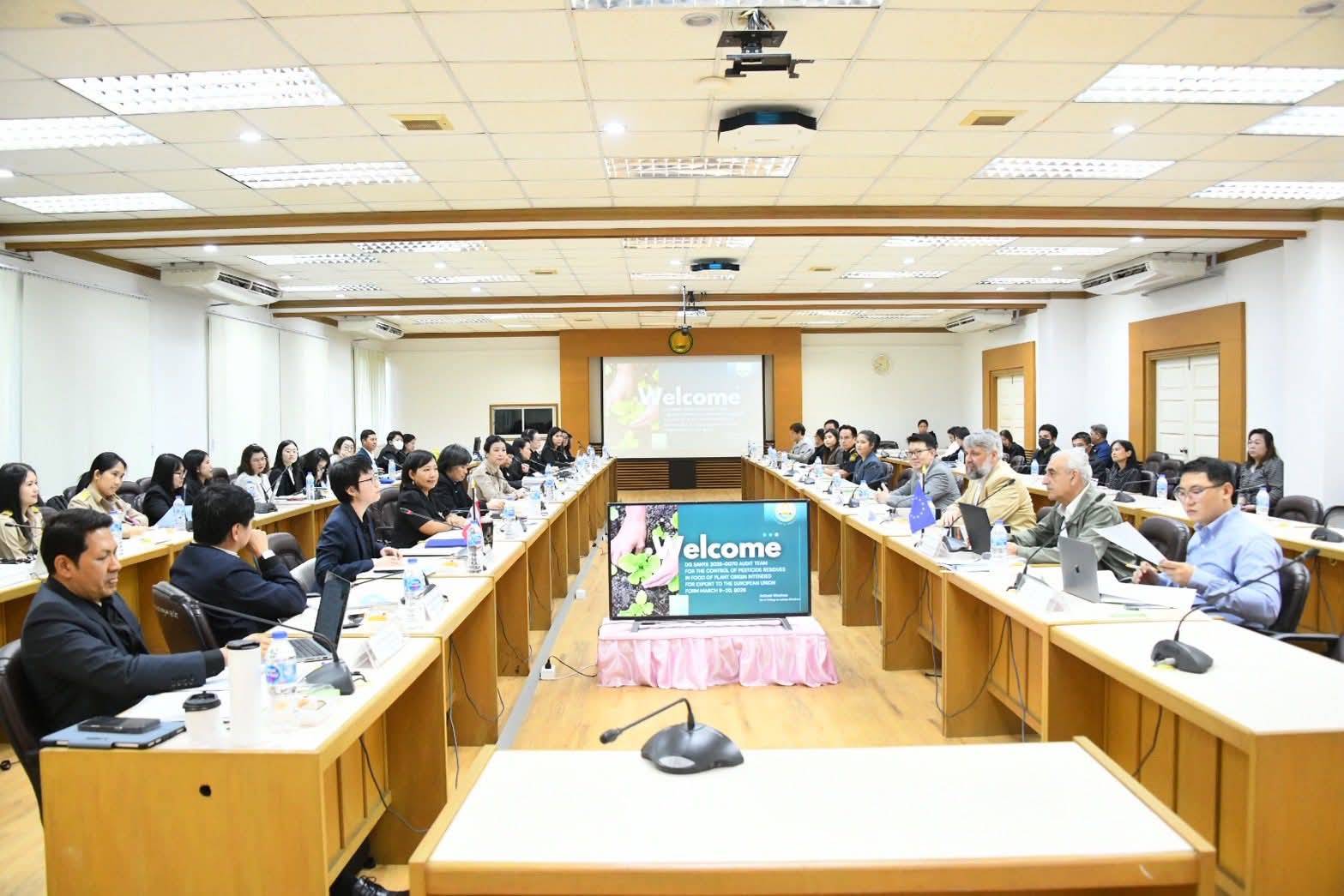 On 9 March 2026, Mr. Rapibhat Chandarasrivongs, Director-General of the Department of Agriculture (DOA), assigned Ms. Preeyanooch Tippayawat, Deputy Director-General of the DOA, as his representative at the Opening Meeting of the pesticide residue audit visit. Ms. Preeyanooch Tippayawat welcomed Mr. Pedro Moreno Valenzuela and Mr. Demetrios Fragoyiannis from the Directorate-General for Health and Food Safety (DG-SANTE) and delivered the opening remarks for the mission, which is scheduled from 9–20 March 2026.