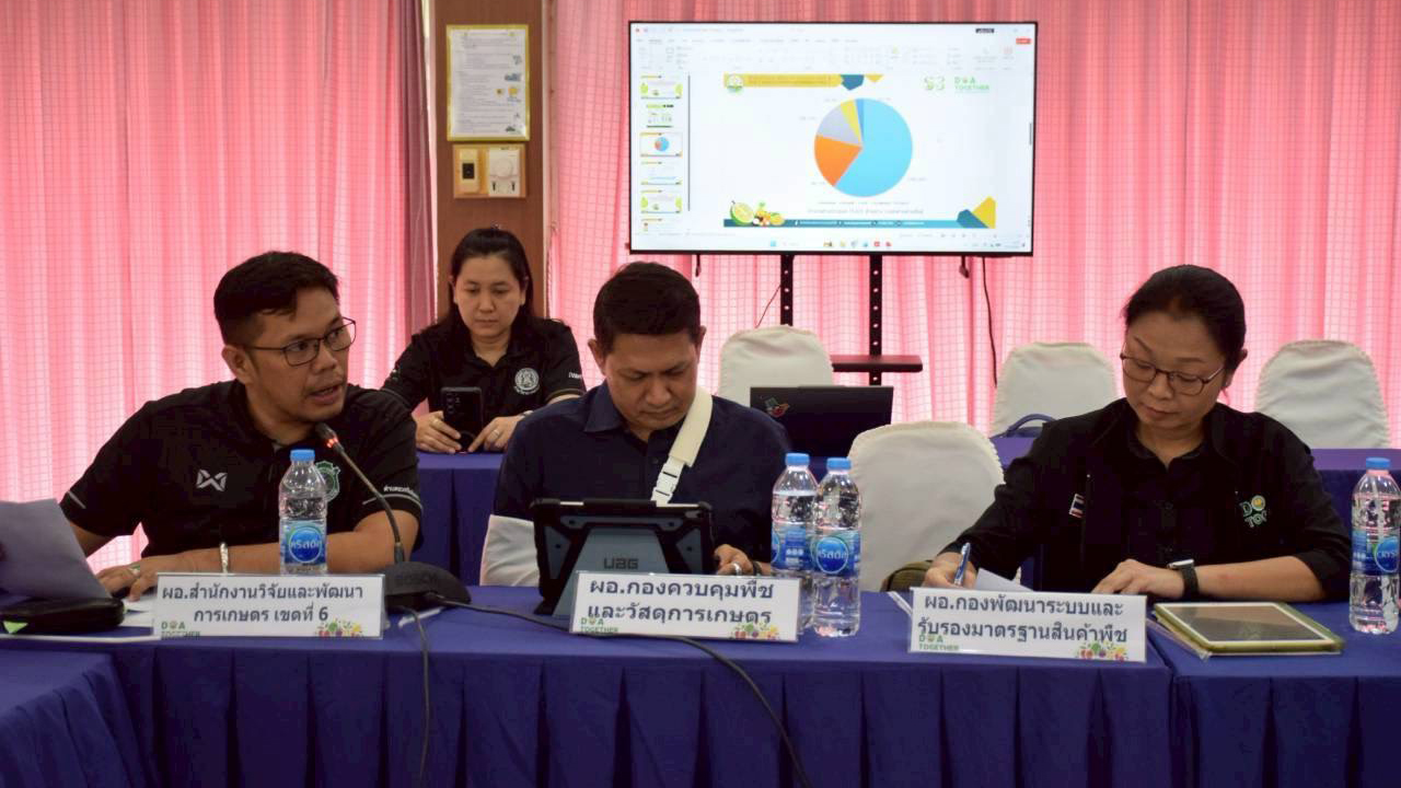 วันที่ 17 เมษายน 2569 นางสาวธิดากุล แสนอุดม เข้าร่วมการประชุมตรวจเยี่ยมและติดตามมาตรการในการป้องกันและแก้ไขปัญหาทุเรียนด้อยคุณภาพในโรงคัดบรรจุพื้นที่จังหวัดจันทบุรี โดยนางสาวปรียานุช ทิพยะวัฒน์ รองอธิบดีกรมวิชาการเกษตร เป็นประธานการประชุม ณ ห้องประชุมชั้น 2 อาคารอำนวยการ สำนักงานวิจัยและพัฒนาการเกษตร เขตที่ 6 ร่วมกับทีมผู้บริหารหน่วยงานที่เกี่ยวข้อง ได้แก่ สำนักงานวิจัยและพัฒนาการเกษตร เขตที่ 6 กองควบคมพืชและวัสดุการเกษตร หัวหน้าด่านตรวจพืชจันทบุรี สำนักงานมาตรฐานสินค้าเกษตรและอาหารแห่งชาติฯ