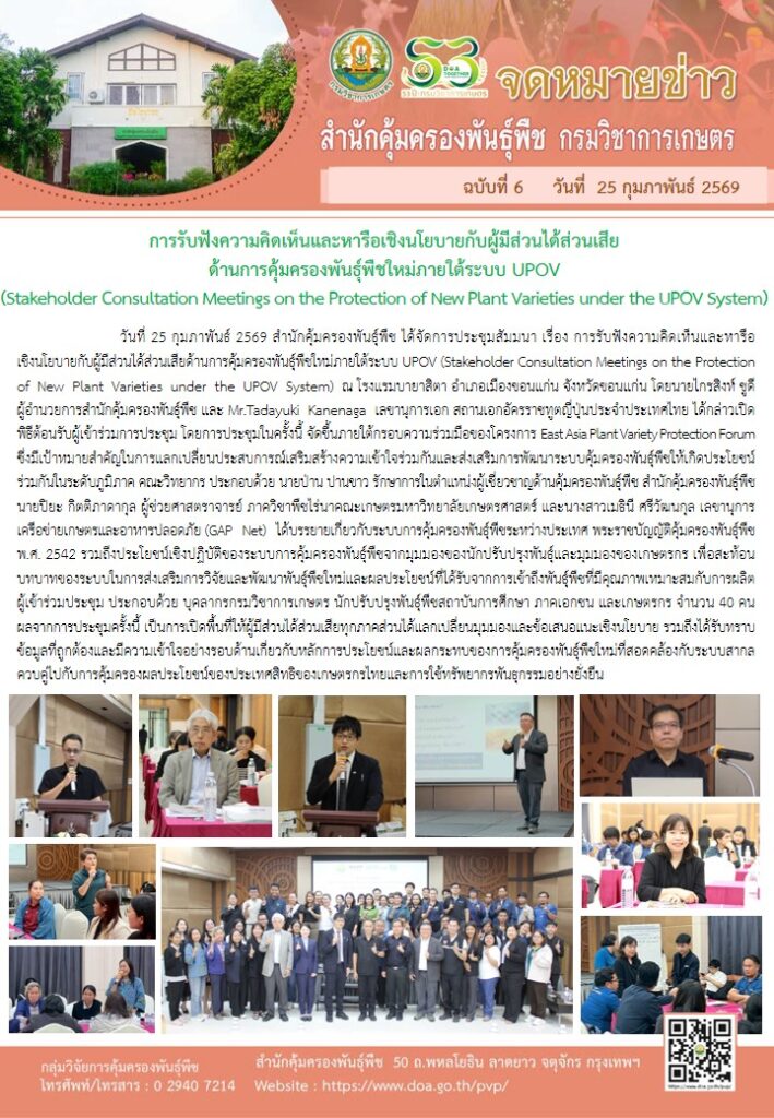 นายไกรสิงห์ ชูดี ผู้อำนวยการสำนักคุ้มครองพันธุ์พืช เปิดพิธีต้อนรับผู้เข้าร่วมการประชุมรับฟังความคิดเห็นและหารือเชิงนโยบายกับผู้มีส่วนได้ส่วนเสียด้านการคุ้มครองพันธุ์พืชใหม่ภายใต้ระบบ UPOV (Stakeholder Consultation Meetings on the Protection of New Plant Varieties under the UPOV System)