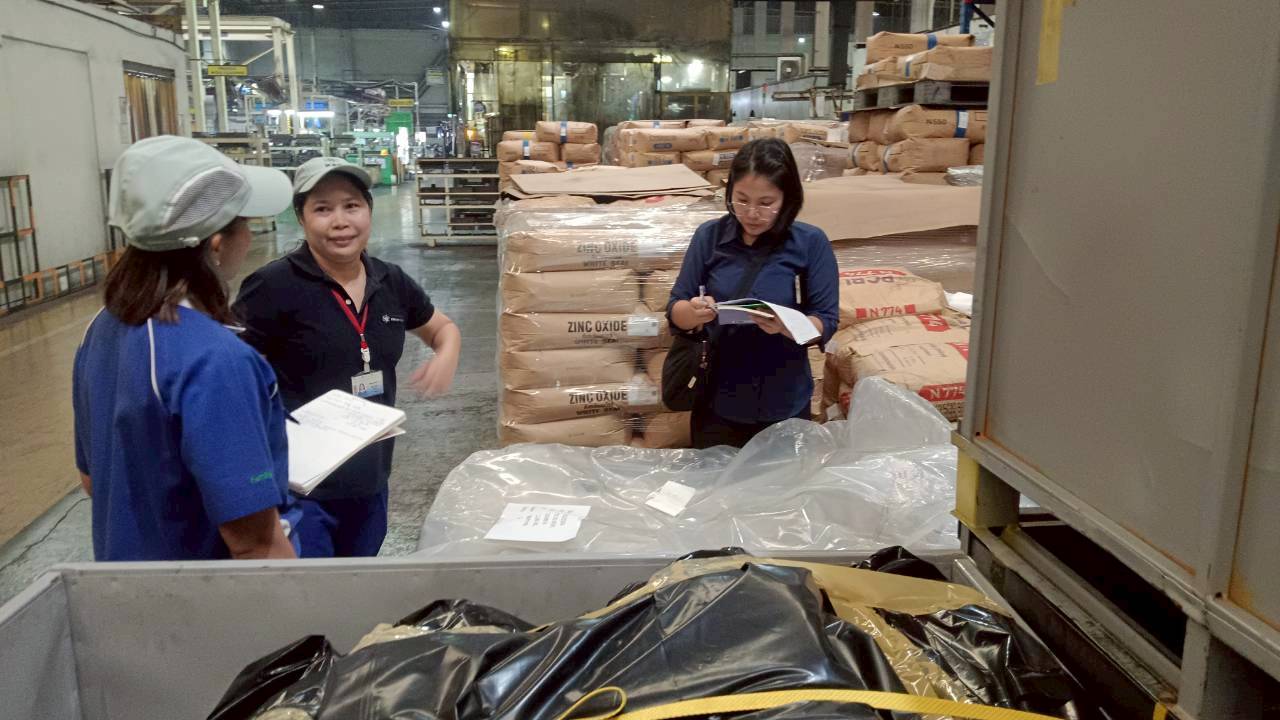 นางสาววันวิสาข์ พิมพ์เจริญ และ นายสิทธา พันทา ดำเนินการตรวจติดตามใบอนุญาตค้ายางและตรวจยางก่อนส่งออกไปนอกราชอาณาจักรในเขตพื้นที่จังหวัดฉะเชิงเทรา สระแก้ว และปราจีนบุรี พร้อมทั้งให้คำแนะนำแก่ผู้ประกอบการด้านการปฏิบัติตามพระราชบัญญัติควบคุมยาง พ.ศ. 2542
