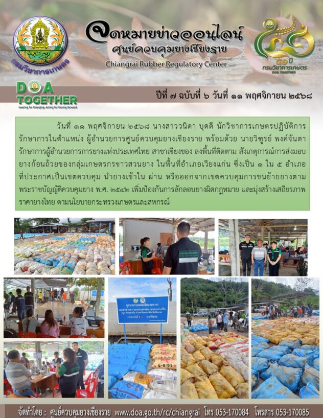 ข่าว จดหมายข่าวออนไลน์ศูนย์ควบคุมยางเชียงราย ปีที่ 7 ฉบับที่ 6 วันที่ 11 พฤศจิกายน 2568 admin 11 พฤศจิกายน 2568 FacebookFacebook Post navigation Previous: ประกาศให้ผู้นำยางเข้าใน ผ่าน ออกจากเขตควบคุมการขนย้ายยางในเขตควบคุมการขนย้ายยางฯ More Stories ข่าว สาระน่ารู้ ประกาศให้ผู้นำยางเข้าใน ผ่าน ออกจากเขตควบคุมการขนย้ายยางในเขตควบคุมการขนย้ายยางฯ admin 21 ตุลาคม 2568 ข่าว ประกาศ admin 20 ตุลาคม 2568 ข่าว จดหมายข่าวออนไลน์ ปีที่7 ฉบับที่ 4 เดือน กันยายน 2568 admin 29 กันยายน 2568