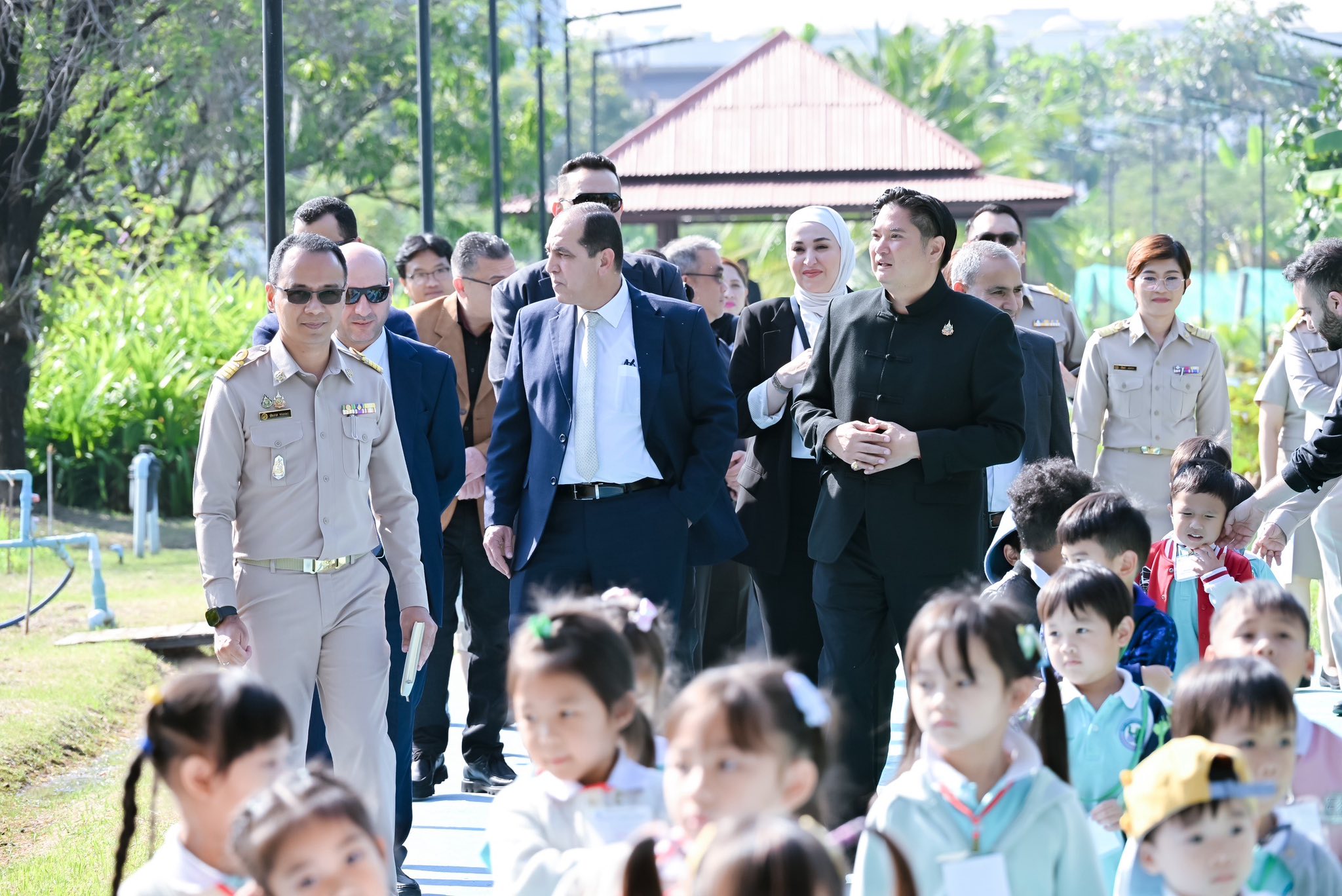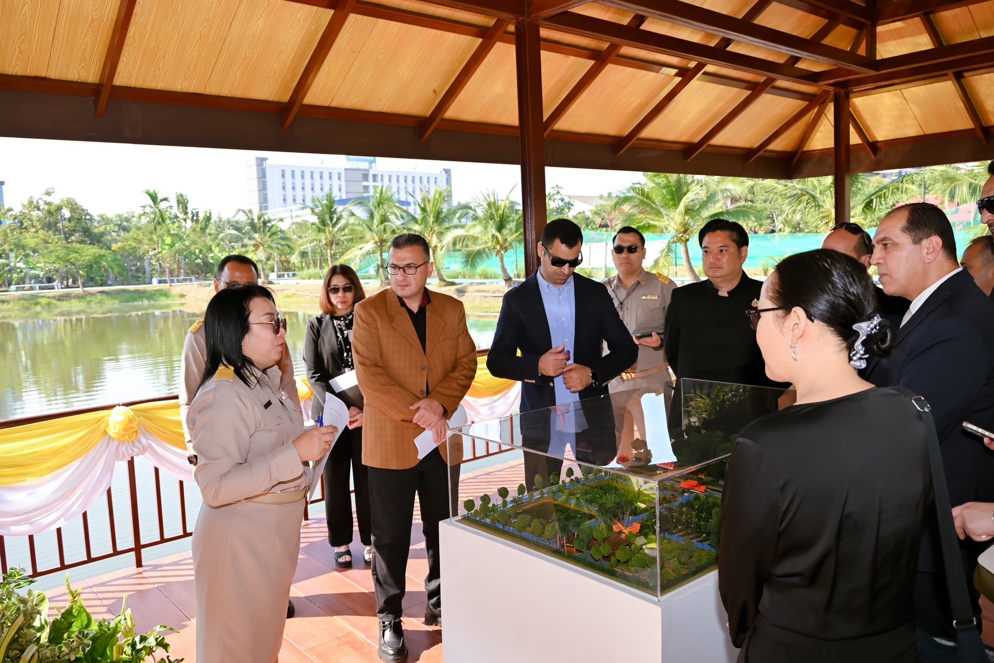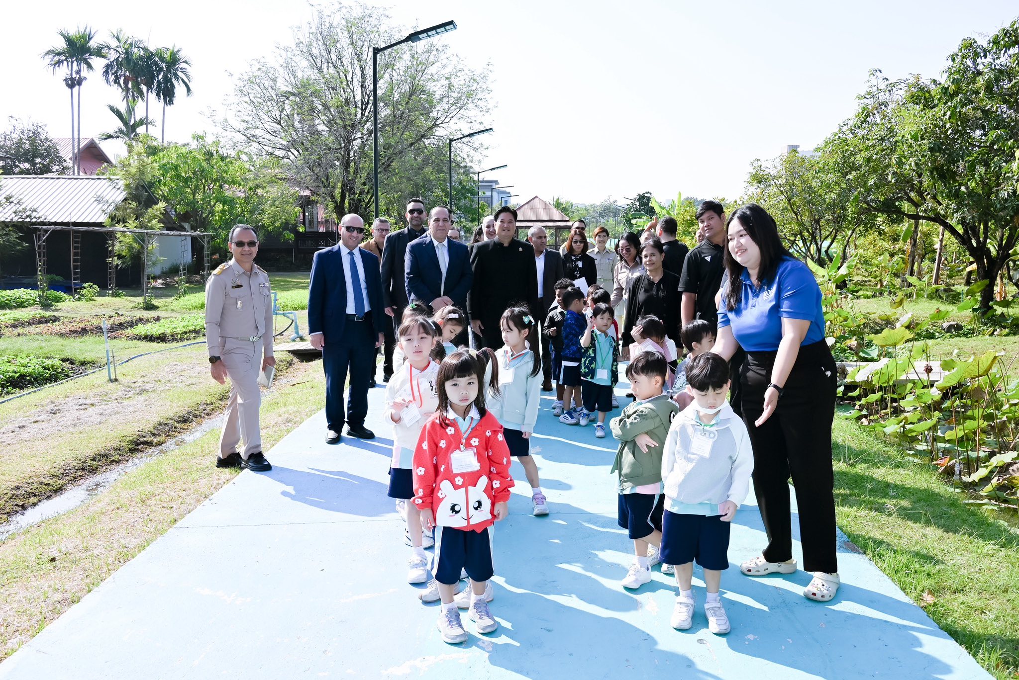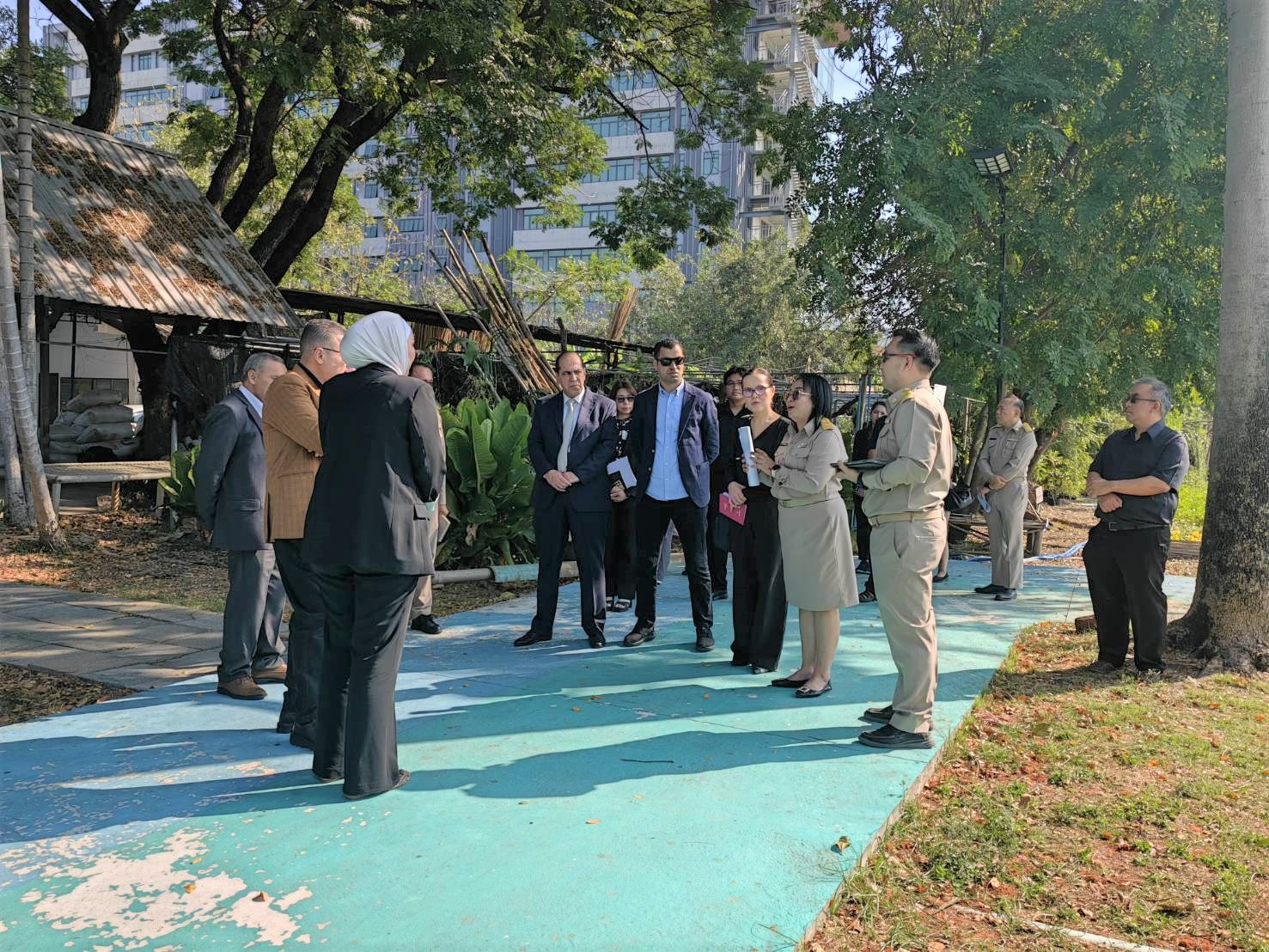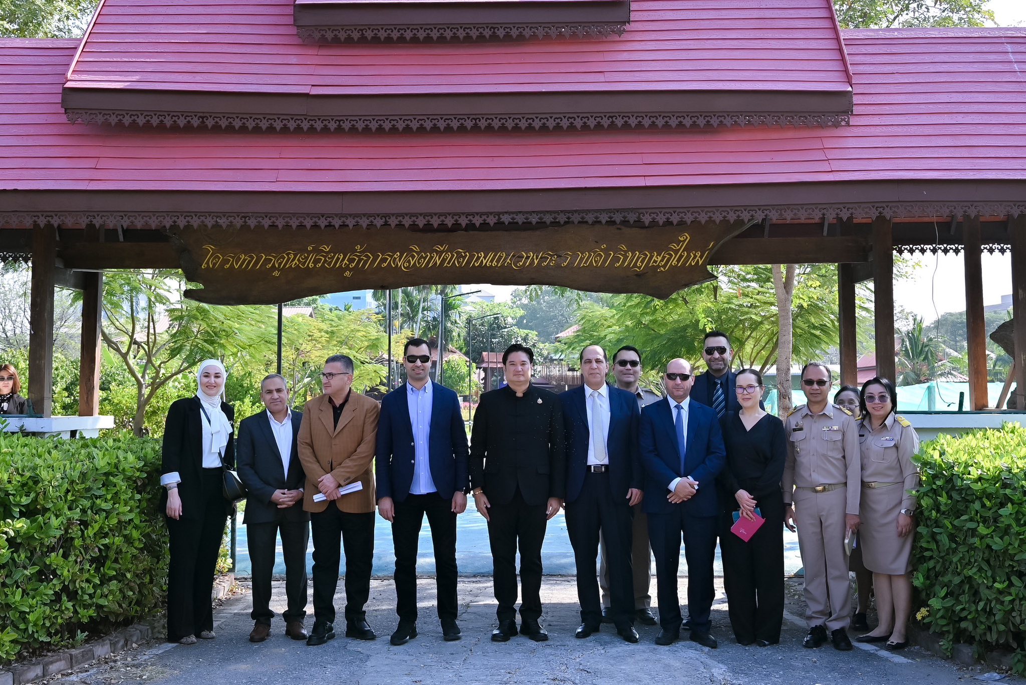 ในการนี้ คณะผู้แทนจากกระทรวงเกษตรและสำนักพระราชวังจอร์แดนได้เยี่ยมชมสวนเฉลิมพระเกียรติ 55 พรรษา ซึ่งเป็นศูนย์เรียนรู้การผลิตพืชตามแนวพระราชดำริเกษตรทฤษฎีใหม่ โดยได้ศึกษาดูงานในจุดสำคัญต่าง ๆ อาทิ แปลงนา แปลงไม้ผล แปลงผัก โรงเรือนเพาะเห็ด เรือนทรงงาน และได้รับฟังการบรรยายสรุปเกี่ยวกับแนวคิดและการดำเนินงานของ “เกษตรทฤษฎีใหม่” โดย ดร.ปาริชาติ พจนศิลป์ ดร.ณภัทร ศิริสุนทรลักษณ์ นางสาวทิวา บุบผาประเสริฐ สถาบันวิจัยพืชสวน และนางสาวรัชฎาภรณ์ ทองเหม สำนักวิจัยพัฒนาเทคโนโลยีชีวภาพ