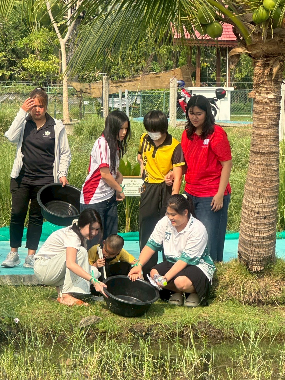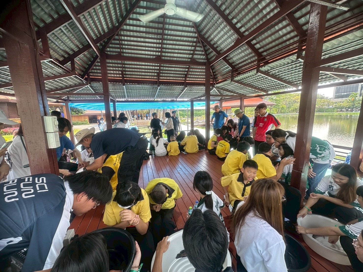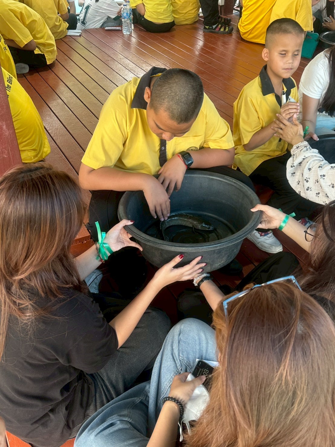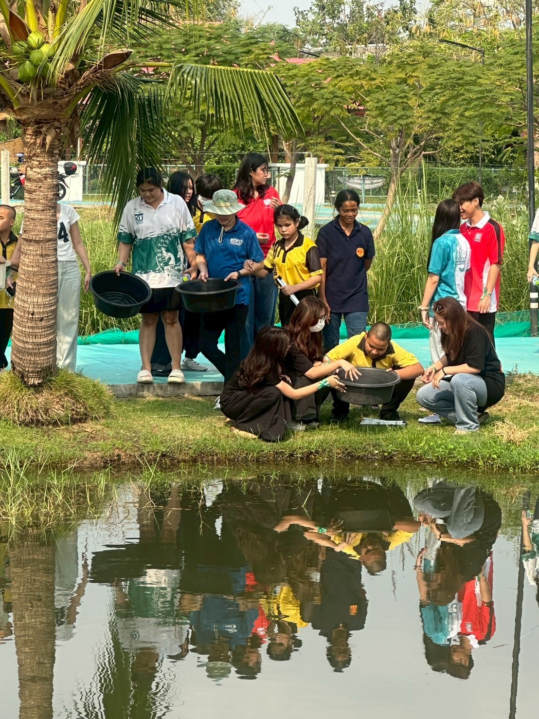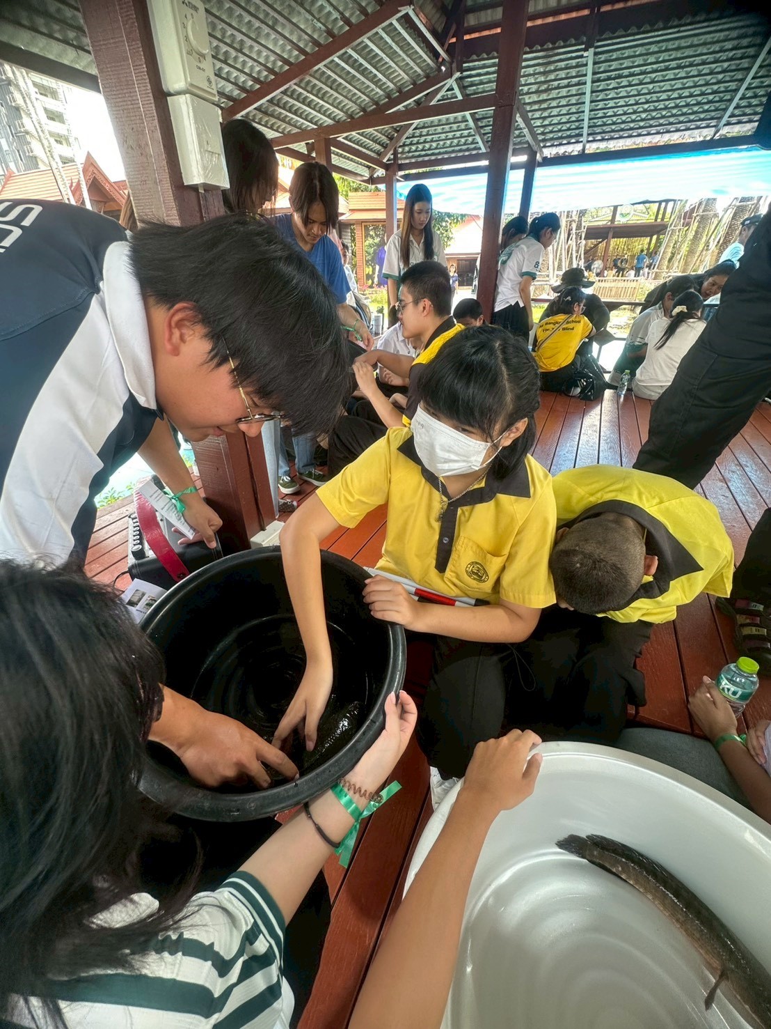 ฐานที่ 2 กิจกรรมจับ/ปล่อยปลา [Catching/releasing fish] ณ ศาลากลางน้ำ