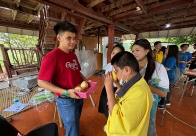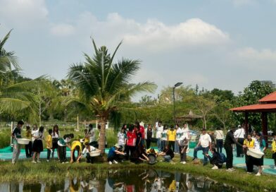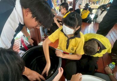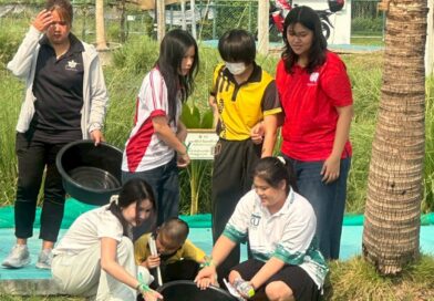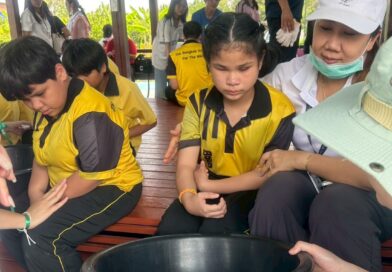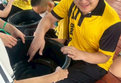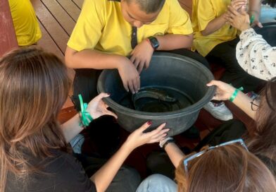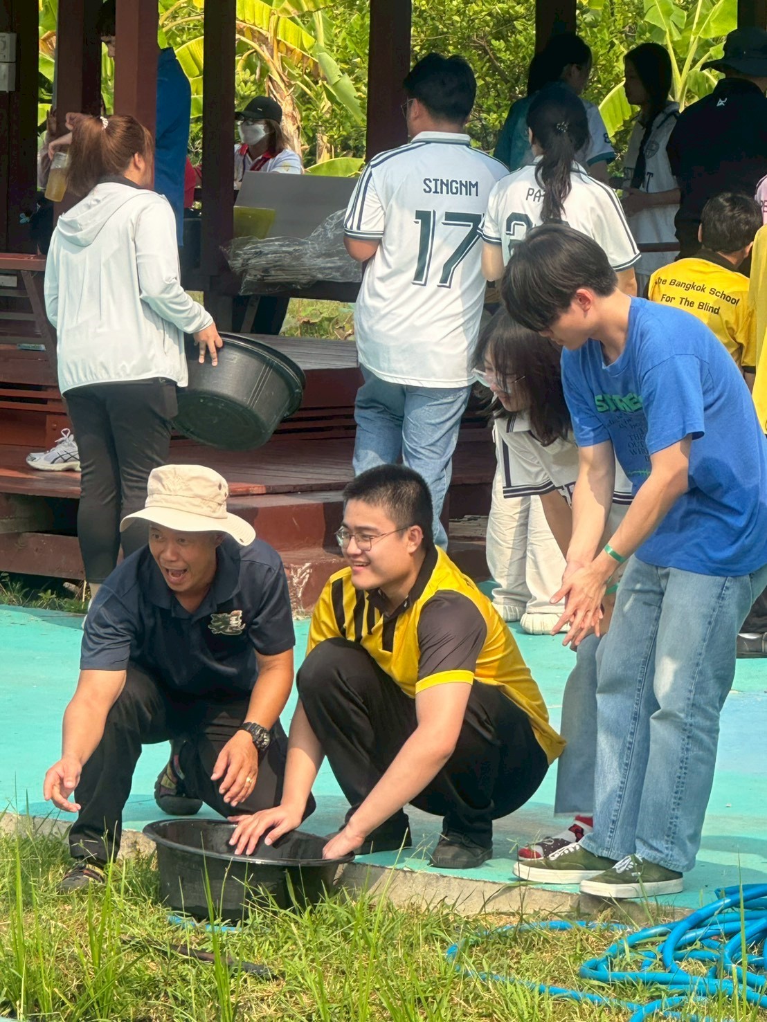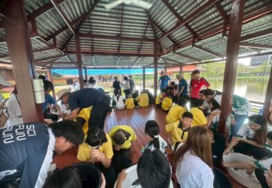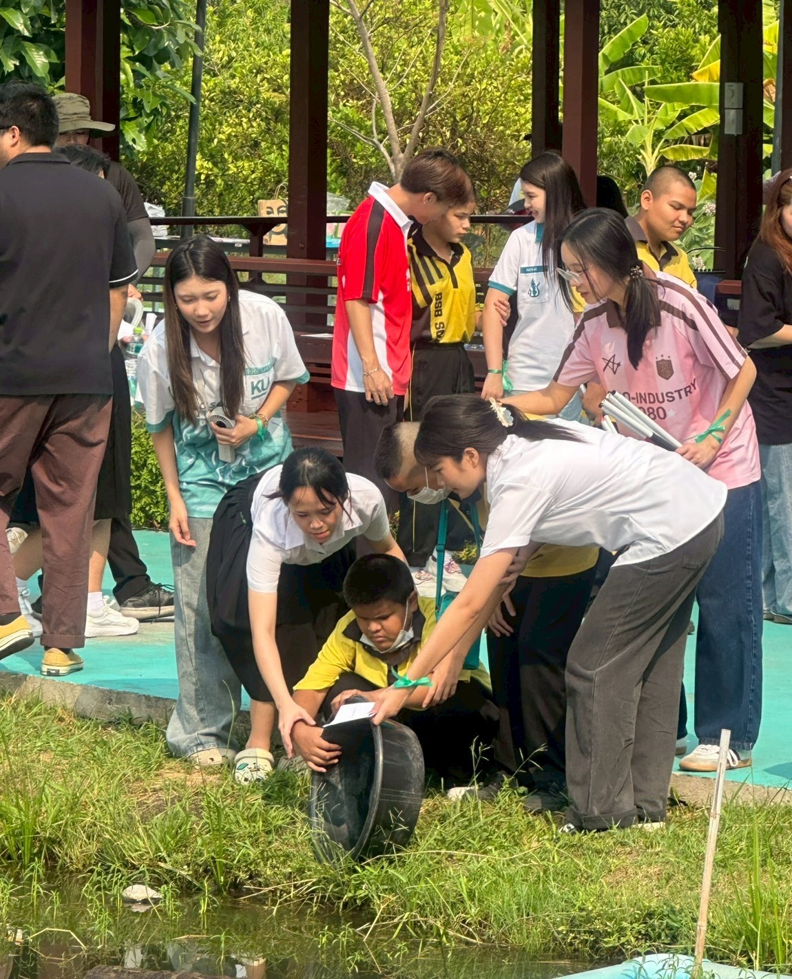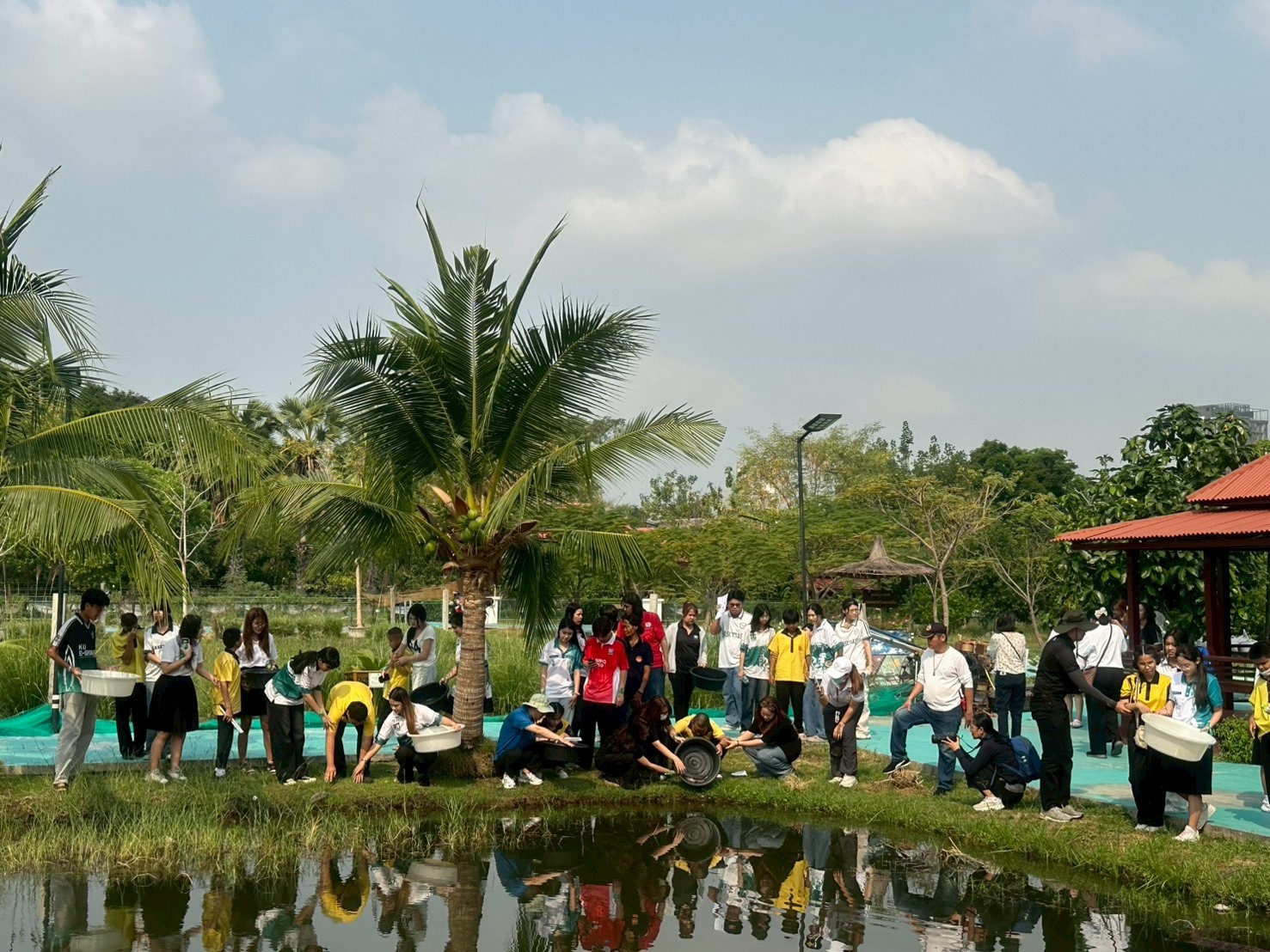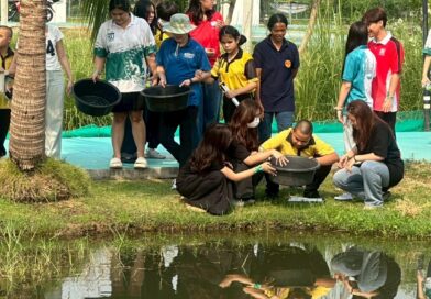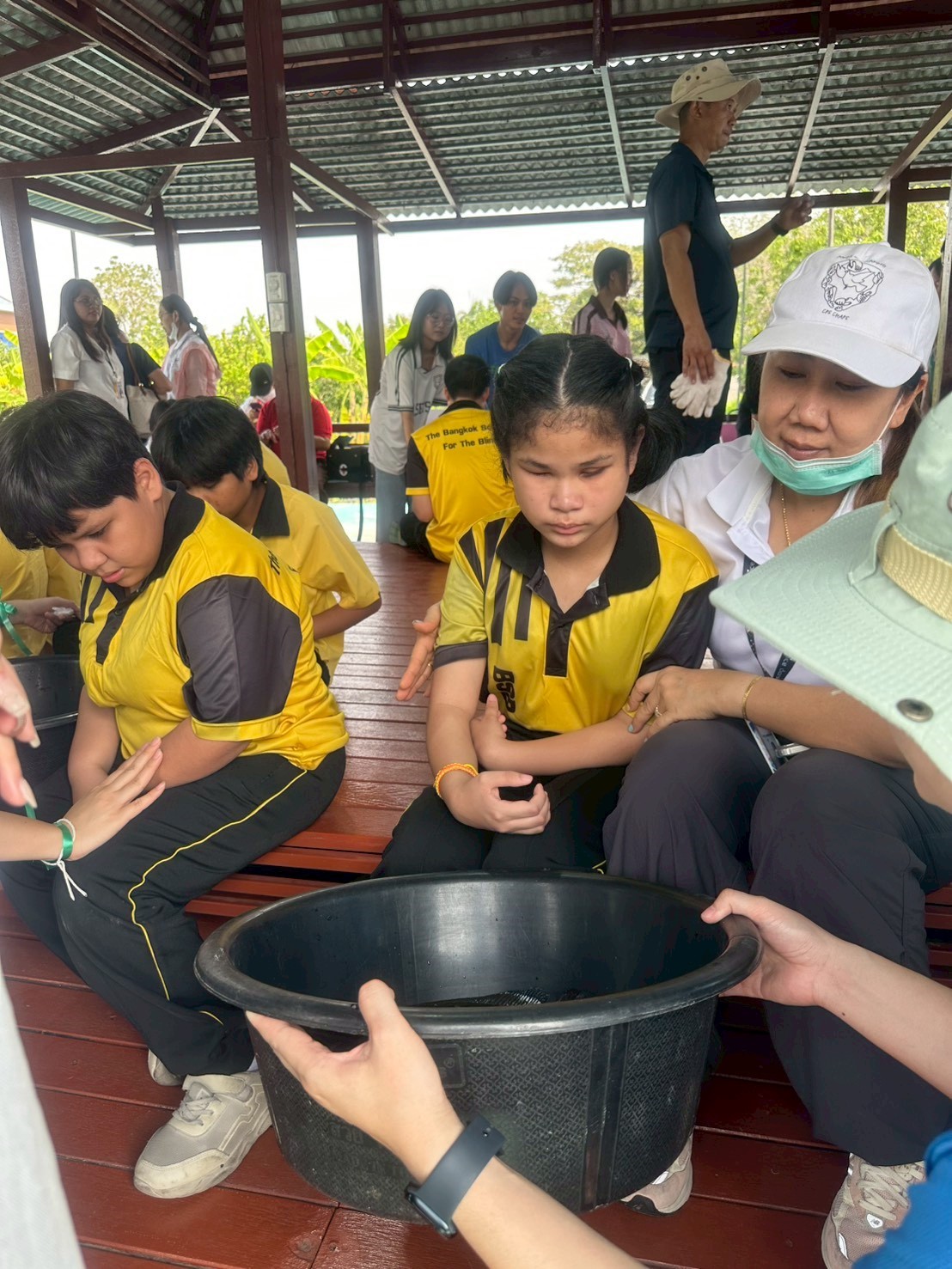 ฐานที่ 2 กิจกรรมจับ/ปล่อยปลา [Catching/releasing fish] ณ ศาลากลางน้ำ