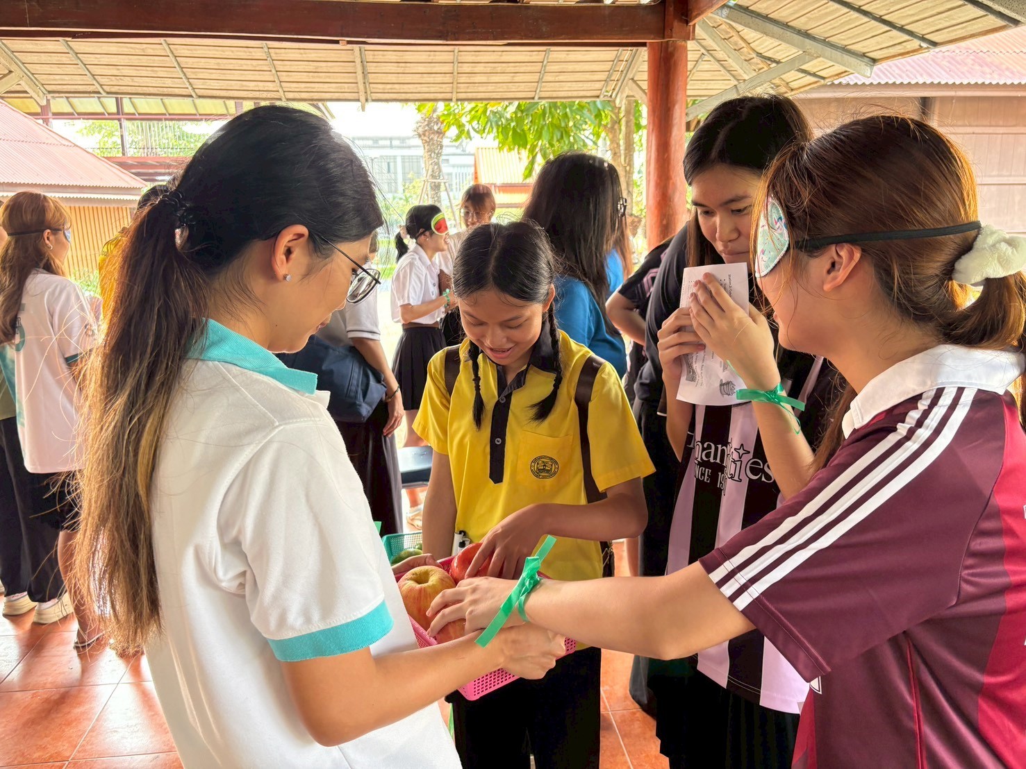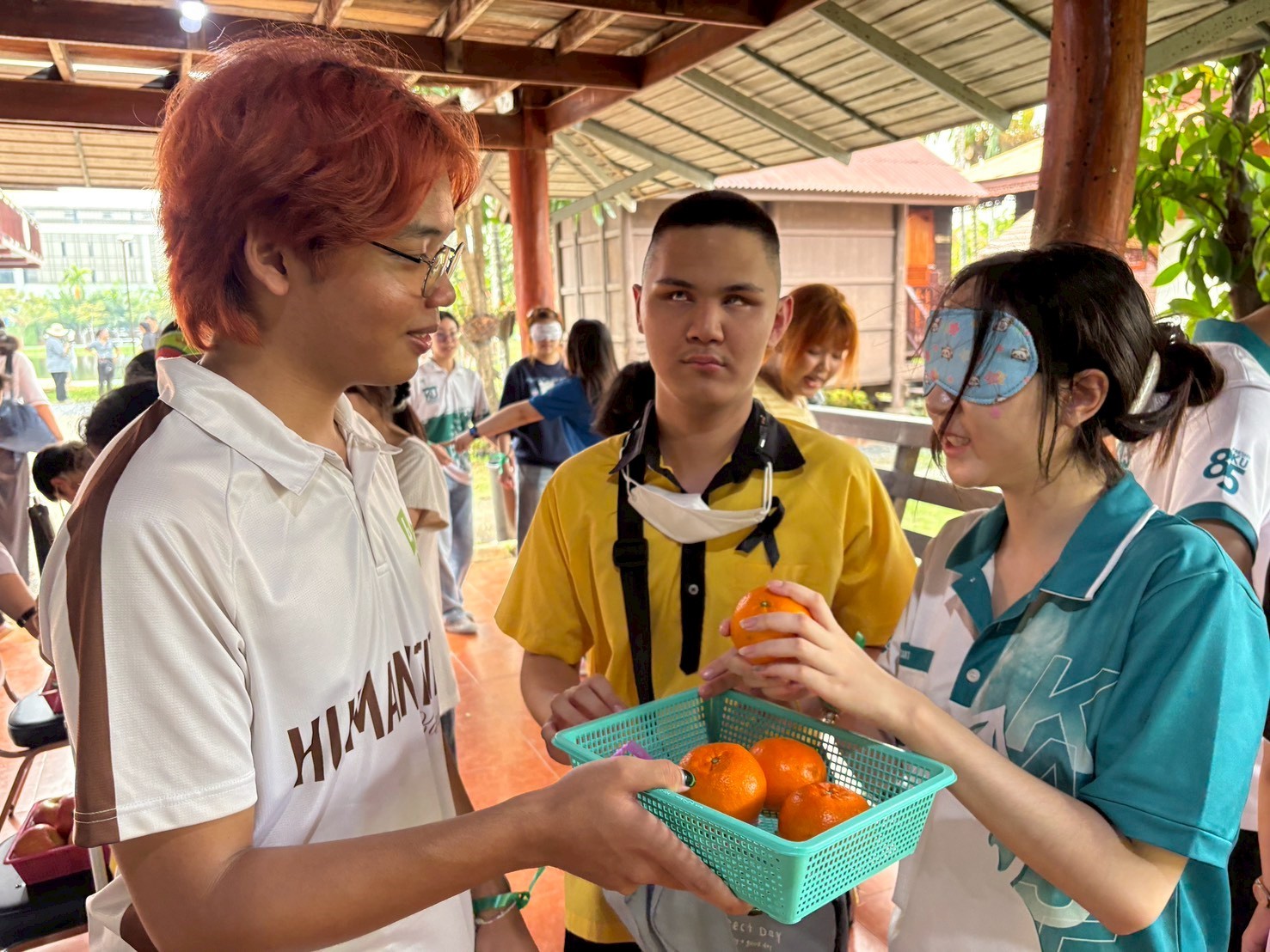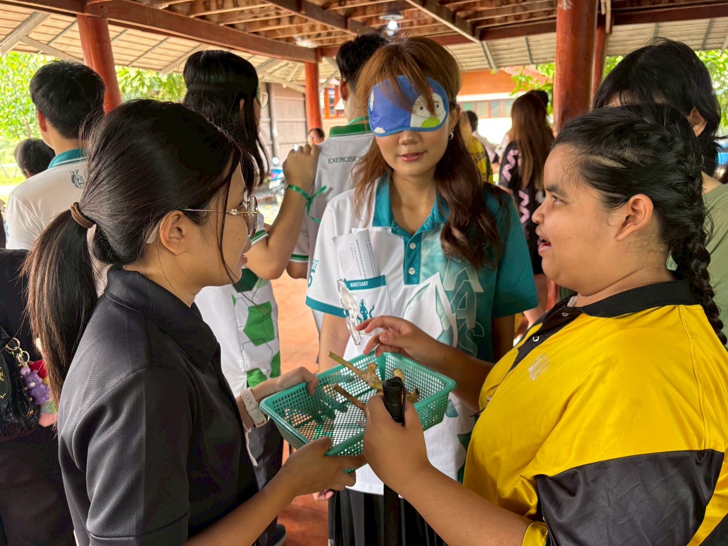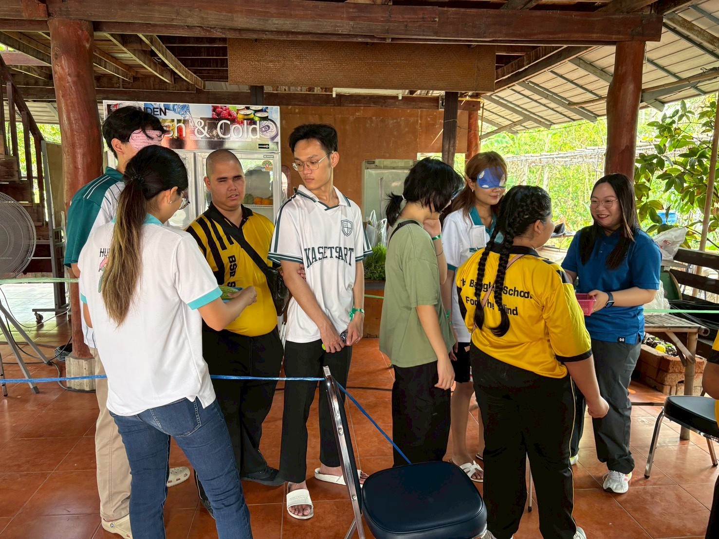 ฐานที่ 3 กิจกรรมปิดตาหาของทายคำ [Blindfolded guessing] ณ บ้านชาวนา