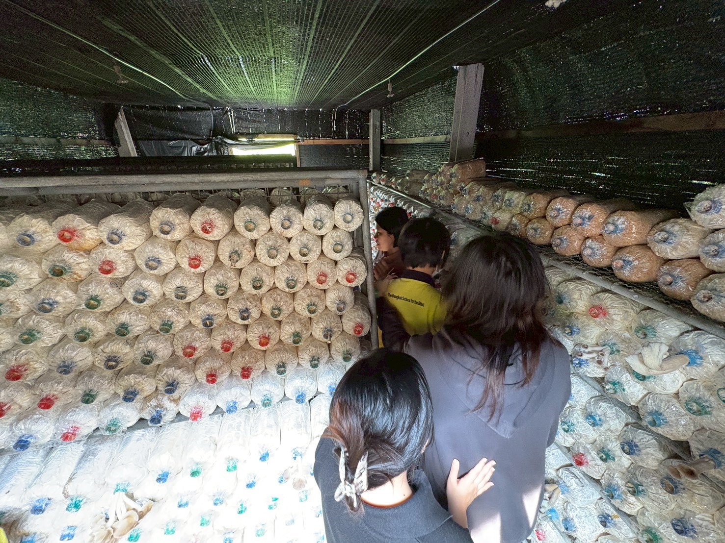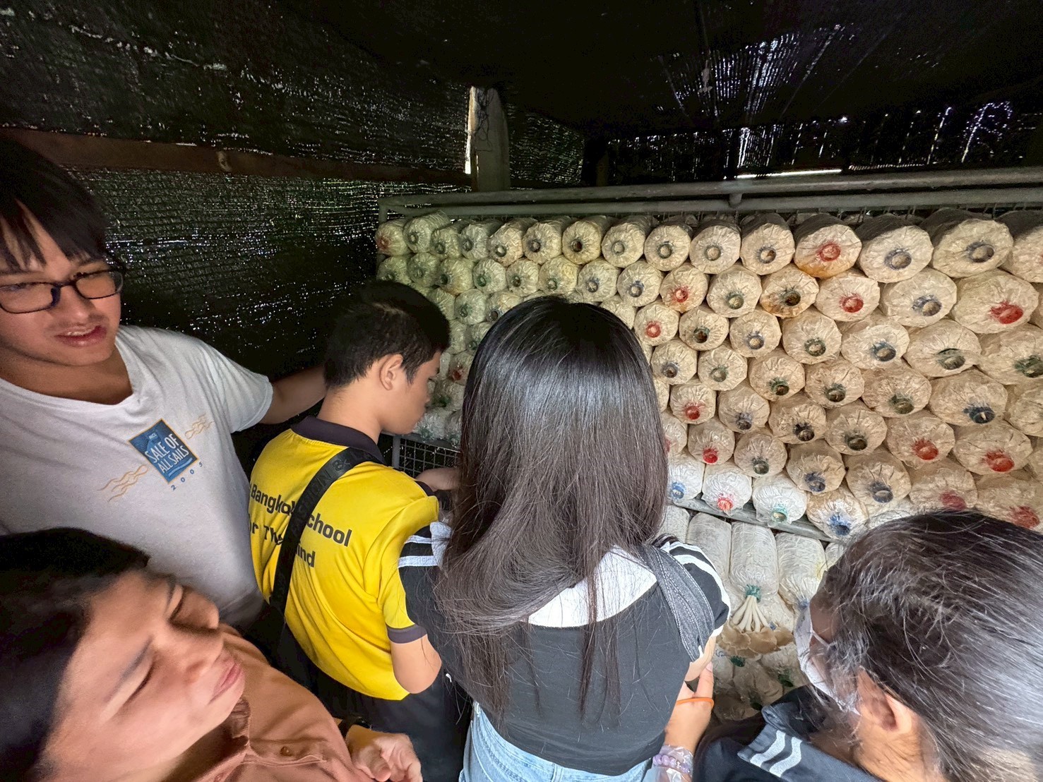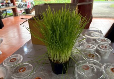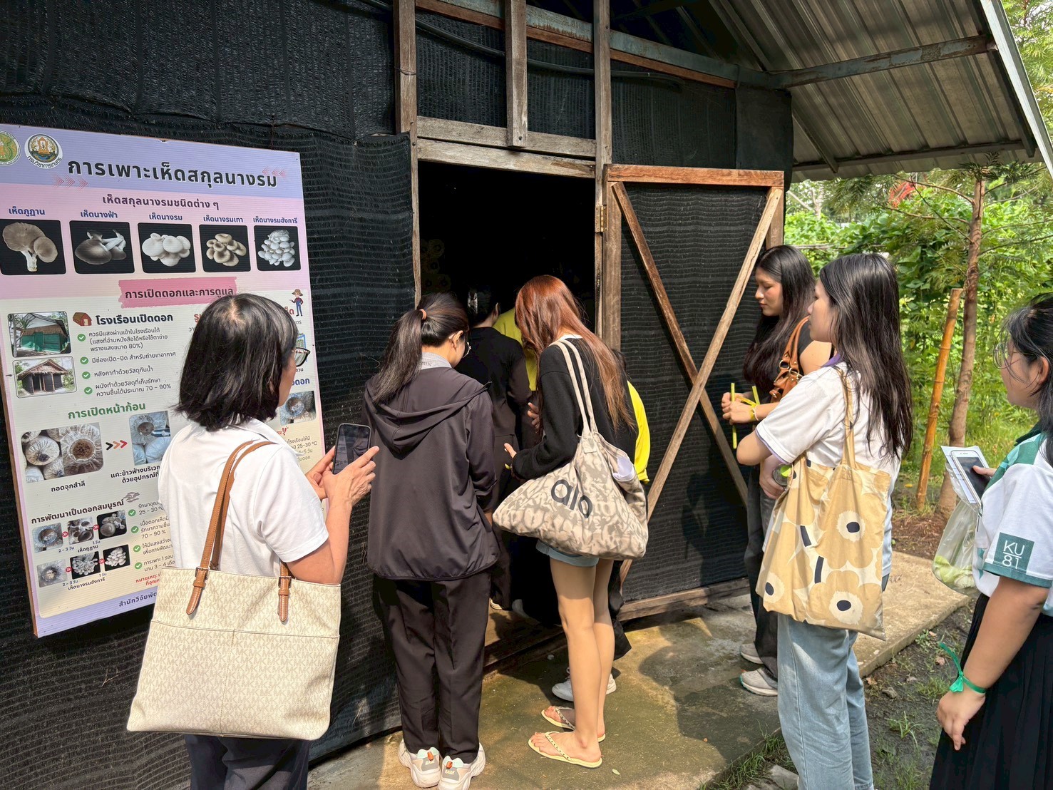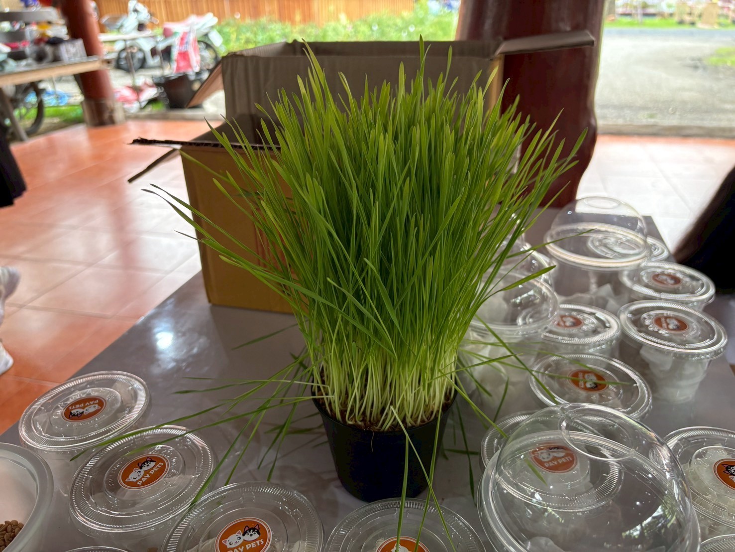 ฐานที่ 3 กิจกรรมปลูกหญ้าแมว (ต้นข้าวสาลี) และเพาะเห็ด [Growing cat grass (wheatgrass) and cultivating mushrooms] ณ บ้านชาวนา