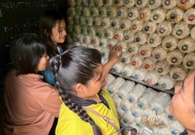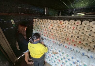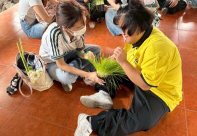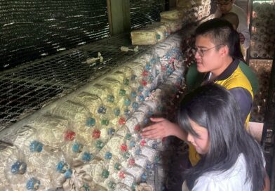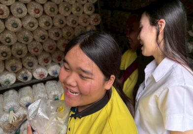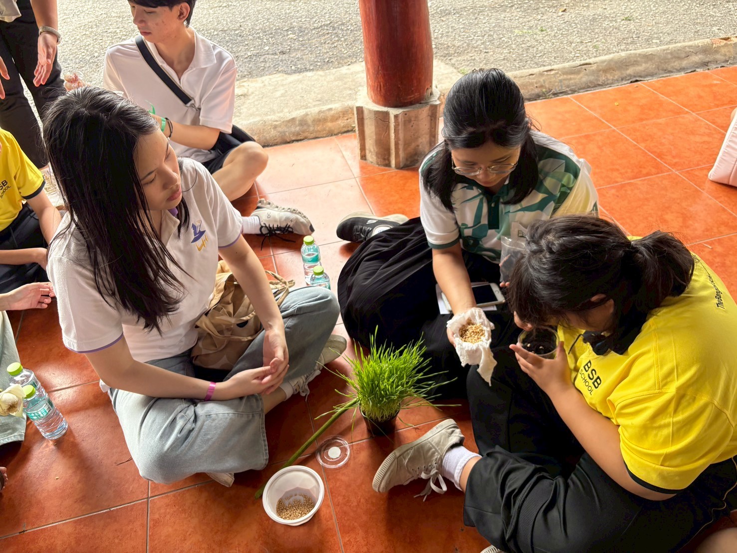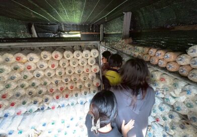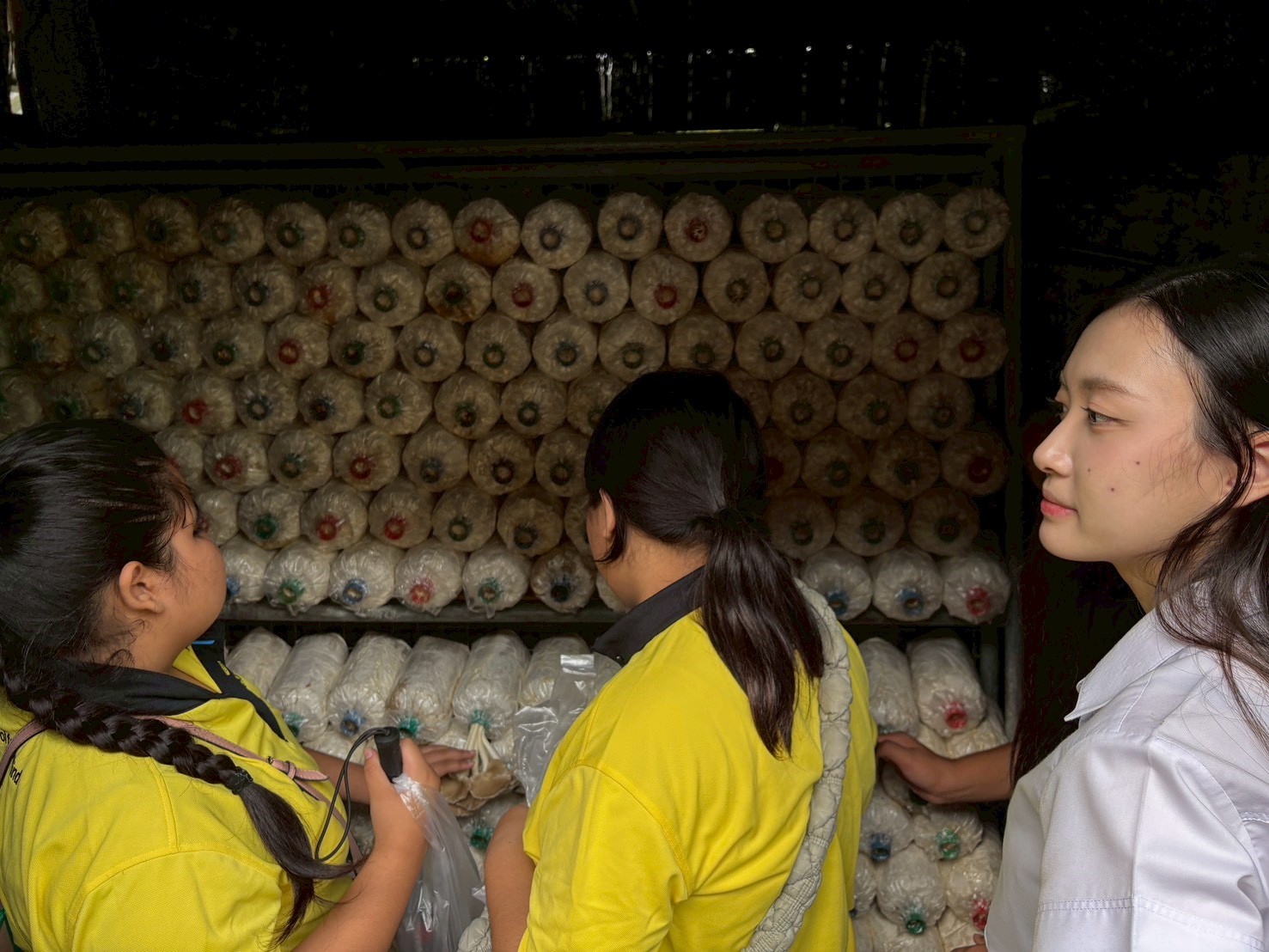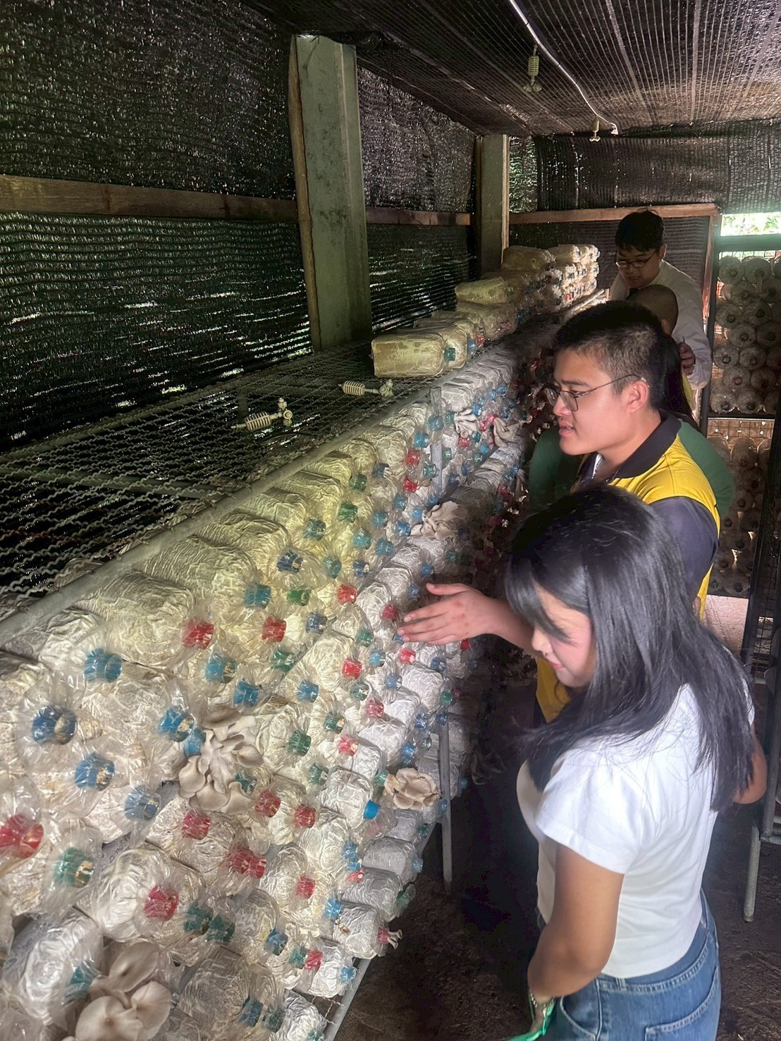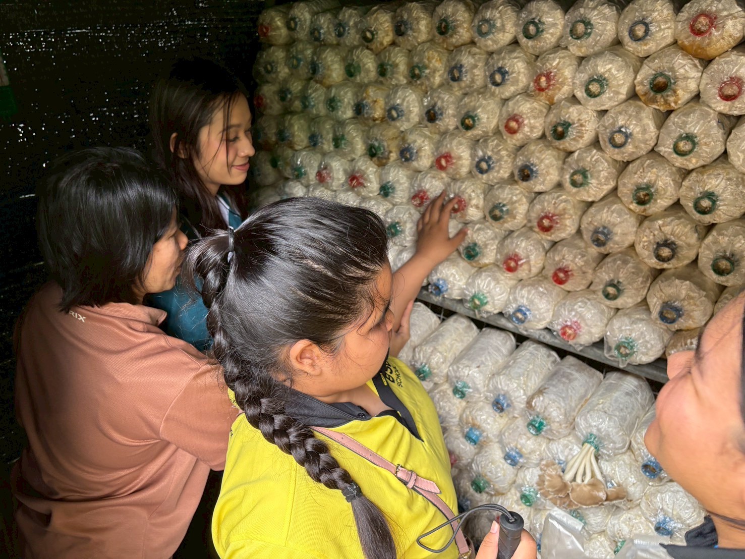 ฐานที่ 3 กิจกรรมปลูกหญ้าแมว (ต้นข้าวสาลี) และเพาะเห็ด [Growing cat grass (wheatgrass) and cultivating mushrooms] ณ บ้านชาวนา
