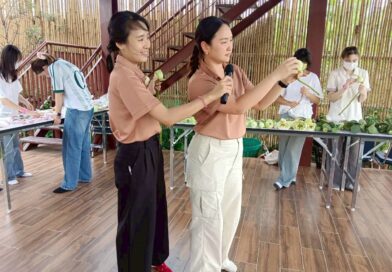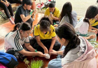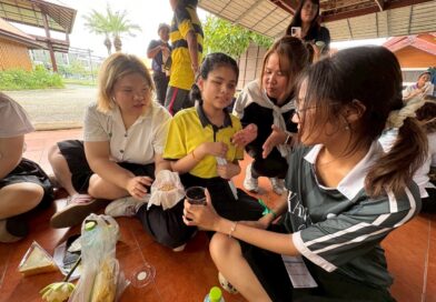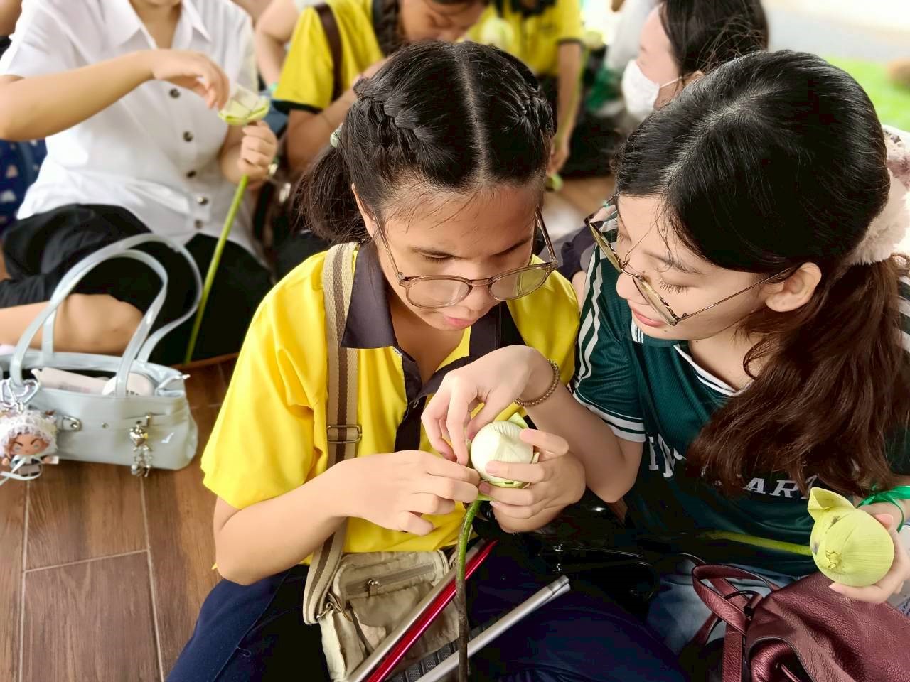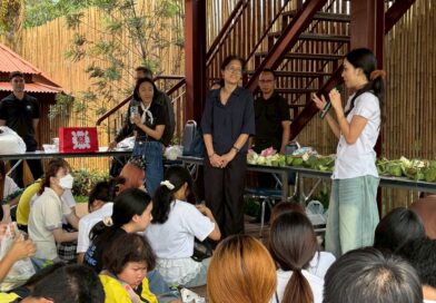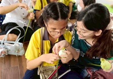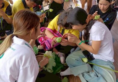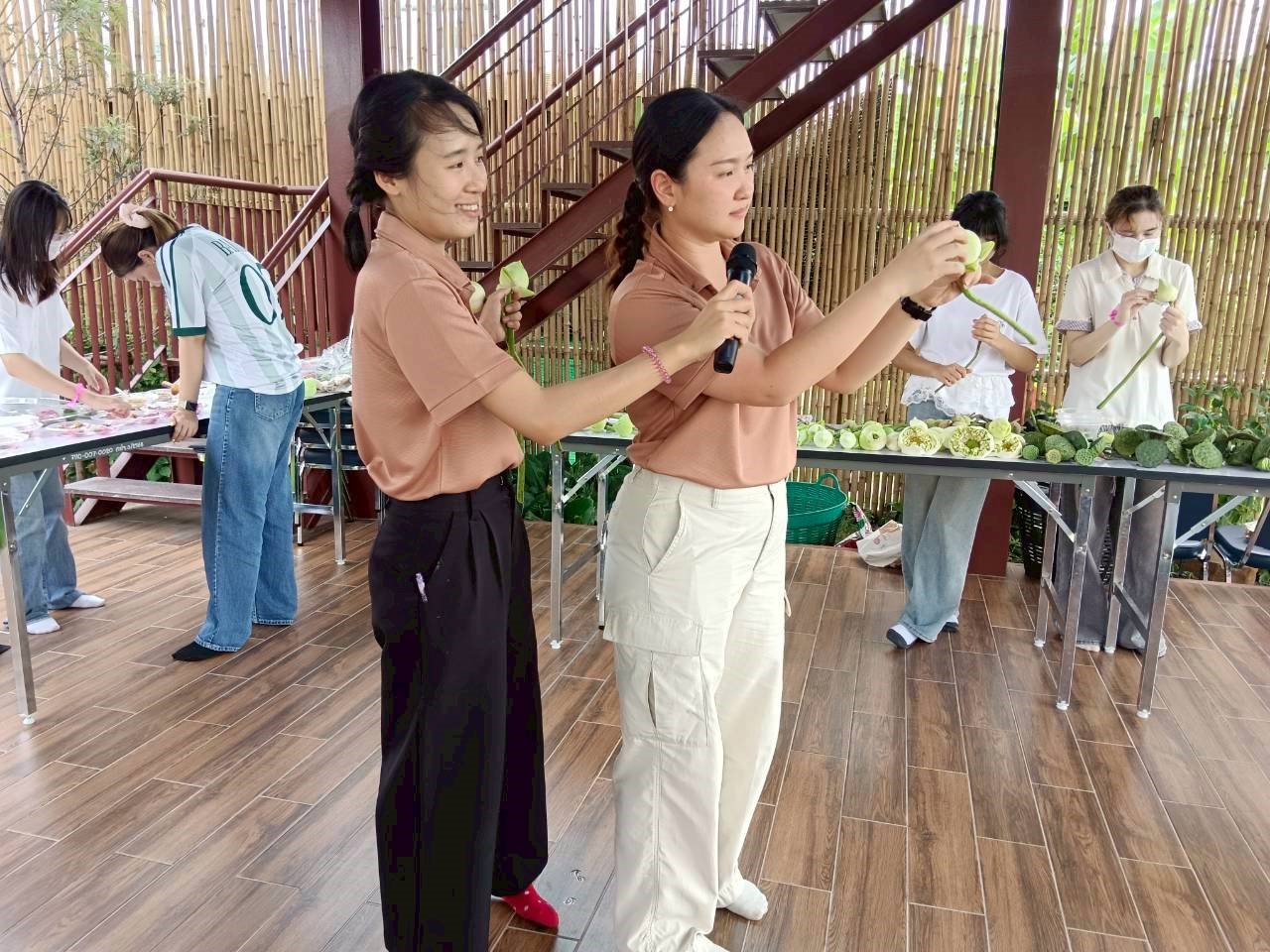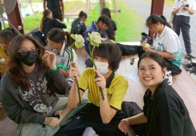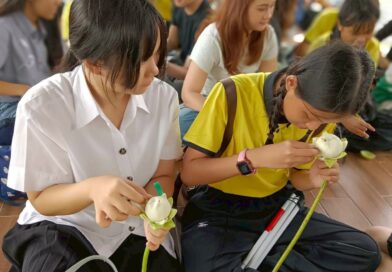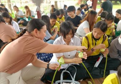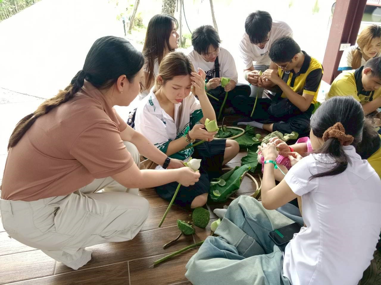 ฐานที่ 1 กิจกรรมพับดอกบัว [Folding a lotus flower] {กิน (Eat) -> เรียนรู้ (Lean) -> พับ (Fold)} ณ ศาลา 2 ชั้น