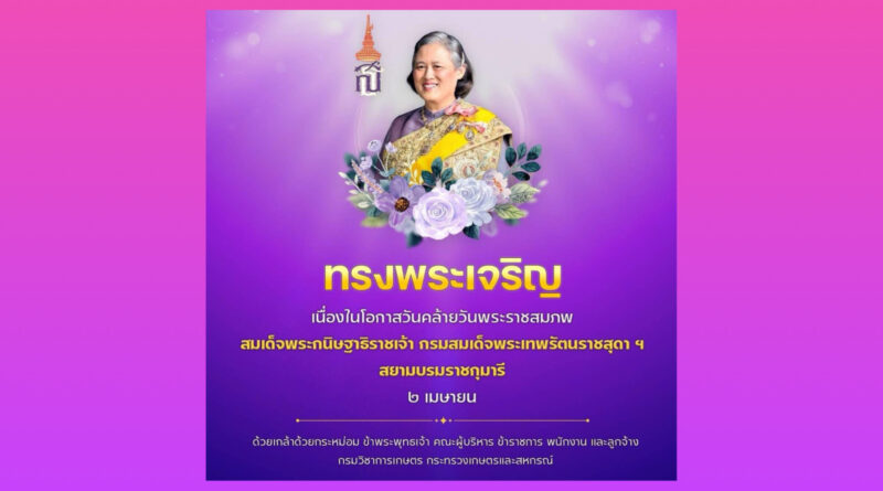 เมื่อวันที่ 2 เมษายน 2569 นายรพีภัทร์ จันทรศรีวงศ์ อธิบดีกรมวิชาการเกษตร เป็นประธานในพิธีถวายภัตตาหารเช้า ทำบุญตักบาตรพระสงฆ์ จำนวน 9 รูป เพื่อถวายเป็นพระราชกุศล และร่วมพิธีถวายพระพรชัยมงคล สมเด็จพระกนิษฐาธิราชเจ้า กรมสมเด็จพระเทพรัตนราชสุดา ฯ สยามบรมราชกุมารี เนื่องในโอกาสวันคล้ายวันพระราชสมภพ วันที่ 2 เมษายน 2569 ทรงเจริญพระชนมายุ 71 พรรษา