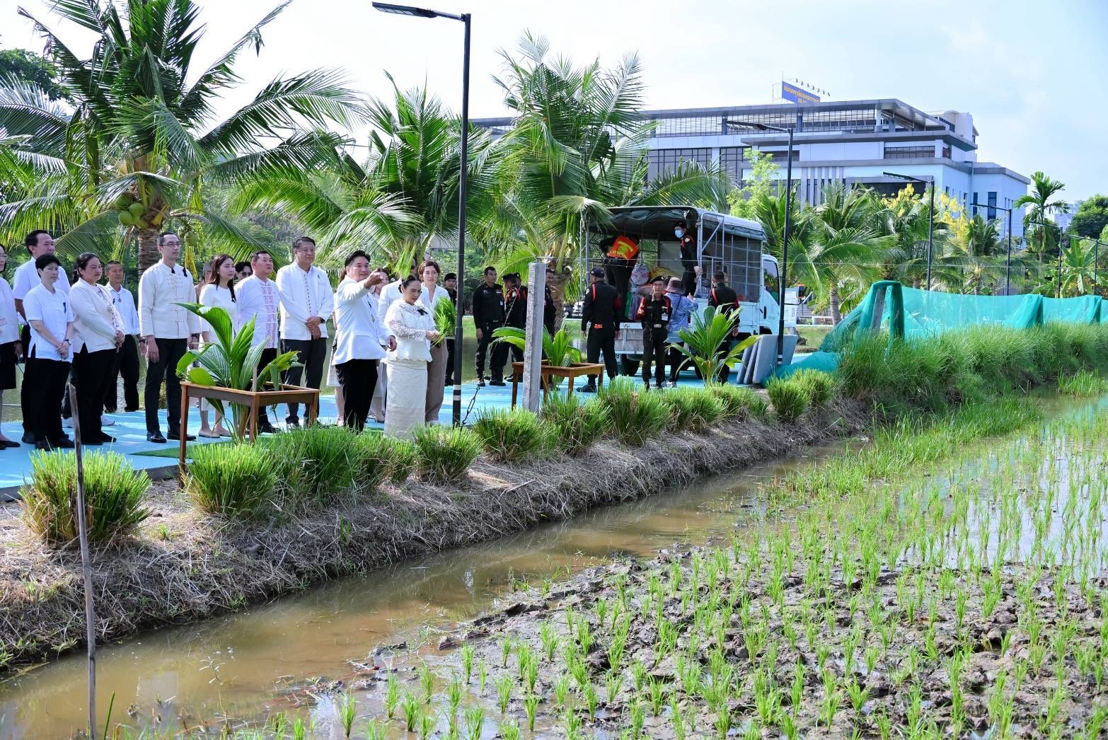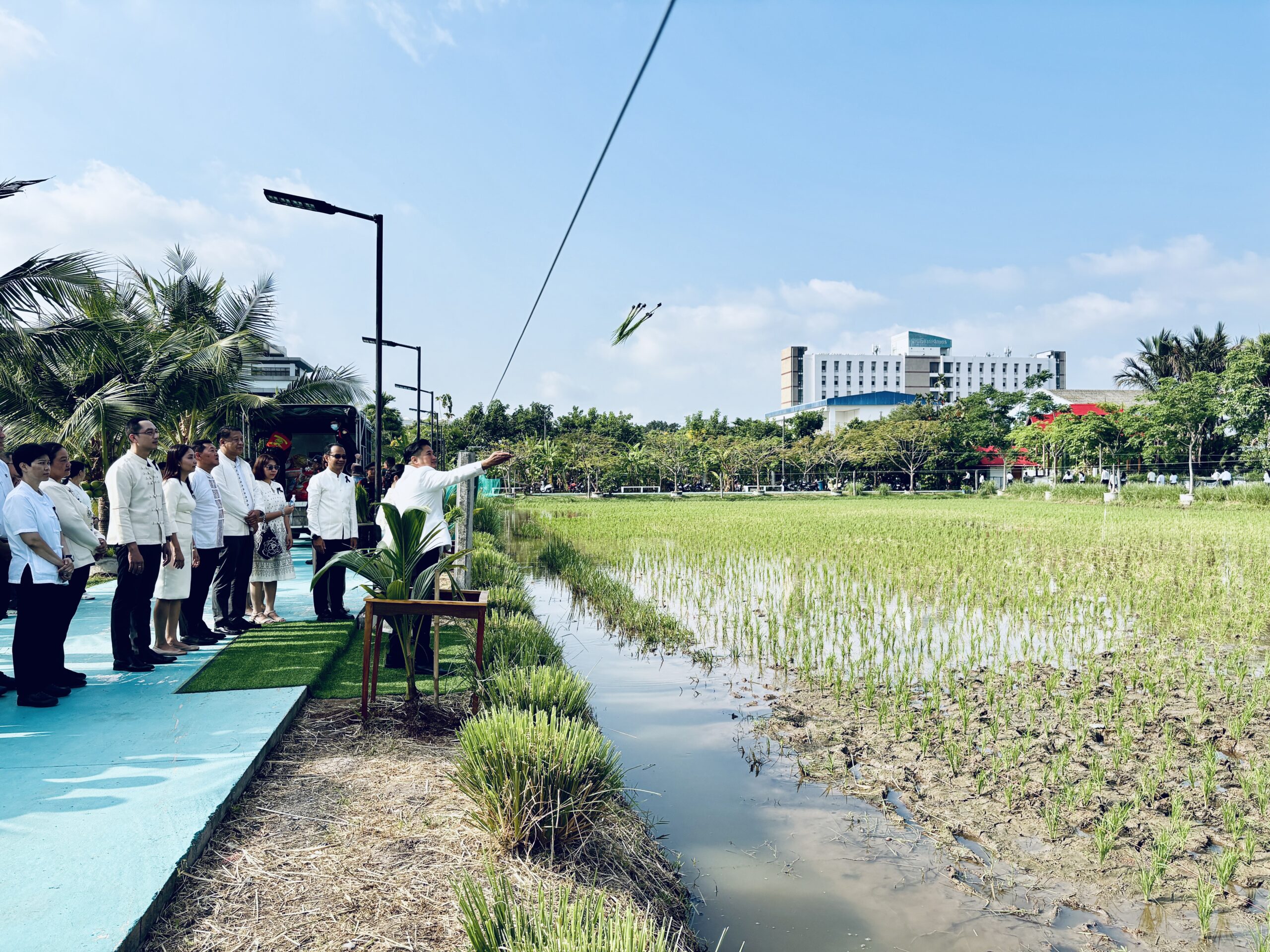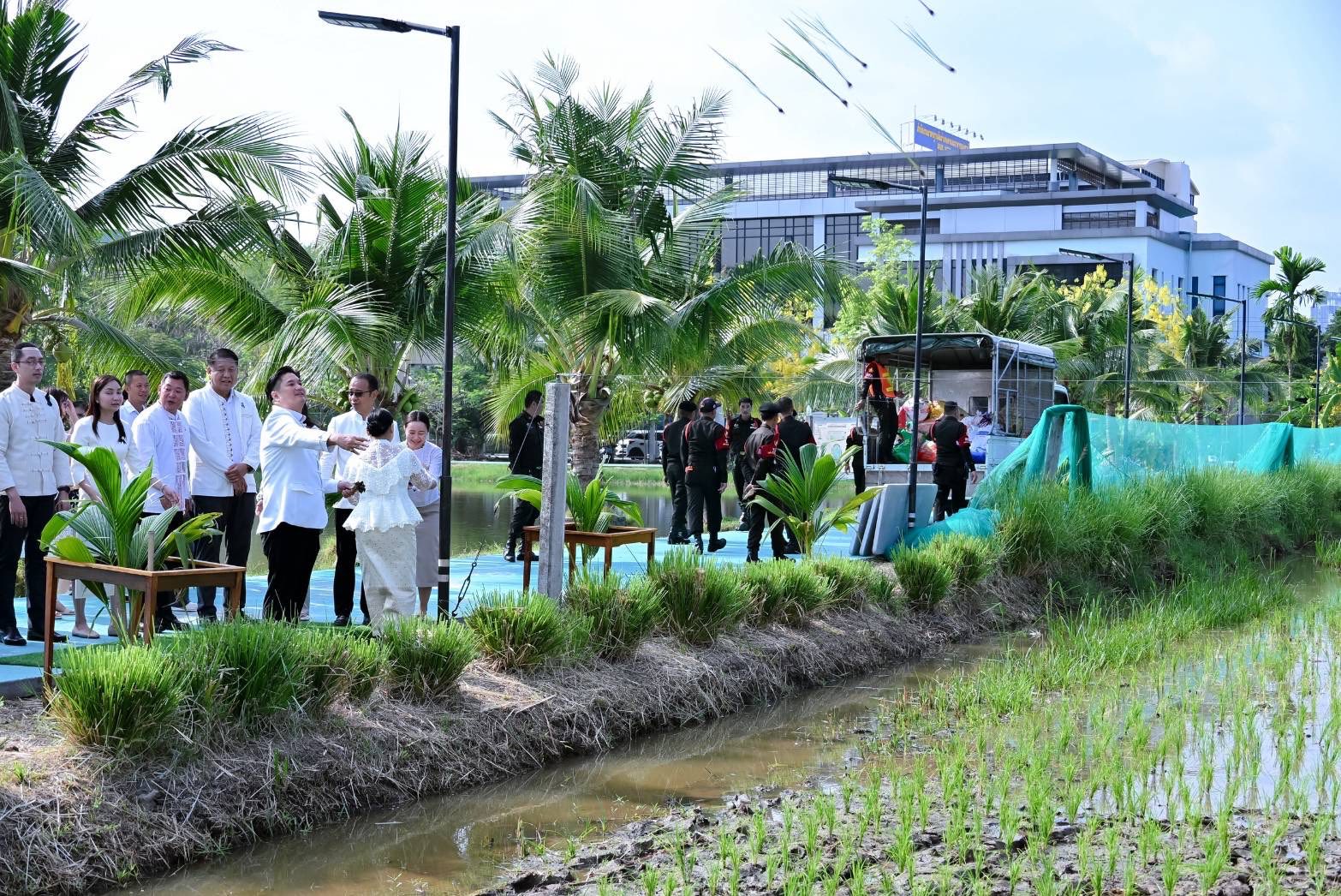 พร้อมกันนี้ อธิบดีกรมวิชาการเกษตร และคณะผู้บริหารได้ร่วมกิจกรรมเฉลิมพระเกียรติฯ โดยการทำนาโยนกล้าข้าว พันธุ์ปทุมธานี 1 บริเวณแปลงนา สวนเฉลิมพระเกียรติ 55 พรรษา โดยมี นางศศิญา ปานตั้น รองอธิบดีกรมวิชาการเกษตร พร้อมด้วยคณะผู้บริหาร และบุคลากรของกรมวิชาการเกษตร เข้าร่วมพิธี ณ สวนเฉลิมพระเกียรติ 55 พรรษา กรมวิชาการเกษตร