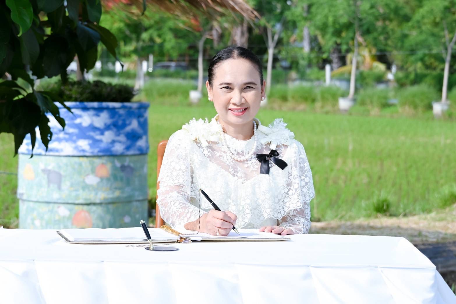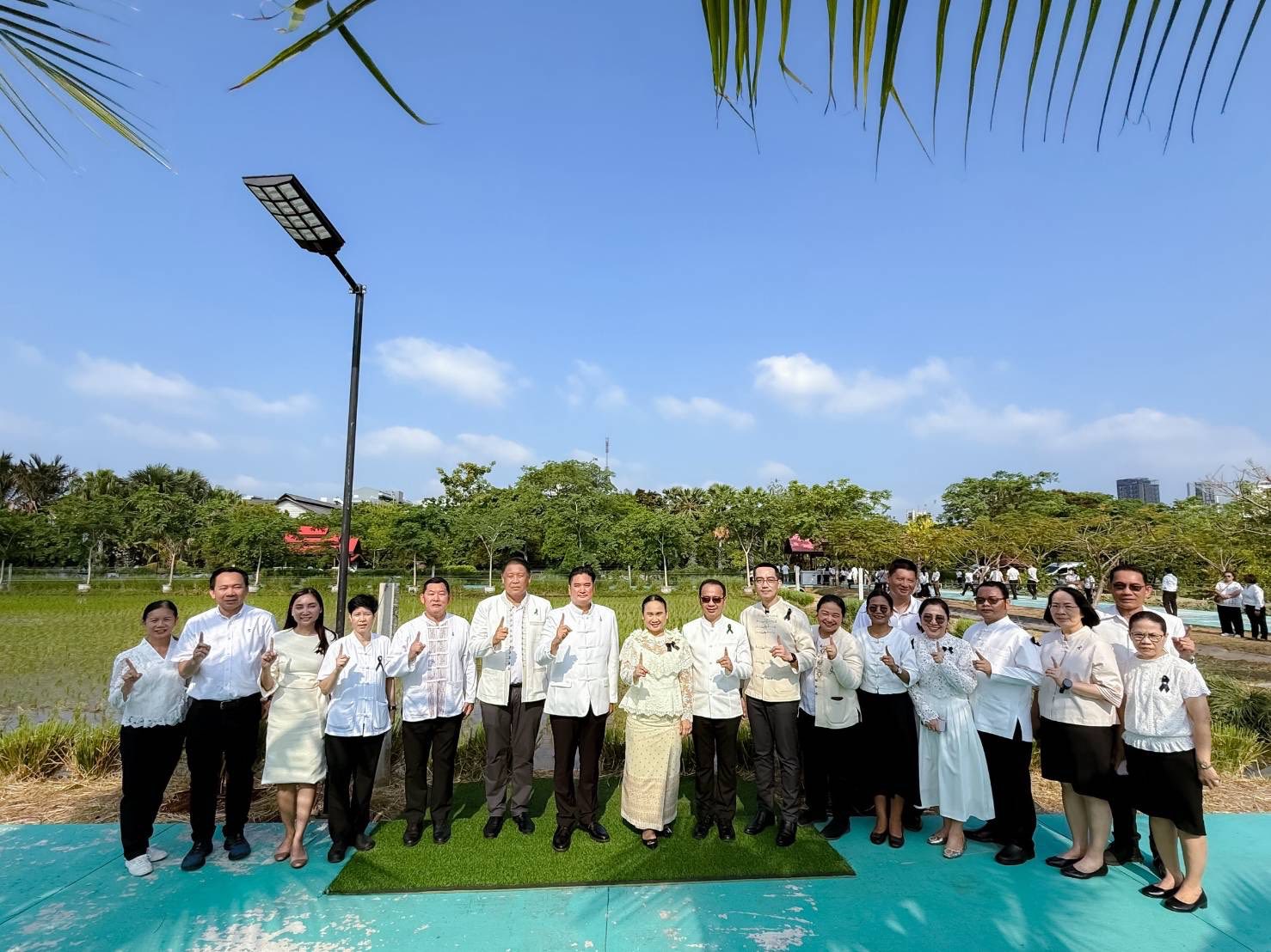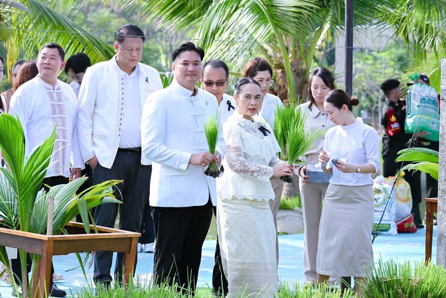 พร้อมกันนี้ อธิบดีกรมวิชาการเกษตร และคณะผู้บริหารได้ร่วมกิจกรรมเฉลิมพระเกียรติฯ โดยการทำนาโยนกล้าข้าว พันธุ์ปทุมธานี 1 บริเวณแปลงนา สวนเฉลิมพระเกียรติ 55 พรรษา โดยมี นางศศิญา ปานตั้น รองอธิบดีกรมวิชาการเกษตร พร้อมด้วยคณะผู้บริหาร และบุคลากรของกรมวิชาการเกษตร เข้าร่วมพิธี ณ สวนเฉลิมพระเกียรติ 55 พรรษา กรมวิชาการเกษตร