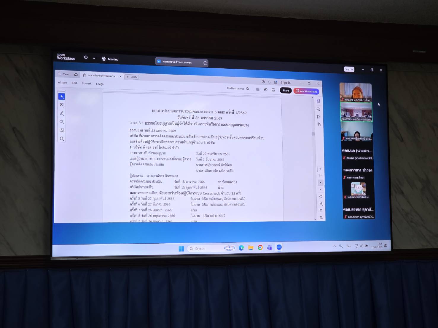 วันที่ 26 มกราคม 2569 กองการยางได้กำหนดให้มีการประชุมคณะกรรมการ 3 คณะ ได้แก่ คณะกรรมการ ผู้ตรวจติดตามและประเมินห้องปฏิบัติการฯคณะกรรมการควบคุม กำกับ ดูแลผู้ผลิตยางฯ และคณะกรรมการควบคุม กำกับ ดูแลห้องปฏิบัติการฯ ครั้งที่ 1/2569 เพื่อติดตามและพิจารณาการตรวจ/ประเมิน/ควบคุม กำกับ ดูแล ของผู้ผลิตยางฯ และห้องปฏิบัติการฯ โดยมี นางสาวพรทิพย์ ประกายมณีวงส์ ทำหน้าที่ผู้อำนวยการกลุ่มพัมนาระบบมาตรฐานยาง เป็นประธาน เข้าร่วมประชุม พร้อมด้วยข้าราชการ และ เจ้าหน้าที่ผู้ที่เกี่ยวข้อง ผ่านระบบ Zoom Cloud Meetings Posted on FacebookFacebookXTwitter