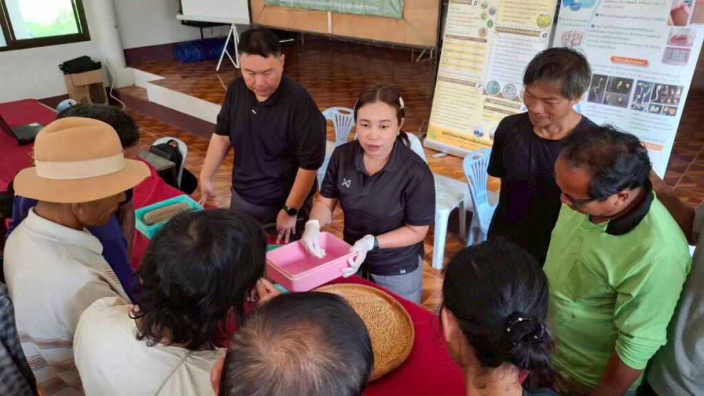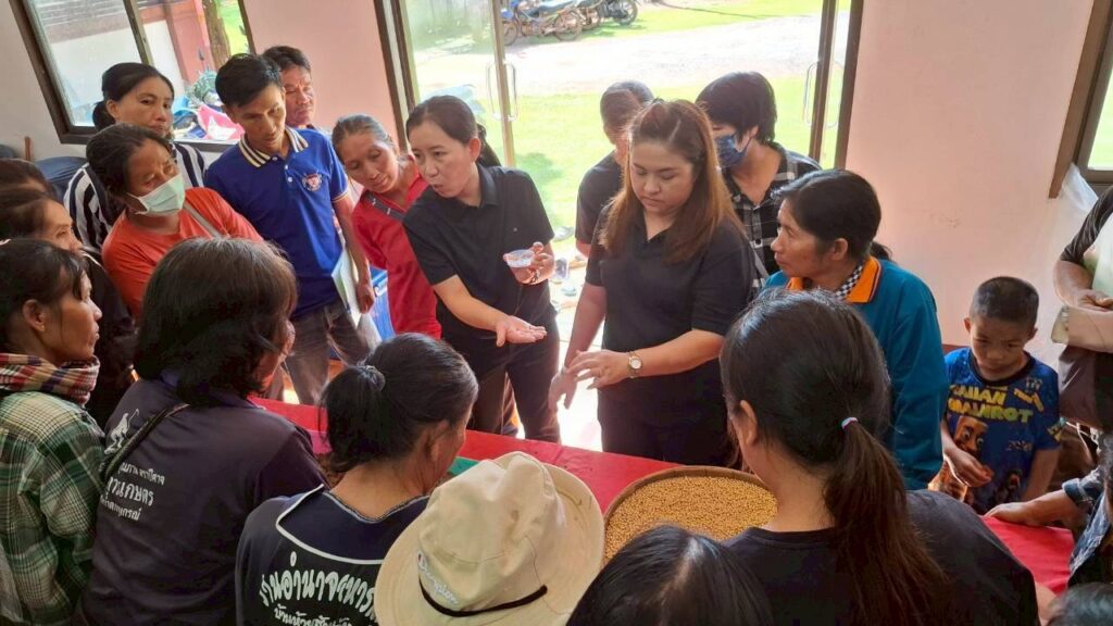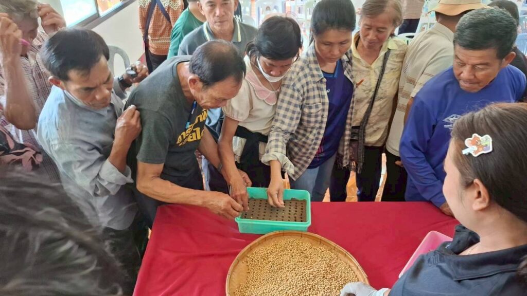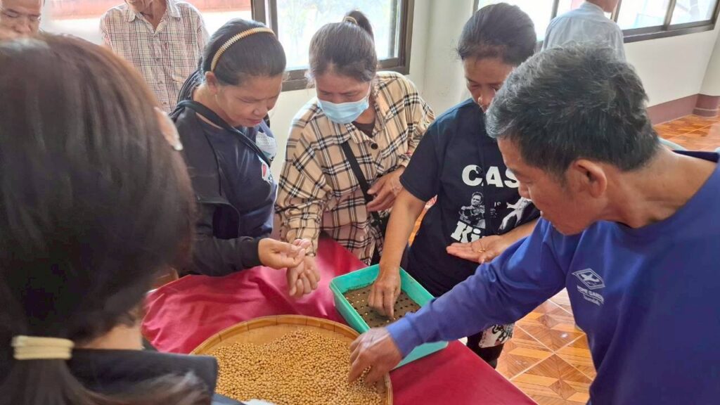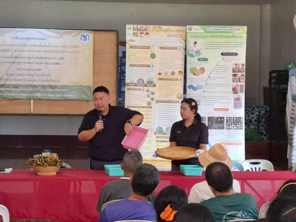 ข่าวกิจกรรม ศูนย์วิจัยและพัฒนาเมล็ดพันธุ์พืชเชียงใหม่ อบรมเกษตรกรเครือข่าย ผู้ผลิตเมล็ดพันธุ์ถั่วเหลือง ที่ได้รับทุนสนับสนุนจากสำนักงานพัฒนา การวิจัยการเกษตร (สวก.) ที่มุ่งนำผลงานวิจัยด้านเทคโนโลยี มาช่วยเพิ่มรายได้ให้เกษตรกรเพิ่มขึ้นร้อยละ 20 เมื่อวันที่ 30 ตุลาคม 2568 โดยนางสาวกัณทิมา ทองศรี ผู้อำนวยการศูนย์วิจัยและพัฒนาเมล็ดพันธุ์พืชเชียงใหม่ พร้อมทั้งนักวิชาการเกษตร และเจ้าหน้าที่ศูนย์ฯ อบรมเกษตรกร หลักสูตร “เทคโนโลยีการผลิตเมล็ดพันธุ์ถั่วเหลือง ชั้นพันธุ์จำหน่าย การปรับปรุงสภาพเมล็ดพันธุ์ และการตรวจสอบคุณภาพเมล็ดพันธุ์ถั่วเหลืองอย่างง่าย” ภายใต้โครงการผลิตเมล็ดพันธุ์พืชตระกูลถั่วเพื่อเพิ่มศักยภาพการผลิตและยกระดับเศรษฐกิจชุมชนอย่างยั่งยืน ปี 2568 กิจกรรมที่ 1 : การผลิตเมล็ดพันธุ์ถั่วเหลืองเพื่อเพิ่มศักยภาพการผลิตและยกระดับเศรษฐกิจชุมชน เกษตรกรเข้าร่วมอบรมจำนวน 62 ราย ณ หอประชุมหมู่บ้านเหมืองลึก ตำบลโป่งแพร่ อำเภอแม่ลาว จังหวัดเชียงราย by admin31 ตุลาคม 256831 ตุลาคม 2025 FacebookFacebookXXLINELine