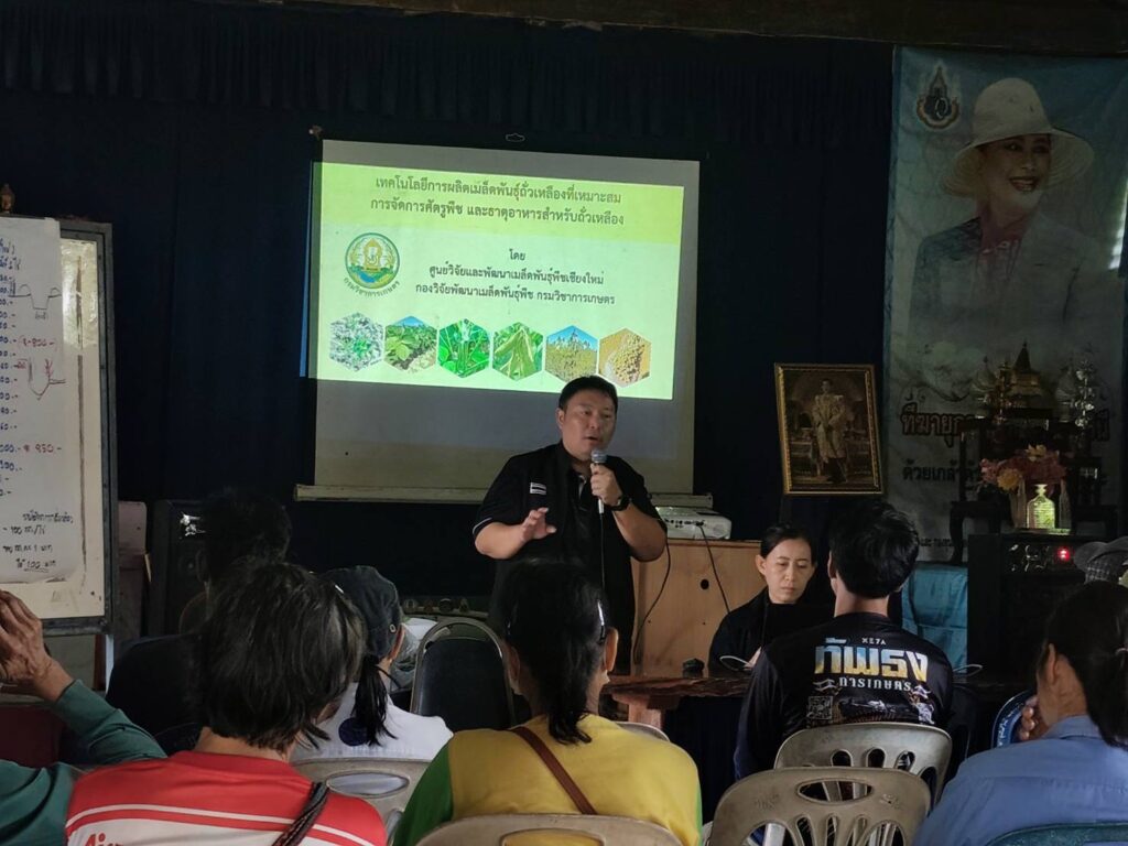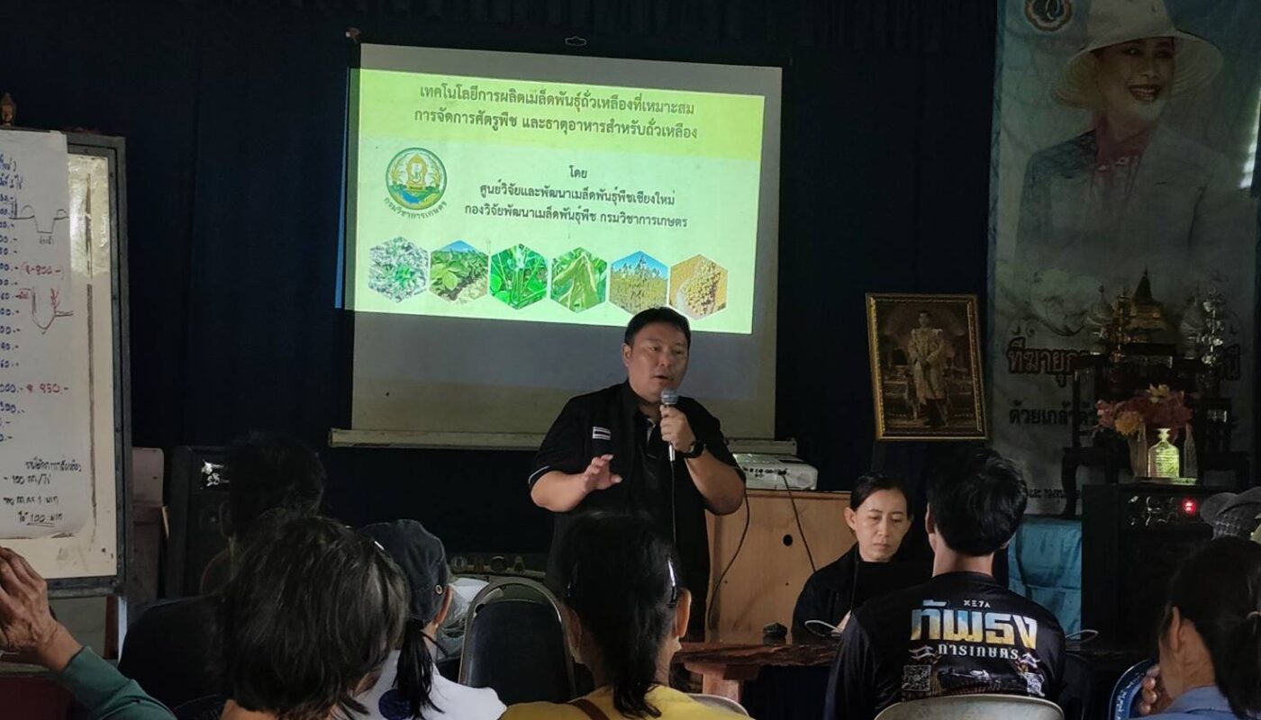 ข่าวกิจกรรม วันที่ 11-12 ธันวาคม 2568 นักวิชาการเกษตร ศูนย์วิจัยและพัฒนาเมล็ดพันธุ์พืชเชียงใหม่ ได้รับเชิญจาก สำนักงานเกษตรอำเภอแม่ริม จังหวัดเชียงใหม่ เพื่อเป็นวิทยากรในการฝึกอบรม หัวข้อ “เทคโนโลยีการผลิตเมล็ดพันธุ์ถั่วเหลืองที่เหมาะสม การจัดการศัตรูพืช และธาตุอาหารสำหรับถั่วเหลือง” ให้กับกลุ่มเกษตรกรในพื้นที่ตำบลสันโป่ง และตำบลสะลวง อำเภอแม่ริม จังหวัดเชียงใหม่ จำนวน 60 ราย ในวันพฤหัสบดีที่ 11 ธันวาคม 2568 ณ ศาลาเอนกประสงค์ หมู่ที่ 9 ตำบลสันโป่ง อำเภอแม่ริม จังหวัดเชียงใหม่ และ วันศุกร์ที่ 12 ธันวาคม 2568 ณ ศาลาเอนกประสงค์ หมู่ที่ 2 ตำบลสะลวง อำเภอแม่ริม จังหวัดเชียงใหม่ by admin12 ธันวาคม 256812 ธันวาคม 2025 FacebookFacebookXXLINELine
