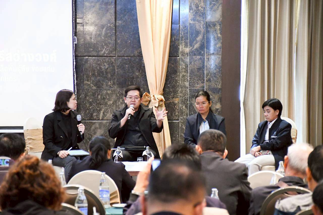 ในโอกาสนี้ นายสิทธิพงศ์ ศรีสว่างวงศ์ ผู้อำนวยการศูนย์วิจัยและเมล็ดพันธุ์พืชขอนแก่น กรมวิชาการเกษตร ได้ร่วมเสวนาในหัวข้อ “ถ่ายทอดประสบการณ์ขอรับเงินสนับสนุนโครงการนำร่องต้นแบบการผลิตถั่วเหลืองตามมาตรฐานเกษตรอินทรีย์สากลและแฟร์เทรด” ร่วมกับ พล.ต.หญิง นันท์มนัส ธำมรงค์รัตน์ ที่ปรึกษากลุ่มวิสาหกิจชุมชนเกษตรอินทรีย์แฟร์เทรดศรีสะเกษ และนางสุจินต์ คำผง เลขานุการวิสาหกิจชุมชนเกษตรอินทรีย์แฟร์เทรดศรีสะเกษ โดยมีนางสาวสุดารินทร์ รอดมณี เศรษฐกรชำนาญการพิเศษ เป็นผู้ดำเนินรายการ ซึ่งการเสวนาดังกล่าวช่วยถ่ายทอดประสบการณ์และแนวปฏิบัติที่เป็นประโยชน์ สามารถนำไปปรับใช้ในการพัฒนาโครงการด้านการเกษตรให้มีความเข้มแข็ง เพิ่มขีดความสามารถในการแข่งขัน