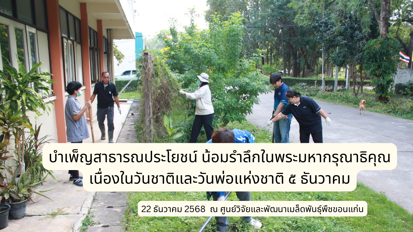 ศูนย์วิจัยและพัฒนาเมล็ดพันธุ์พืชขอนแก่นรวมพลังจิตอาสา บำเพ็ญสาธารณประโยชน์และบำเพ็ญกุศล น้อมรำลึกในพระมหากรุณาธิคุณ เนื่องในวันชาติและวันพ่อแห่งชาติ ๕ ธันวาคม
