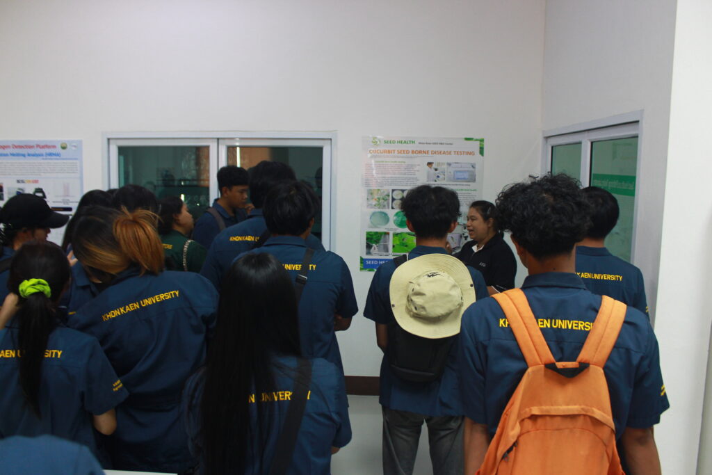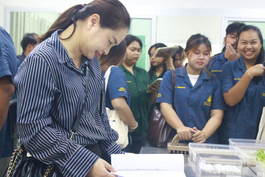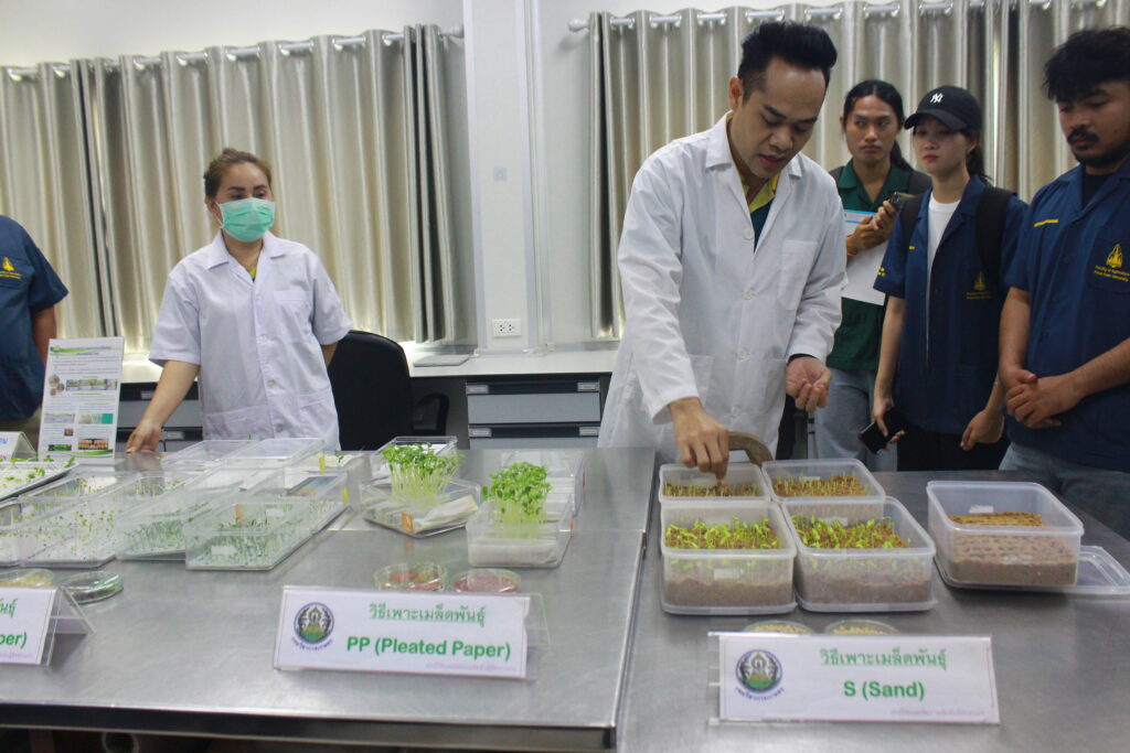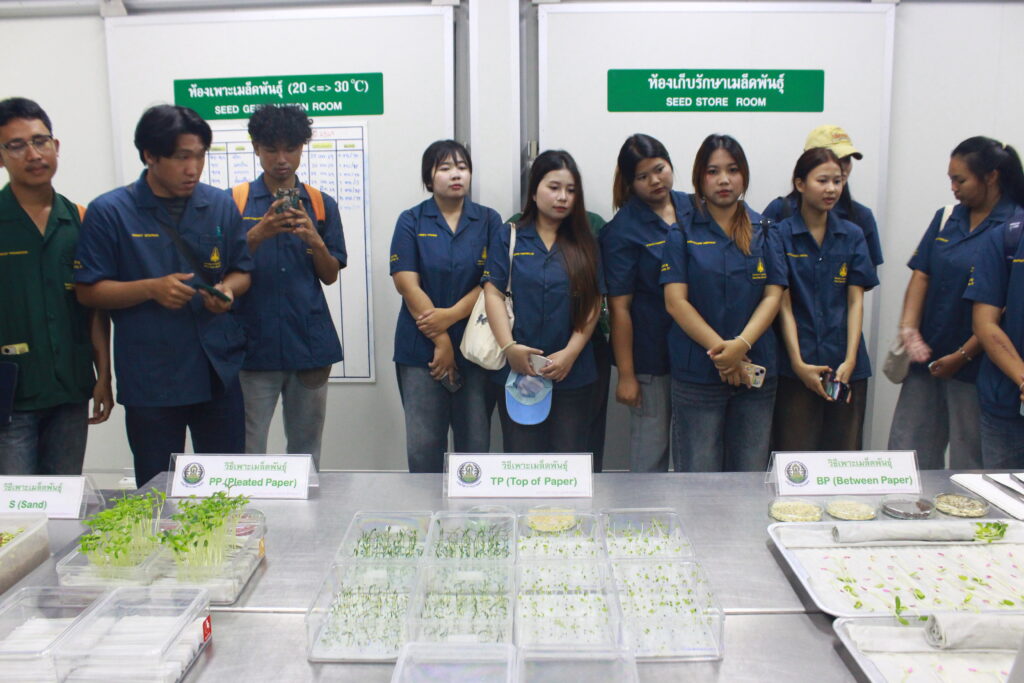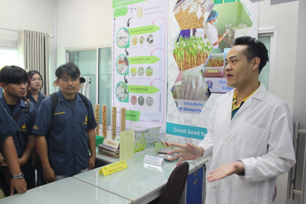 ในการศึกษาดูงานครั้งนี้ เจ้าหน้าที่ผู้เชี่ยวชาญของศูนย์ฯ ได้บรรยายให้ความรู้เกี่ยวกับขั้นตอนการตรวจสอบคุณภาพเมล็ดพันธุ์ ตั้งแต่กระบวนการสุ่มตัวอย่าง การทดสอบความงอก ความบริสุทธิ์ ความชื้น ตลอดจนการประเมินสุขภาพเมล็ดพันธุ์ตามหลักวิชาการ พร้อมทั้งนำชมอาคารปฏิบัติการ ห้องทดสอบคุณภาพเมล็ดพันธุ์ นอกจากนี้ ยังมีการให้ความรู้ด้านการตรวจสอบสุขอนามัยพืช การเฝ้าระวังและตรวจวินิจฉัยโรคและศัตรูพืชที่อาจติดมากับเมล็ดพันธุ์ รวมถึงแนวทางการป้องกันและควบคุม เพื่อสร้างความมั่นใจในคุณภาพและความปลอดภัยของเมล็ดพันธุ์ก่อนนำไปใช้ประโยชน์ทางการเกษตรและกระบวนการปฏิบัติงานจริง เพื่อให้นักศึกษาได้เห็นภาพรวมของระบบการควบคุมคุณภาพอย่างครบถ้วน