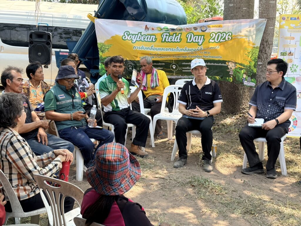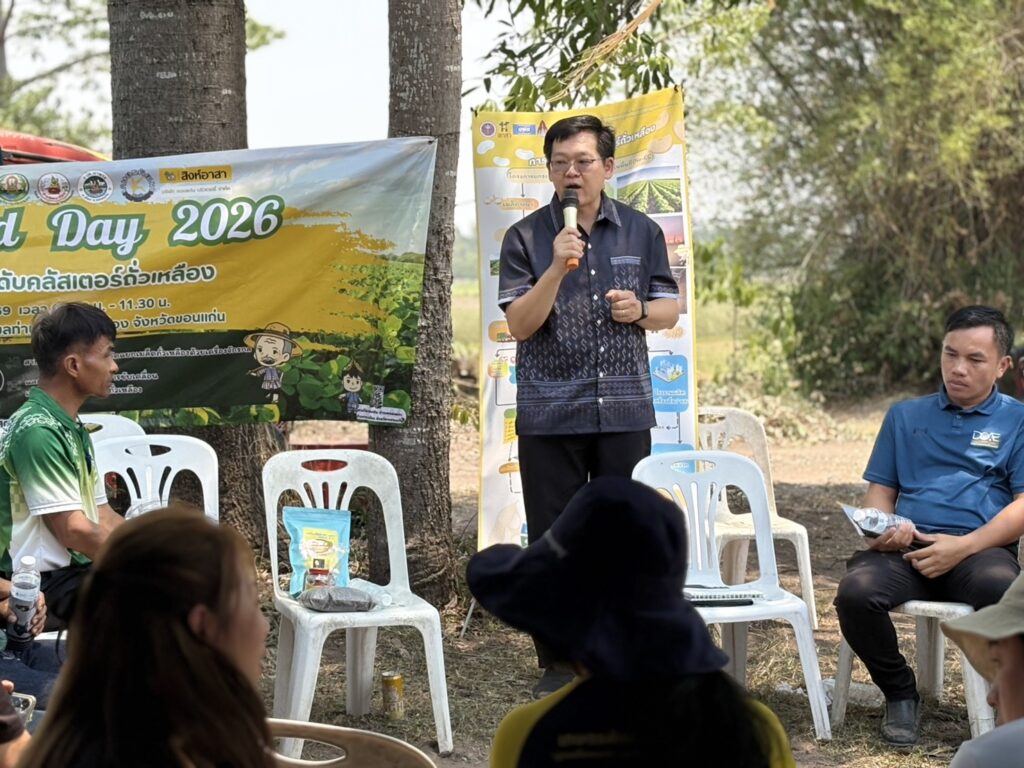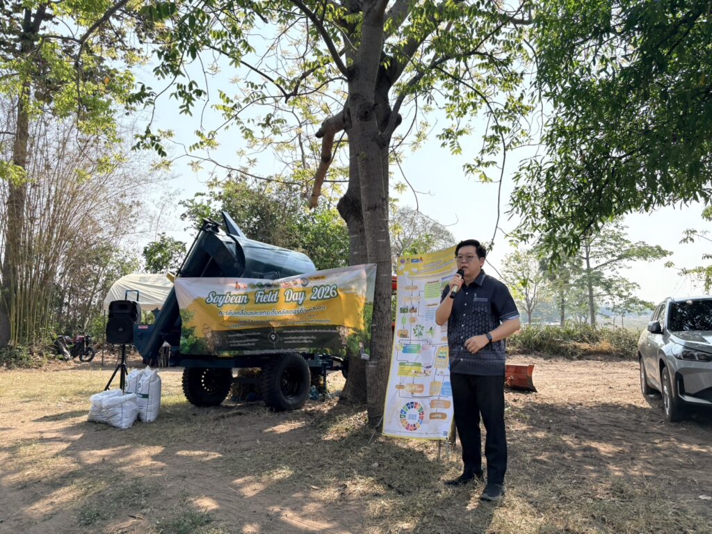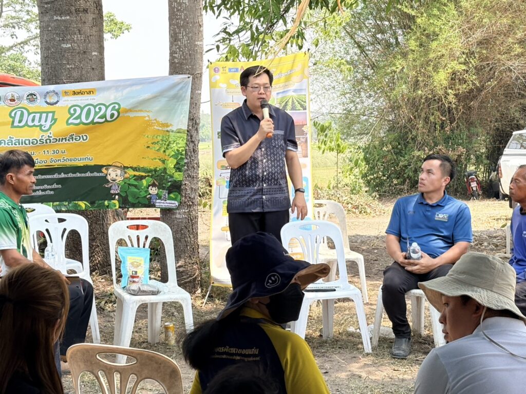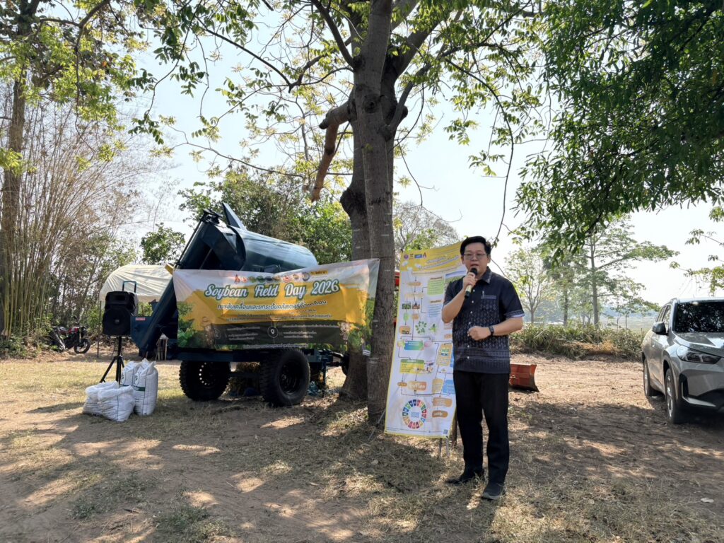 วันที่ 8 เมษายน 2569 นายสิทธิ์พงศ์ ศรีสว่างวงศ์ ผู้อำนวยการศูนย์วิจัยและพัฒนาเมล็ดพันธุ์พืชขอนแก่น เข้าร่วมงานเก็บเกี่ยวถั่วเหลือง Soybean Field day 2026 เพื่อขับเคลื่อนการยกระดับคลัสเตอร์ถั่วเหลืองกลุ่มร้อยแก่นสารสินธุ์ ณ ไร่พ่อสมัย บ้านหนองแวง ตำบลท่าพระ อำเภอเมืองขอนแก่น จังหวัดขอนแก่น