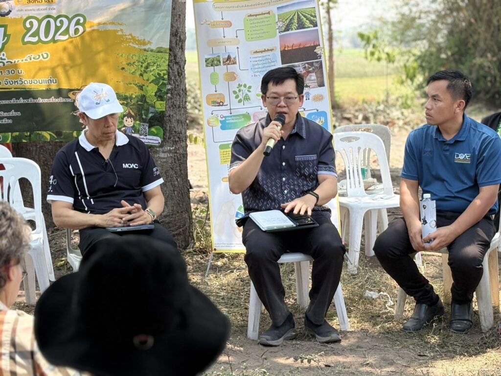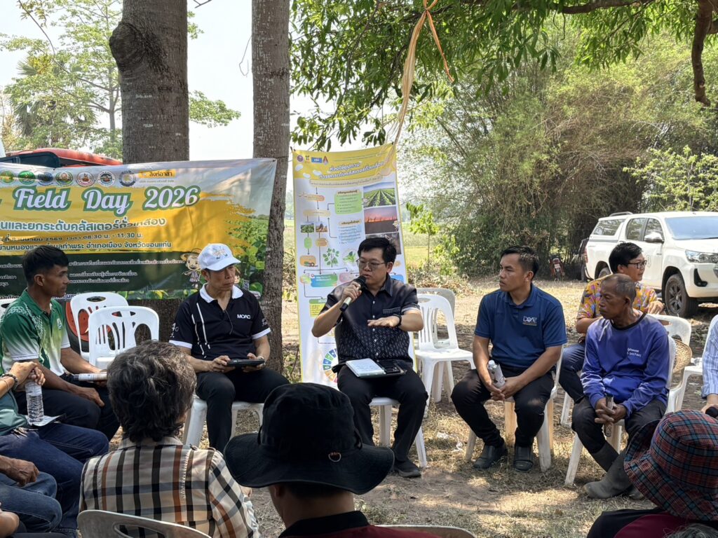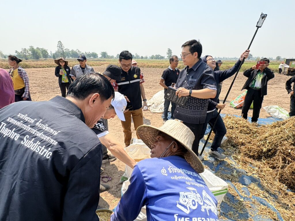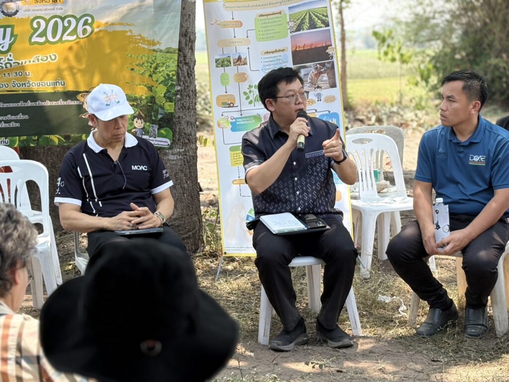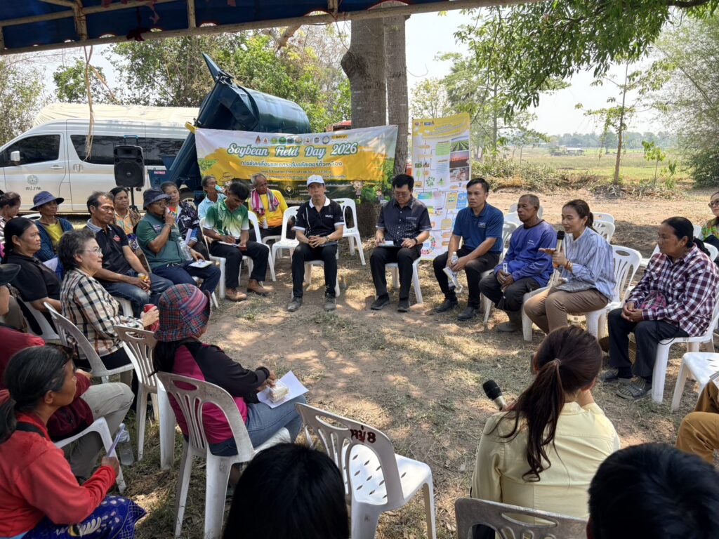 วันที่ 8 เมษายน 2569 นายสิทธิ์พงศ์ ศรีสว่างวงศ์ ผู้อำนวยการศูนย์วิจัยและพัฒนาเมล็ดพันธุ์พืชขอนแก่น เข้าร่วมงานเก็บเกี่ยวถั่วเหลือง Soybean Field day 2026 เพื่อขับเคลื่อนการยกระดับคลัสเตอร์ถั่วเหลืองกลุ่มร้อยแก่นสารสินธุ์ ณ ไร่พ่อสมัย บ้านหนองแวง ตำบลท่าพระ อำเภอเมืองขอนแก่น จังหวัดขอนแก่น