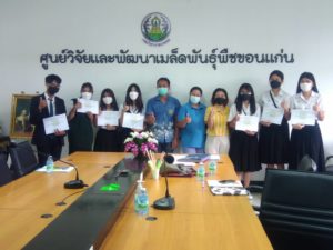 นักศึกษารวม 7 คน ประกอบด้วย นักศึกษาจากสถาบันการศึกษา ภาควิชากีฎวิทยาและโรคพืช คณะเกษตรศาสตร์ มหาวิทยาลัยเชียงใหม่ จังหวัดเชียงใหม่ จำนวน 2 คน นักศึกษาภาควิชาโรคพืช คณะเกษตร กำแพงแสน มหาวิทยาลัยเกษตรศาสตร์ จังหวัดนครปฐม จำนวน 4 คน นักศึกษาคณะผลิตกรรมการเกษตร มหาวิทยาลัยแม่โจ้ จังหวัดเชียงใหม่ เพื่อขอจบหลักสูตรฯ โดยเสนอผลที่ได้รับการฝึกวิชาชีพการณ์ วิชาชีพ สภาพปัญหาอุปสรรคข้อเสนอแนะในการดำเนินงาน ฯ พร้อมรับมอบเกียรติบัตรจบหลักสูตรการประสบการณ์วิชาชีพ ณ ห้องประชุมศูนย์วิจัยและพัฒนาเมล็ดพันธุ์พืชขอนแก่น