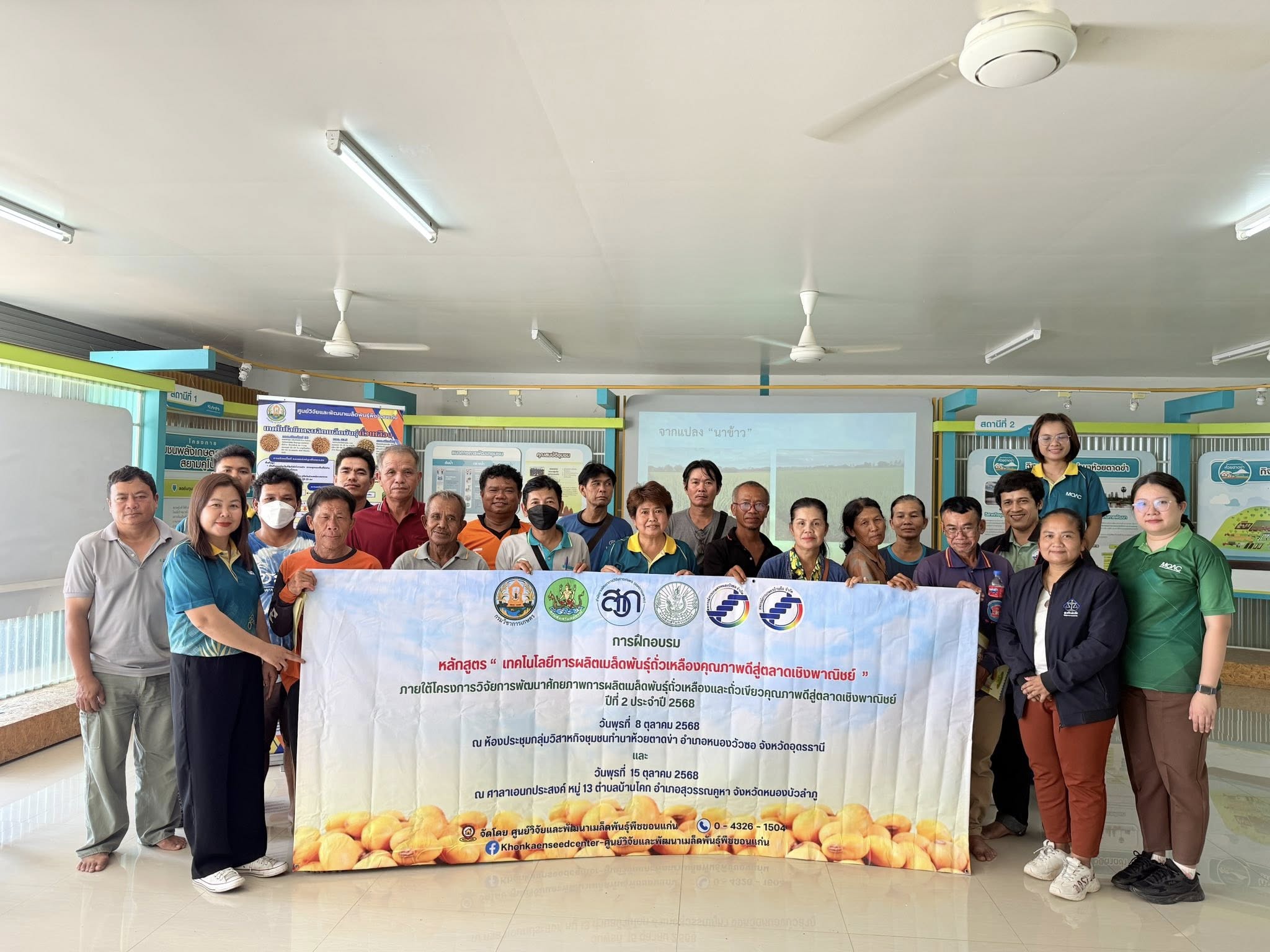 โดยมีวัตถุประสงค์เพื่อเสริมสร้างความรู้และทักษะด้านวิชาการ แก่เกษตรกรผู้ผลิตเมล็ดพันธุ์ถั่วเหลืองชั้นพันธุ์จำหน่าย ช่วงเดือนตุลาคม 2568 ถึงเดือนพฤศจิกายน 2568 ในพื้นที่กลุ่มเครือข่ายเกษตรกรผู้ผลิตเมล็ดพันธุ์ถั่วเหลือง จังหวัดหนองบัวลำภู และอุดรธานี เพื่อให้สามารถผลิตเมล็ดพันธุ์ที่มีคุณภาพตามมาตรฐานและตอบสนองความต้องการของตลาดอ