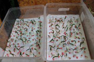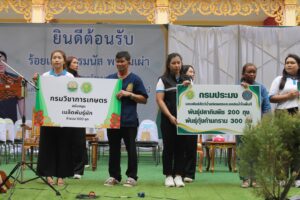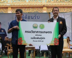 เมื่อวันที่ 19 พฤศจิกายน 2568 นางวิลาวัณย์ ใคร่ครวญ รองอธิบดีกรมวิชาการเกษตร พร้อม นางนิยม ไข่มุกข์ ผู้เชี่ยวชาญด้านการจัดการผลิตพืชที่เหมาะสมกับสภาพพื้นที่ภาคตะวันออกเฉียงเหนือตอนบน นายสิทธิพงศ์ ศรีสว่างวงศ์ ผอ.ศวม.ขอนแก่น นางสาวกาญจนา มหาเวศย์สกุล พร้อมทีมงาน ศวม.ขอนแก่น ติดตามร้อยเอกธรรมนัส พรหมเผ่า รองนายกรัฐมนตรี และรัฐมนตรีว่าการกระทรวงเกษตรและสหกรณ์ ตรวจราชการ ในพื้นที่จังหวัดขอนแก่น ณ วัดนามูลพุทธาวาส ตำบลดูนสาด อำเภอกระนวน จังหวัดขอนแก่น โดย ศวม.ขอนแก่น จัดนิทรรศการผลิตเมล็ดพันธุ์พร้อมแจกจ่ายเมล็ดพันธุ์ผักในนามกรมวิชาการเกษตร จำนวน 500 ชุด พร้อมทั้งมีการมอบใบรับรอง Q ทุเรียน ให้แก่เกษตรกรจำนวน 7 ราย