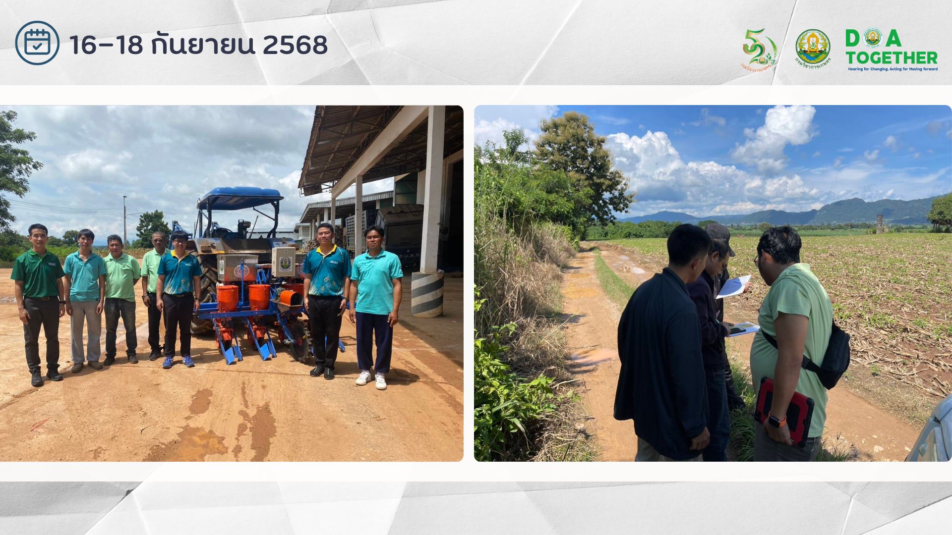 นำเครื่องหยอดเมล็ดพืชและปุ๋ยแบบอัตโนมัติ ของ กรมวิชาการเกษตรเพื่อทดลองเครื่องและเตรียมความพร้อมก่อนปลูกถั่วเขียวในแปลงถ่ายทอดเทคโนโลยีการผลิตถั่วเขียว พันธุ์ กวก.ชัยนาท 3 ณ นิคมสหกรณ์แม่สอด ตำบลแม่กาษา อำเภอแม่สอด