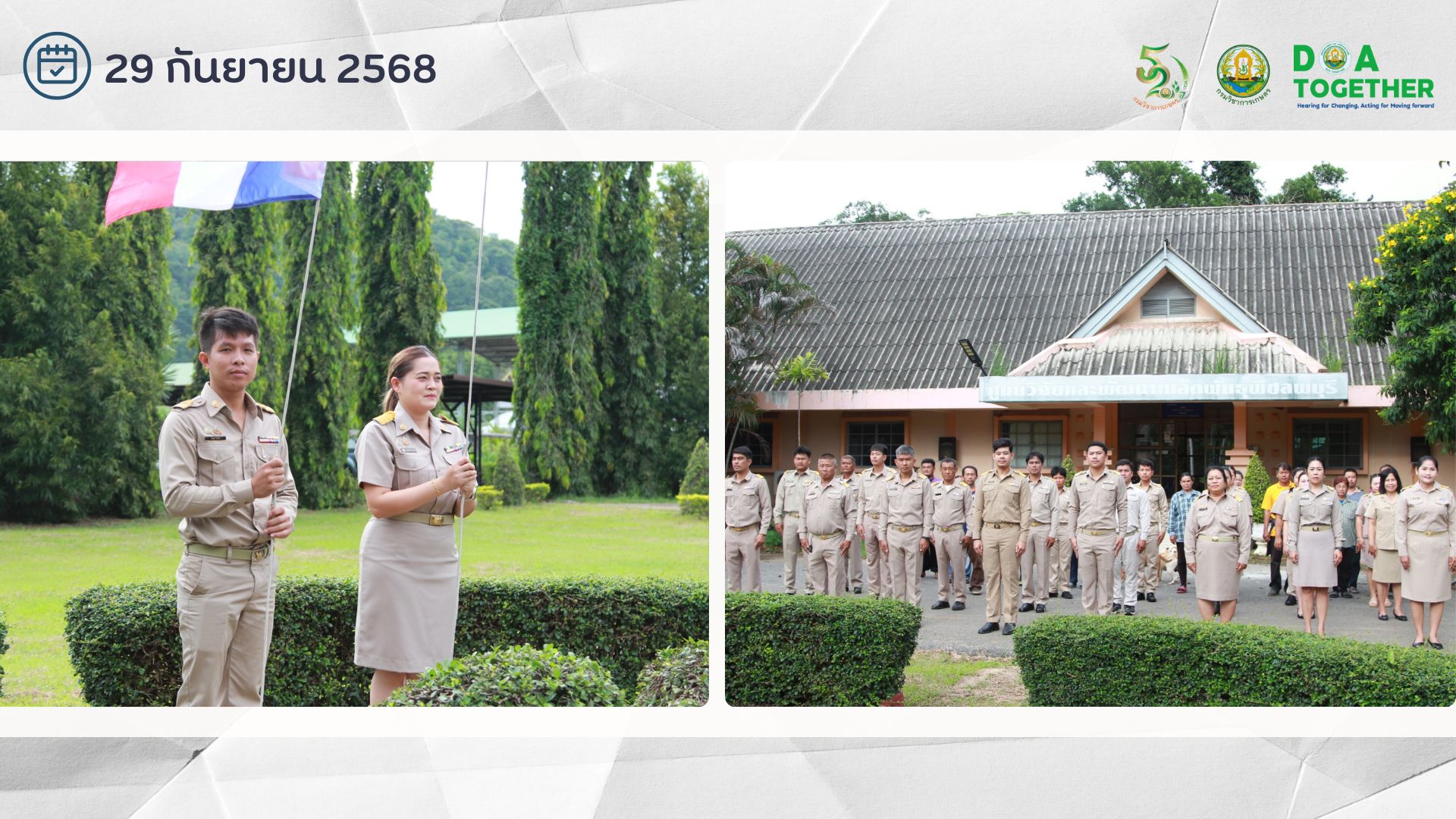 ร่วมจัดกิจกรรมเคารพธงชาติและพร้อมร้องเพลงชาติไทย เนื่องในวันพระราชทานธงชาติไทย (Thai National Flag Day) ประจำปี 2568 เวลา 08.00 น. ณ บริเวณเสาธง ศูนย์วิจัยและพัฒนาเมล็ดพันธุ์พืชลพบุรี