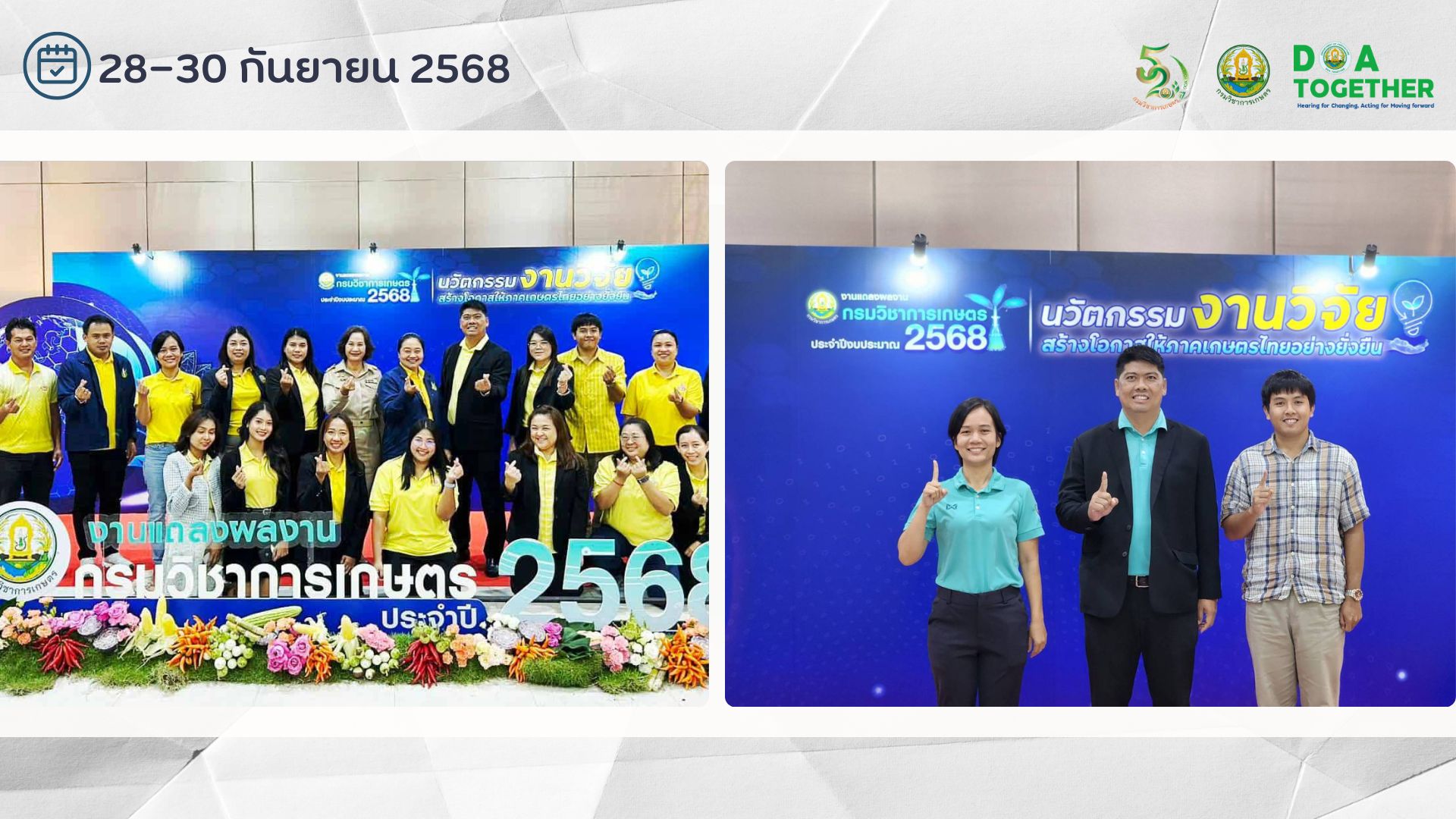ร่วมงานแถลงผลงานกรมวิชาการเกษตร ประจำปีงบประมาณ 2568 นวัตกรรมงานวิจัย สร้างโอกาสให้ภาคเกษตรไทยอย่างยั่งยืน Innovation Research for Sustainable Thai Agriculture ณ สวนนงนุช พัทยา จังหวัดชลบุรี