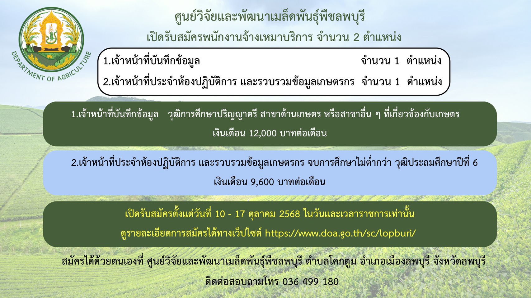 📝สมัครได้ด้วยตนเอง ที่ศูนย์วิจัยและพัฒนาเมล็ดพันธุ์พืชลพบุรี ต.โคกตูม อ.เมือง จ.ลพบุรี