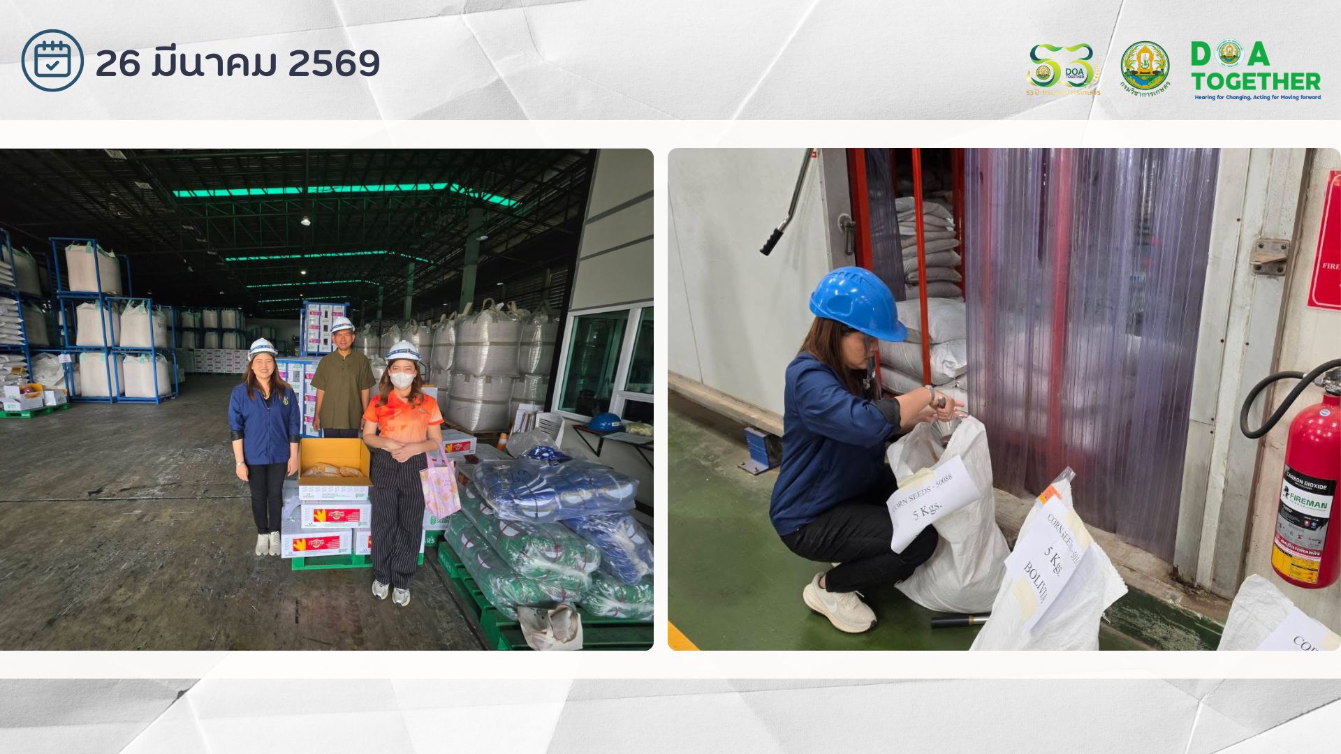 📍🗓️สุ่มตัวอย่างเมล็ดพันธุ์ข้าวโพด และข้าวฟ่าง เพื่อส่งต่อตรวจสอบเชื้อโรคและศัตรูพืชกับเมล็ดพันธุ์สำหรับการส่งออก ในกิจกรรมการตรวจสอบและรับรองคุณภาพเมล็ดพันธุ์ การตรวจสอบสุขอนามัยพืช (เมล็ดพันธุ์ ท่อนพันธุ์ และแปลงผลิตเมล็ดพันธุ์) จำนวน 10 ตัวอย่าง ณ บริษัท แปซิฟิค เมล็ดพันธุ์ จำกัด อำเภอพระพุทธบาท จังหวัดสระบุรี