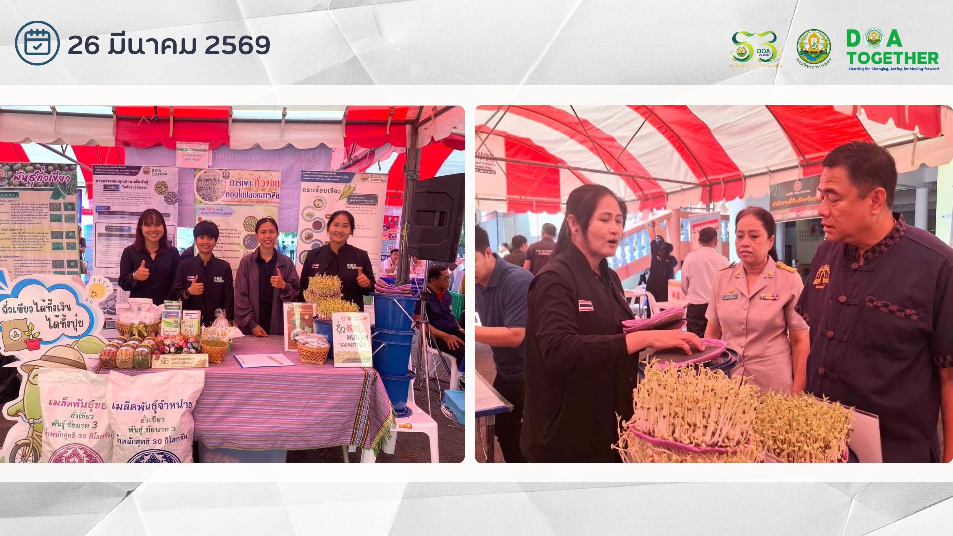 📍🗓️ร่วมจัดนิทรรศการให้บริการความรู้ด้านพืช เทคโนโลยีการผลิตถั่วเขียว การเพาะถั่วงอกคอนโดปลอดสารพิษ และแจกปัจจัยการผลิตทางการเกษตร ให้แก่ประชาชนผู้ร่วมลงทะเบียน จำนวน 96 ราย ในโครงการหน่วยบำบัดทุกข์ บำรุงสุข สร้างรอยยิ้มให้ประชาชน จังหวัดลพบุรี ประจำปีงบประมาณ 2569 ณ วัดไลย์ ตำบลเขาสมอคอน อำเภอบ้านหมี่ จังหวัดลพบุรี