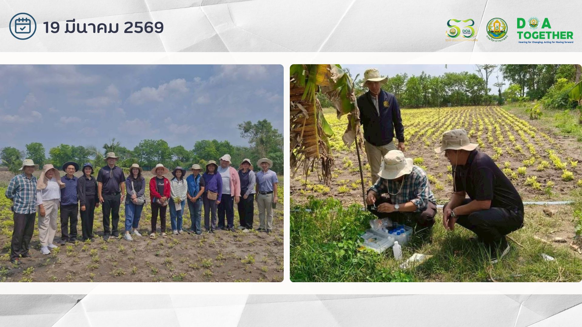ลงพื้นสำรวจแปลงผลิตถั่วลิสง พันธุ์กาฬสินธุ์ 2 ของเกษตรกรที่ประสบปัญหาในการปลูกถั่วลิสง ร่วมกับเจ้าหน้าที่จากกรมส่งเสริมการเกษตร และเจ้าหน้าที่โครงการการยกระดับประสิทธิภาพการผลิตถั่วลิสงฝักสดในพื้นที่ภาคกลางเพื่อเพิ่มมูลค่าและสร้างโอกาสเชิงพาณิชย์ (องค์การมหาชน) (สวก.) ณ ตำบลบ้านกลับ อำเภอหนองโดน จังหวัดสระบุรี