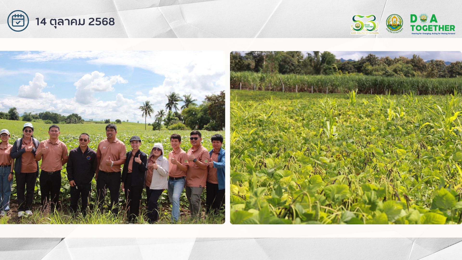 วันที่ 14 ตุลาคม 2568 นายชูชาติ บุญศักดิ์ ผู้อำนวยการศูนย์วิจัยและพัฒนาเมล็ดพันธุ์พืชลพบุรี และเจ้าหน้าที่ศูนย์ฯ ร่วมกับ หัวหน้าโครงการฯ นางสาวเชาวนาถ พฤทธิเทพ ผู้เชี่ยวชาญด้านพืชไร่ตระกูลถั่ว จากสถาบันวิจัยพืชไร่และพืชทดแทนพลังงาน และ นางสาวปวีณา ไชยวรรณ์ นักวิชาการเกษตรชำนาญการพิเศษ พร้อมด้วยเจ้าหน้าที่ศูนย์วิจัยพืชไร่ชัยนาท ลงพื้นที่แปลงเกษตรกรในโครงการฯ เพื่อติดตามการเจริญเติบโตและตรวจสอบโรคแมลงศัตรูพืชของถั่วเขียวในแปลงผลิตเมล็ดพันธุ์ถั่วเขียว พันธุ์ กวก.ชัยนาท 3 ชั้นพันธุ์จำหน่าย ภายใต้โครงการ : ผลิตเมล็ดพันธุ์พืชตระกูลถั่วเพื่อเพิ่มศักยภาพการผลิตและยกระดับเศรษฐกิจชุมชนอย่างยั่งยืน ปี 2568 กิจกรรมที่ 2 : การผลิตเมล็ดพันธุ์ถั่วเขียวเพื่อเพิ่มศักยภาพการผลิตและยกระดับเศรษฐกิจชุมชน ณ ไร่เกษตรกร ตำบลแม่กาษา อำเภอแม่สอด จังหวัดตาก