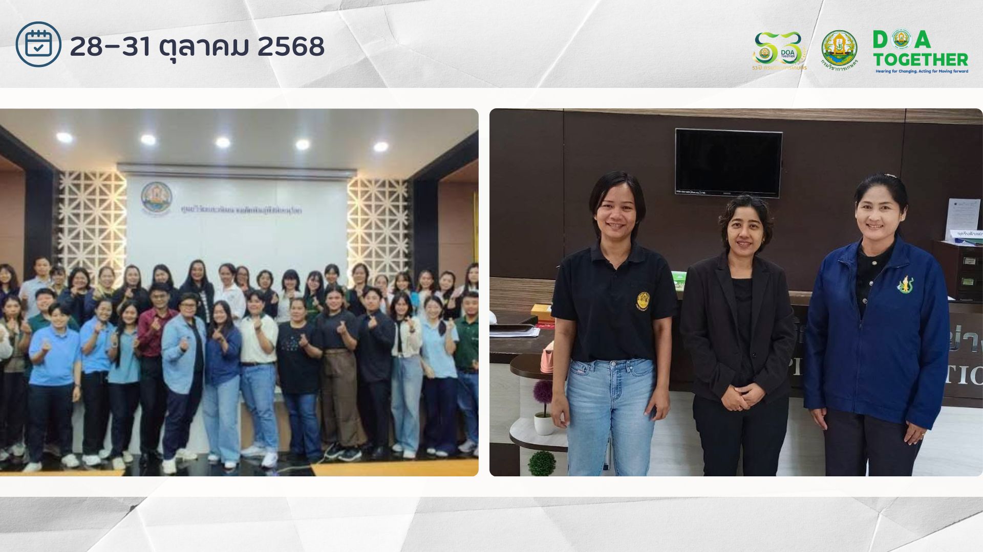 วันที่ 28 – 31 ตุลาคม 2568 นายชูชาติ บุญศักดิ์ ผู้อำนวยการศูนย์วิจัยและพัฒนาเมล็ดพันธุ์พืชลพบุรี มอบหมายให้นางสาวเฌอรัชด์พัชร เขียววิชัย นักวิชาการเกษตรปฏิบัติการ และนางสาวสมศรี ยอดทอง นักวิชาการเกษตร เข้าร่วมการฝึกอบรมการตรวจสอบคุณภาพเมล็ดพันธุ์พืชควบคุม เพื่อให้มีความรู้ ความเข้าใจเกี่ยวกับคุณภาพของเมล็ดพันธุ์ ตามหลักการที่ถูกต้อง ซึ่งส่งผลดีต่อคุณภาพเมล็ดพันธุ์เมื่อถึงมือเกษตรกรผู้ใช้เมล็ดพันธุ์ ซึ่งจัดโดยสมาคมการค้าเมล็ดพันธุ์ไทย โดยความร่วมมือกับกรมวิชาการเกษตร โดยมี ดร.บุญญานาถ นาถวงษ์ นายกสมาคมการค้าเมล็ดพันธุ์ไทย และนางสาวภภัสสร วัฒนกุลภาคิน ผู้อำนวยการศูนย์วิจัยและพัฒนาเมล็ดพันธุ์พืชพิษณุโลก เป็นผู้กล่าวเปิดการฝึกอบรม ณ ศูนย์วิจัยและพัฒนาเมล็ดพันธุ์พืชพิษณุโลก ตำบลวังทอง อำเภอวังทอง จังหวัดพิษณุโลก