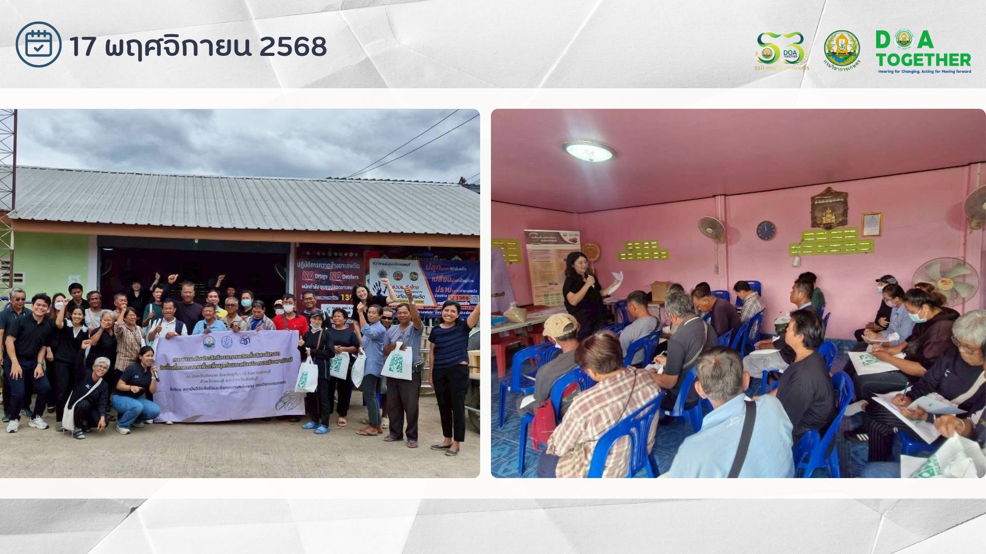 วันที่ 17 พฤศจิกายน 2568 นายชูชาติ บุญศักดิ์ ผู้อำนวยการศูนย์วิจัยและพัฒนาเมล็ดพันธุ์พืชลพบุรี มอบหมายให้ นายอินทร์ อินโต เจ้าพนักงานการเกษตรปฏิบัติงาน และเจ้าหน้าที่ศูนย์ฯ เข้าร่วมการอบรมเกษตรกร หลักสูตร “การผลิตถั่วลิสงคุณภาพด้วยเทคโนโลยีพร้อมใช้” โครงการการยกระดับประสิทธิภาพการผลิตถั่วลิสงฝักสดในพื้นที่ภาคกลางเพื่อเพิ่มมูลค่าและสร้างโอกาสเชิงพาณิชย์ (App Tech ถั่วลิสง) โดยมีนางกุลศิริ เวียงวิเศษ นักวิชาการเกษตรชำนาญการ (หัวหน้าโครงการ) และคณะเป็นผู้จัดฝึกอบรบหลักสูตรดังกล่าว ณ ศาลาอเนกประสงค์บ้านท่าเดื่อน้อย หมู่ 5 ตำบลนิคมสร้างตนเอง อำเภอเมืองลพบุรี จังหวัดลพบุรี